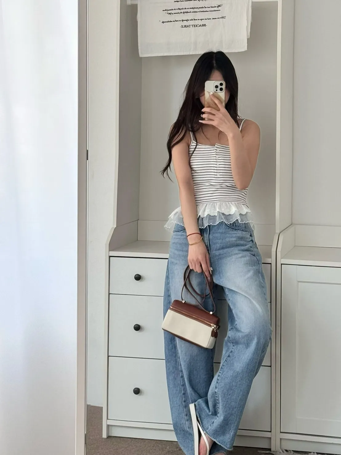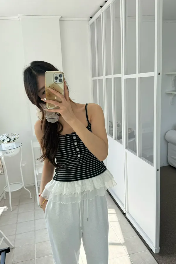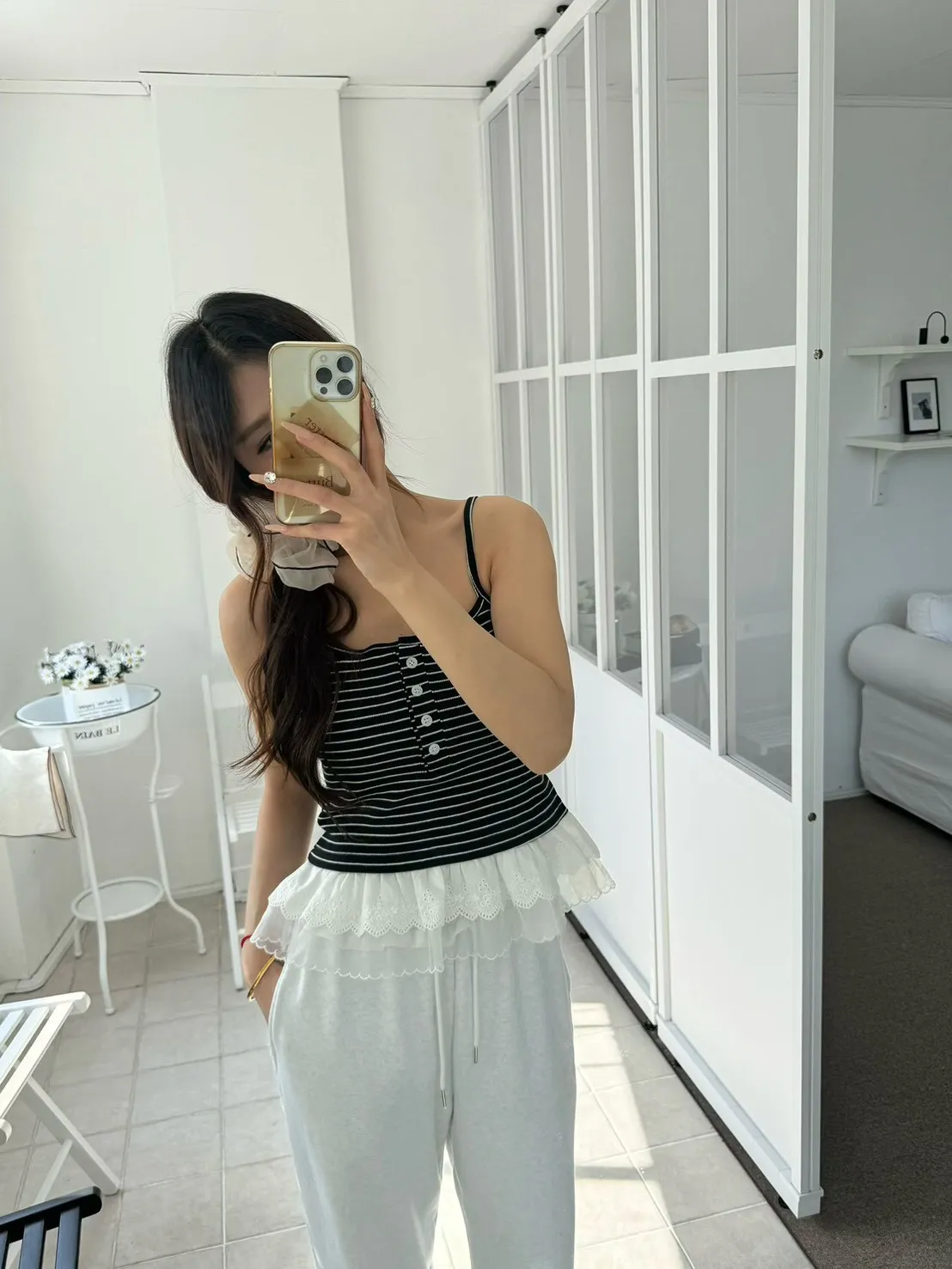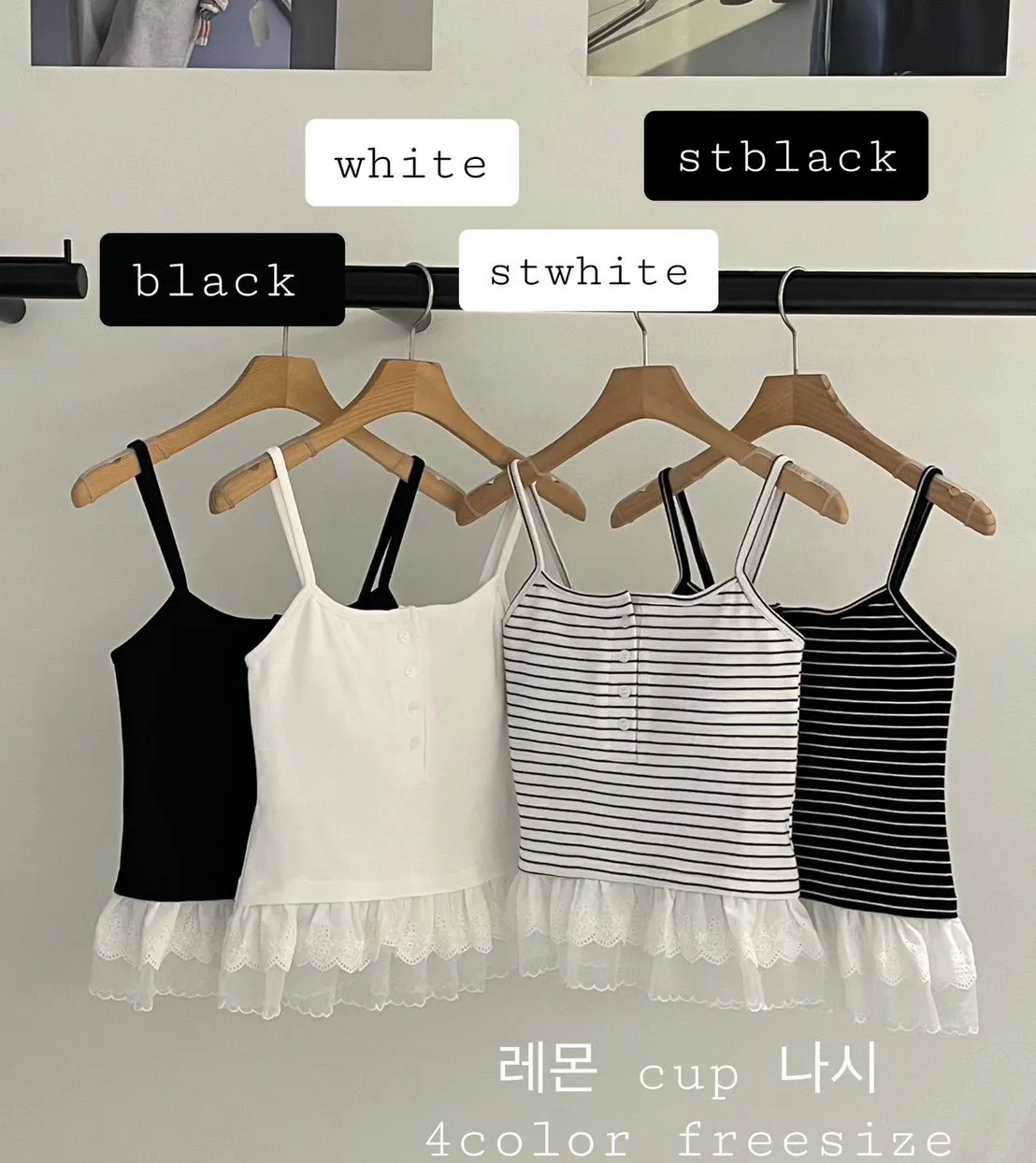 A31 0331蕾絲網紗下擺細肩帶平口小可愛4色