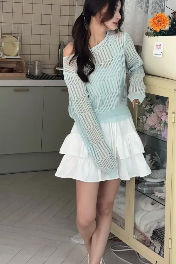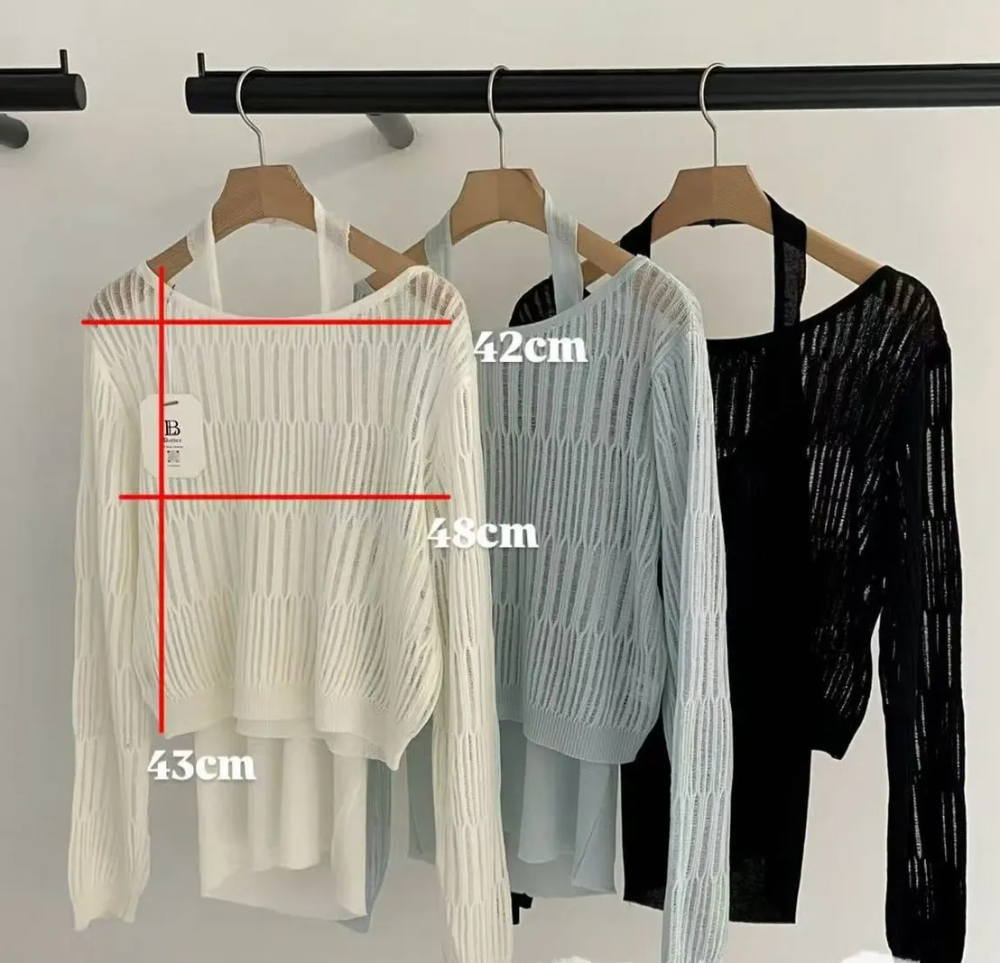 A41 0331洞洞針織罩衫+繞脖針織背心(SET)3色