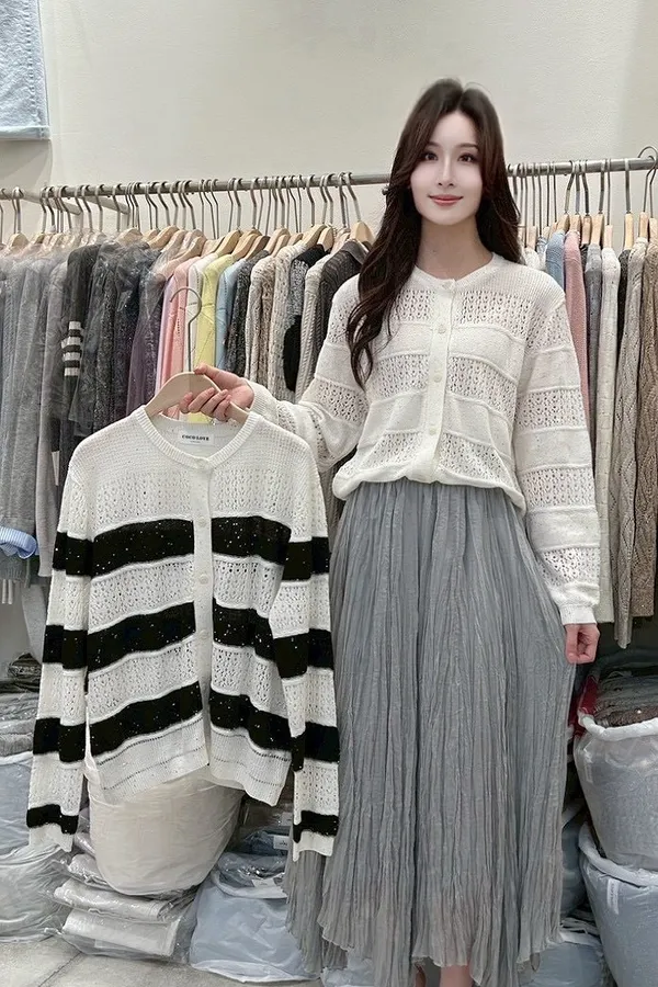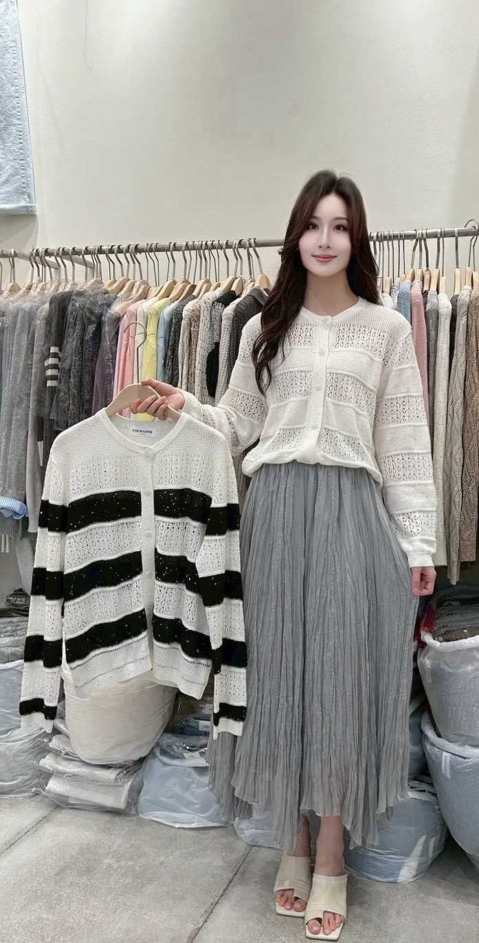A54 0331love針織家簍空寬橫條圓領針織衫2色