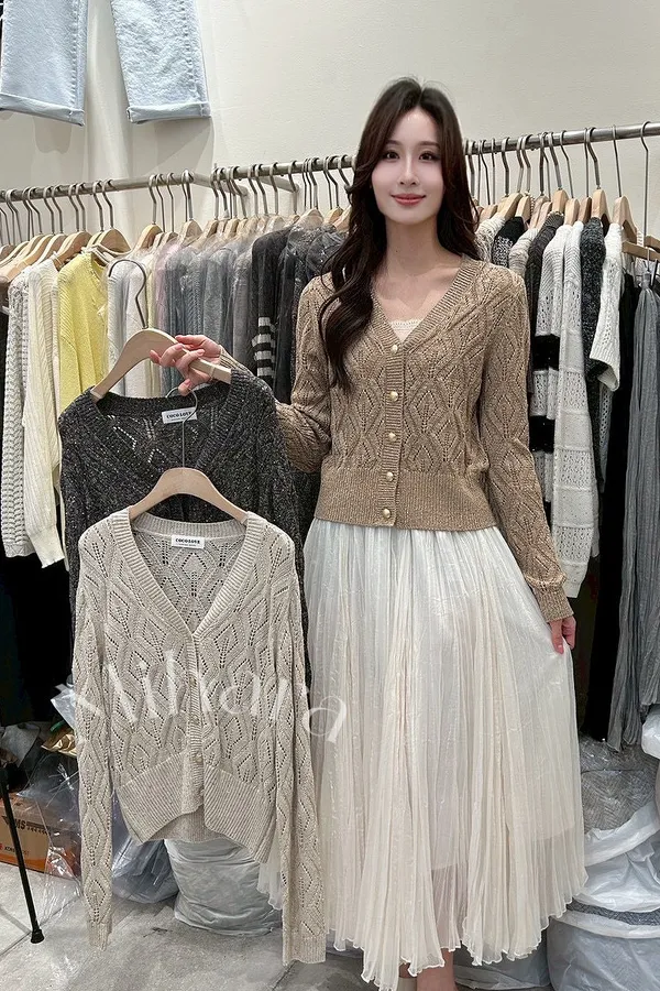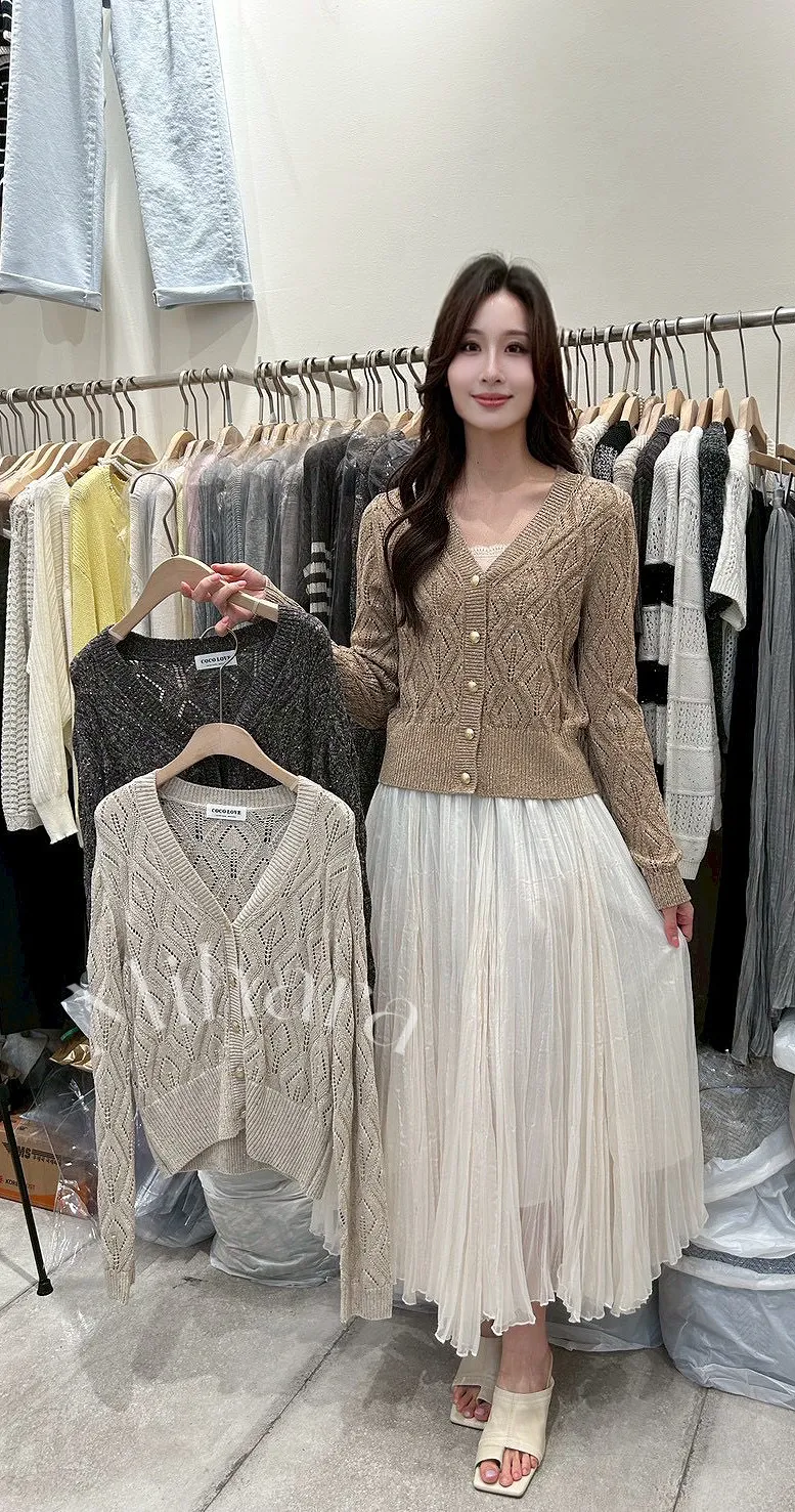 A57 0331love針織家簍空菱格亮片V領針織外套3色