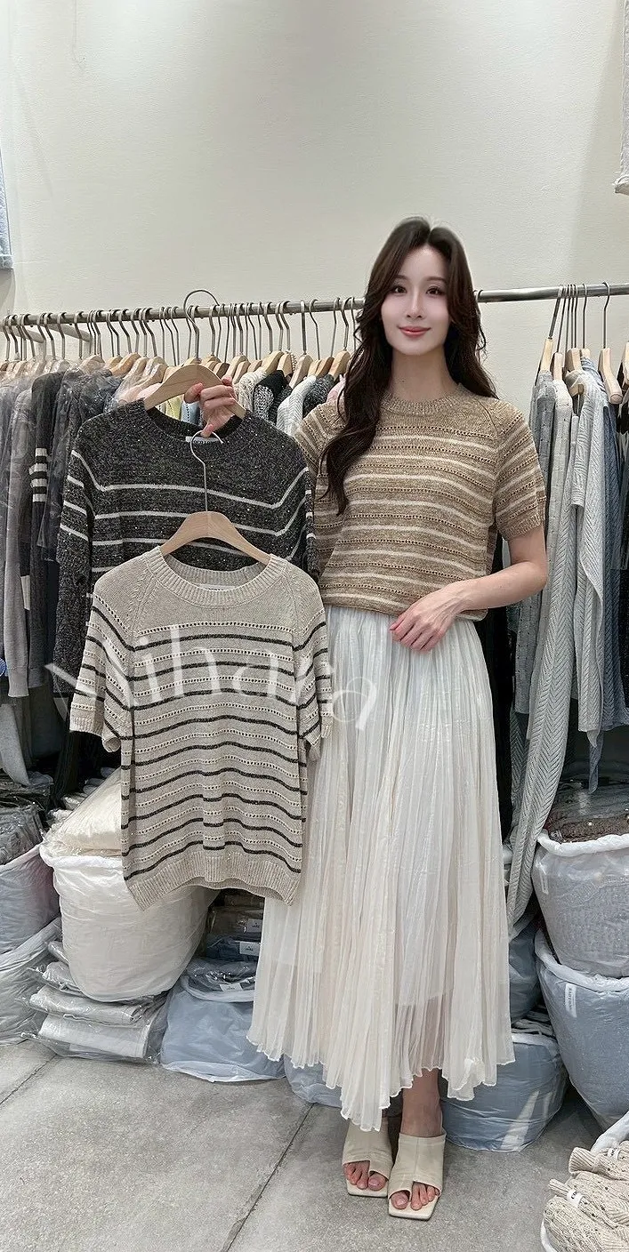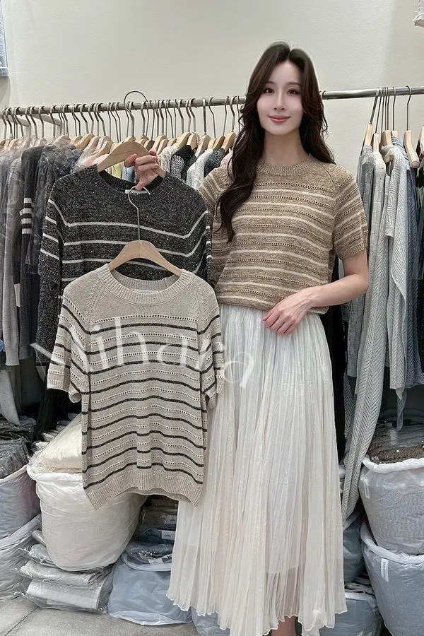 A60 0331love針織家細橫條亮片圓領針織衫3色