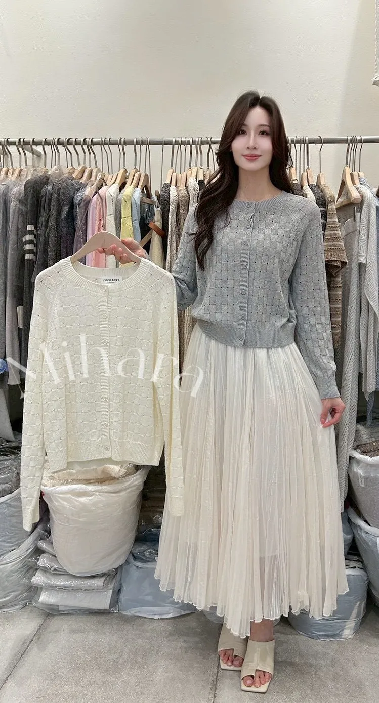 A61 0331love針織家格紋亮片圓領針織衫2色