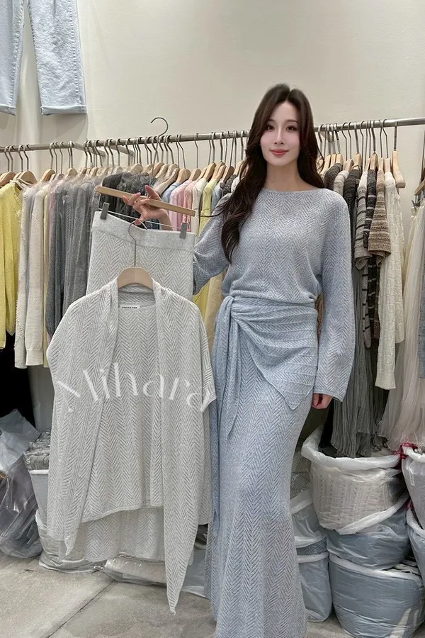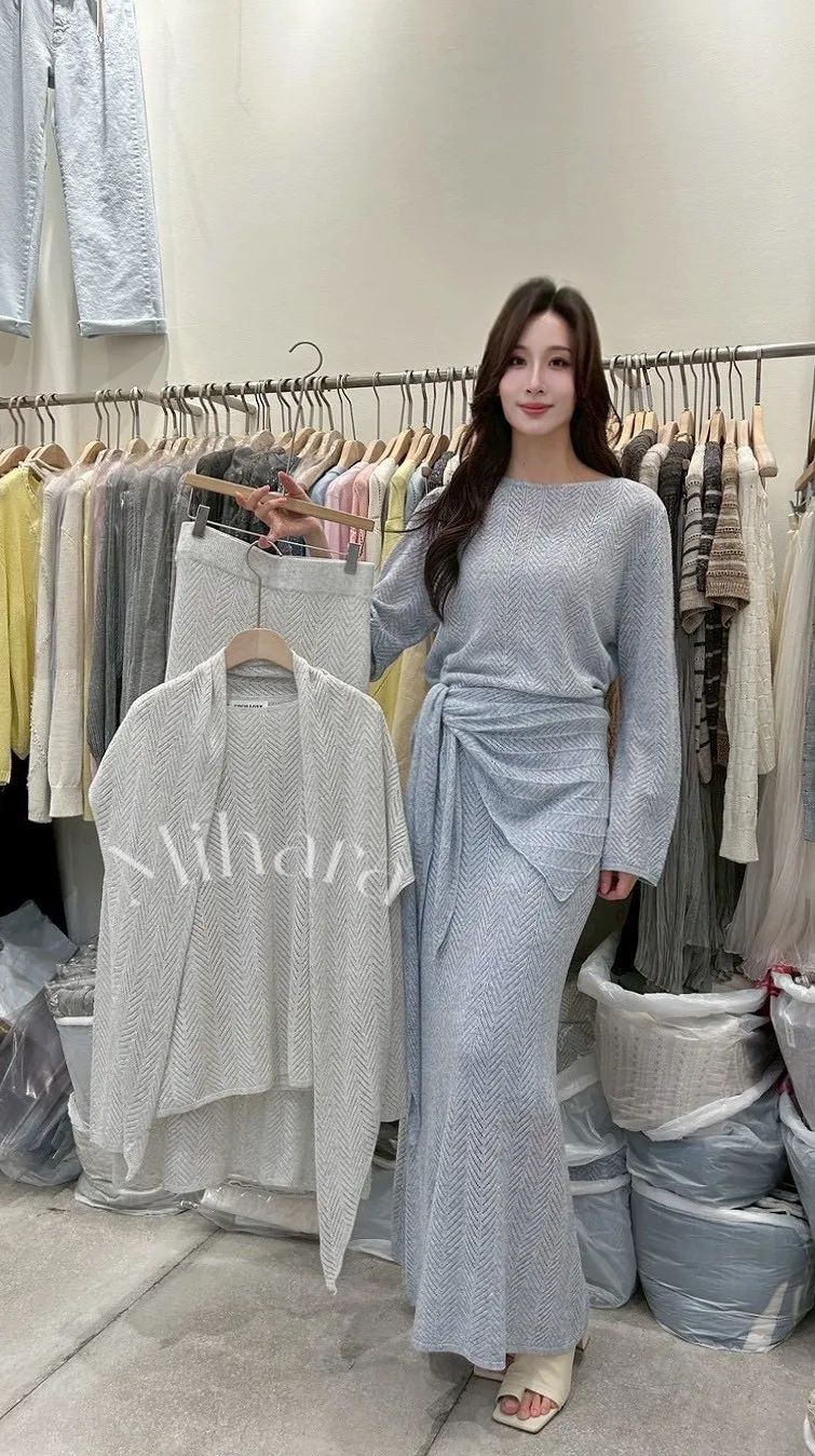 A62 0331love針織家帆船領針織衫+包臀魚尾針織裙+三角批肩(SET)2色