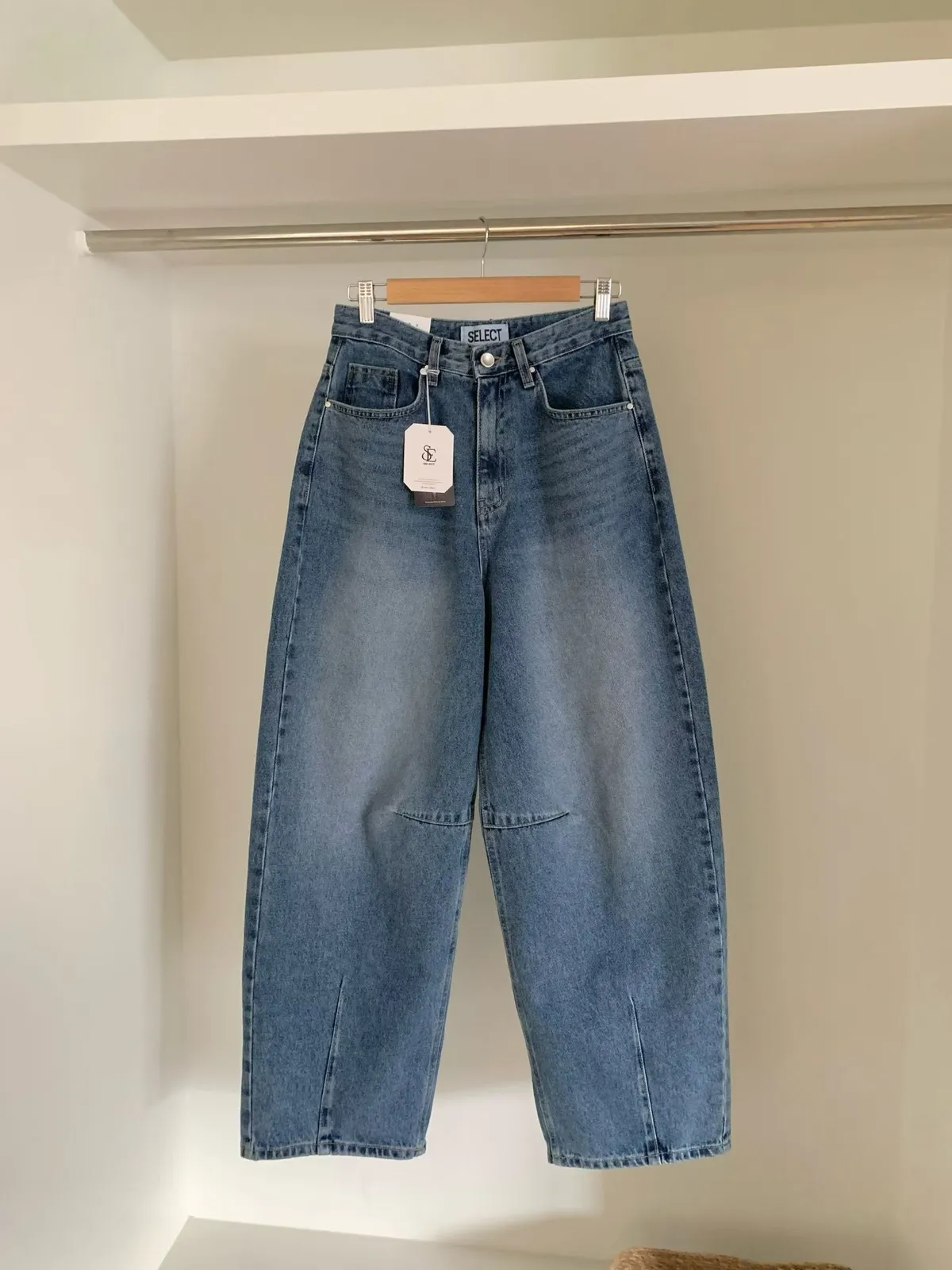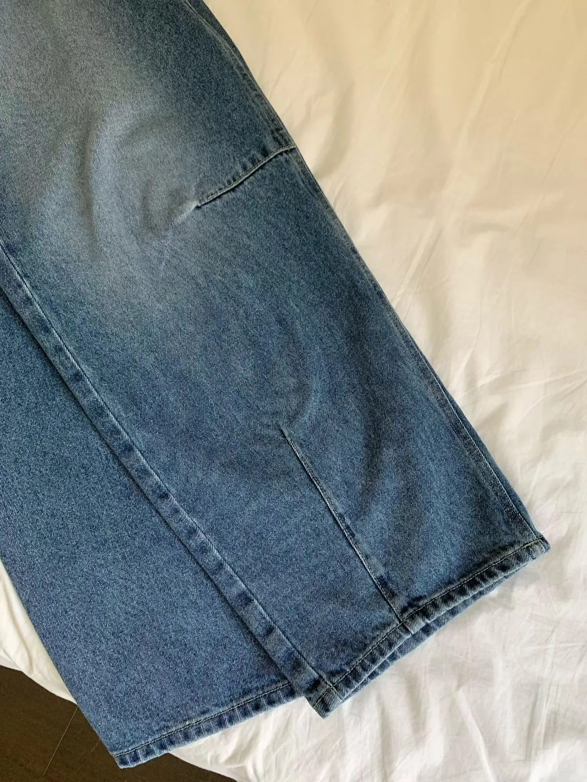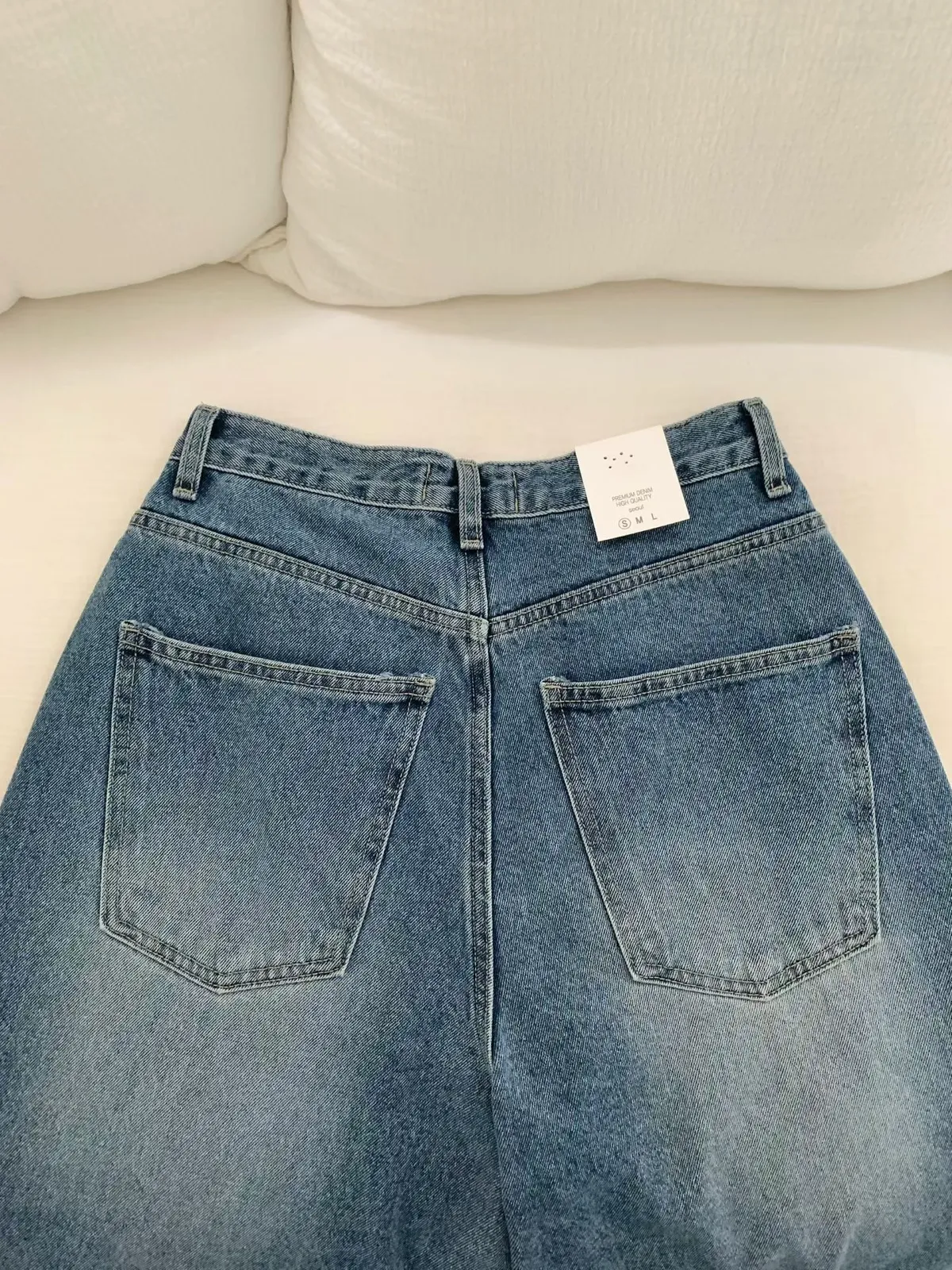 A32 0402中高腰刷色剪裁設計彎刀褲(S/M/L)406