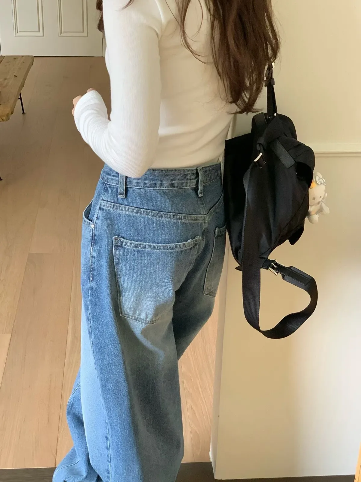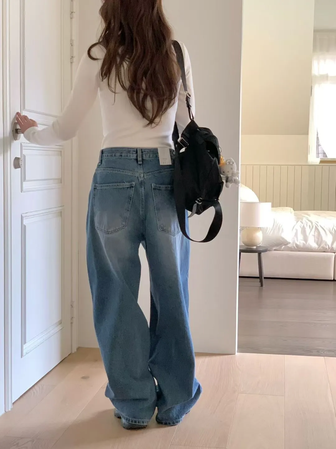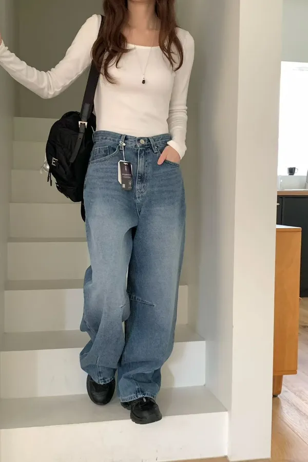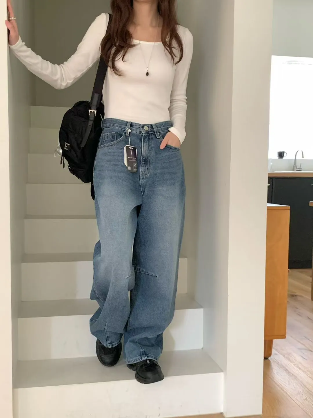 A32 0402中高腰刷色剪裁設計彎刀褲(S/M/L)406