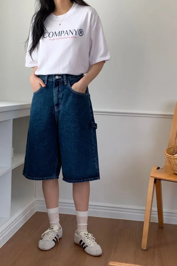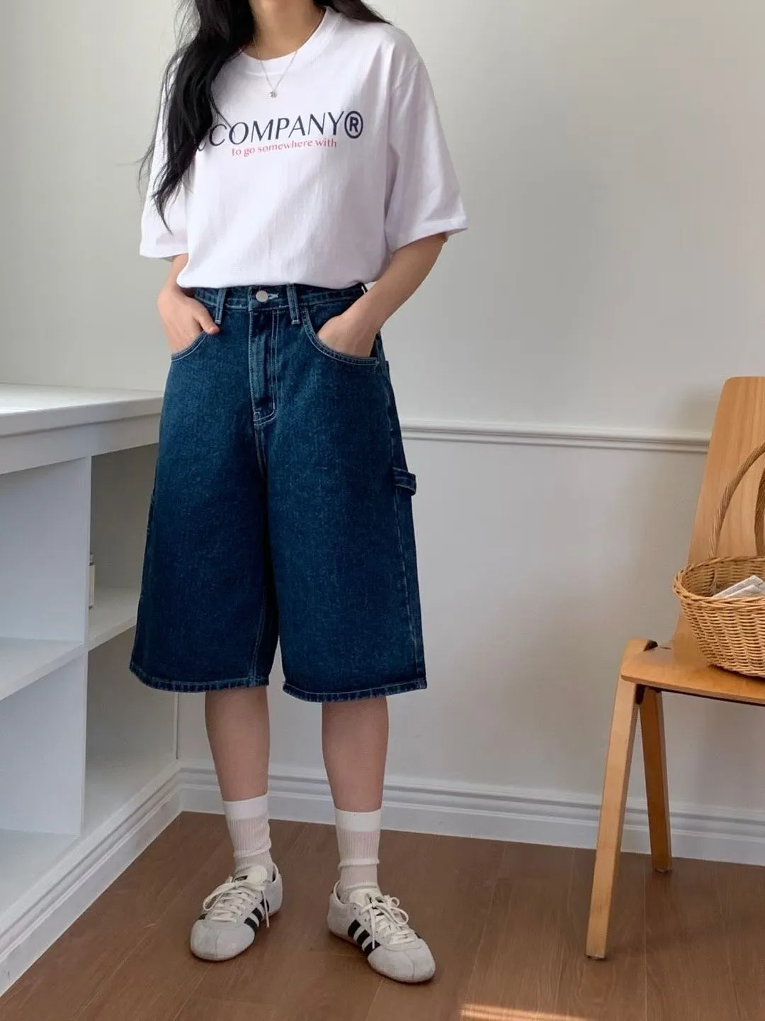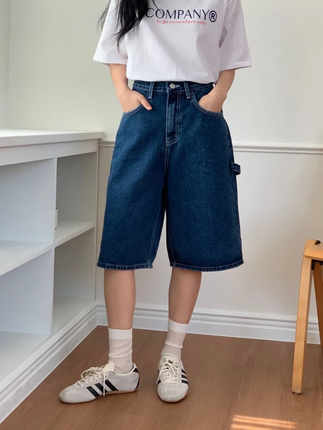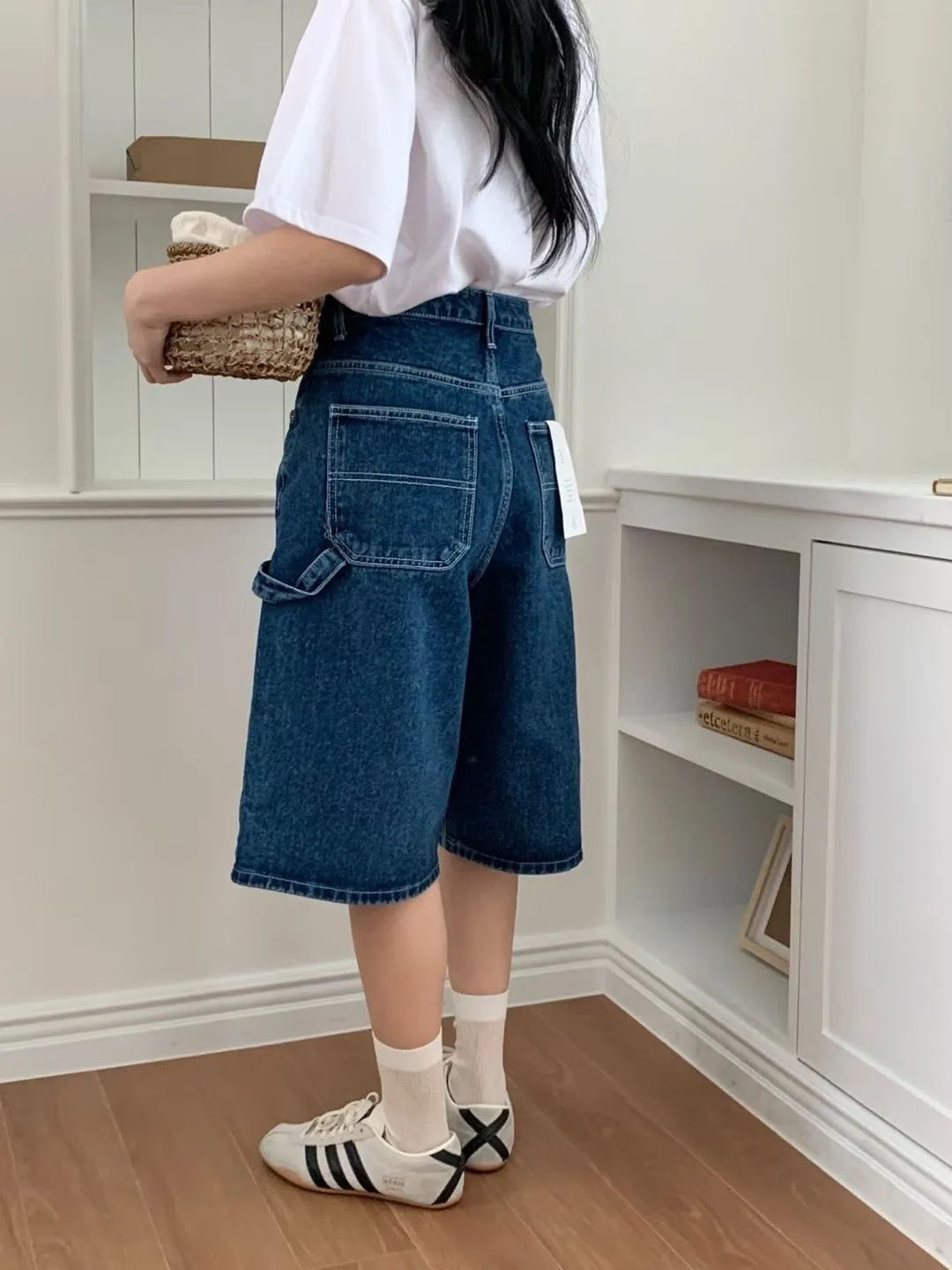 A33 0402撞色縫線工裝風深藍牛仔褲(S/M/L)