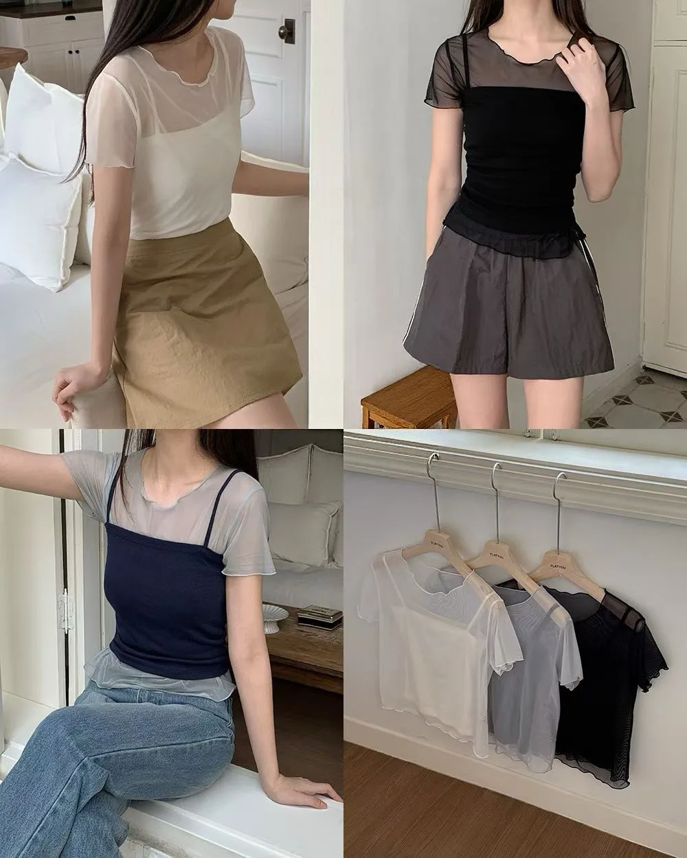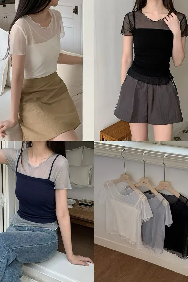 B25 0402兩件式平口背心+透膚上衣(set)