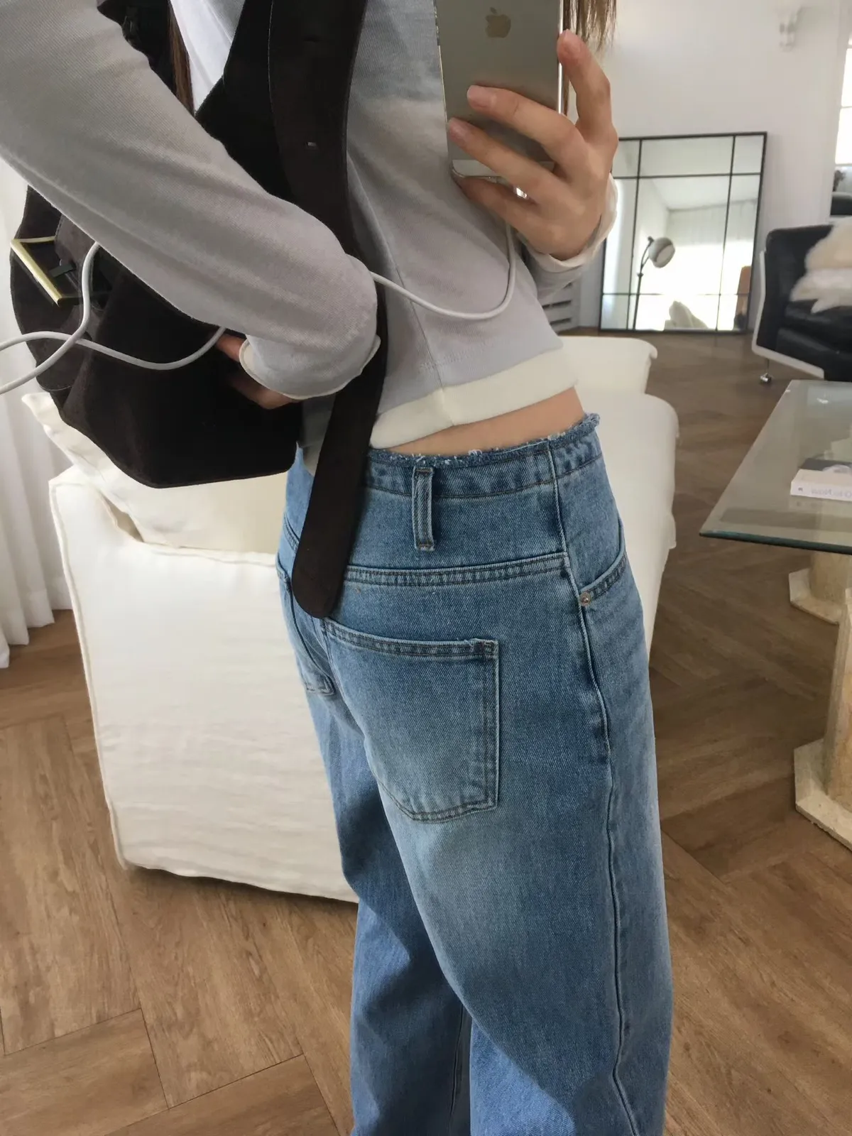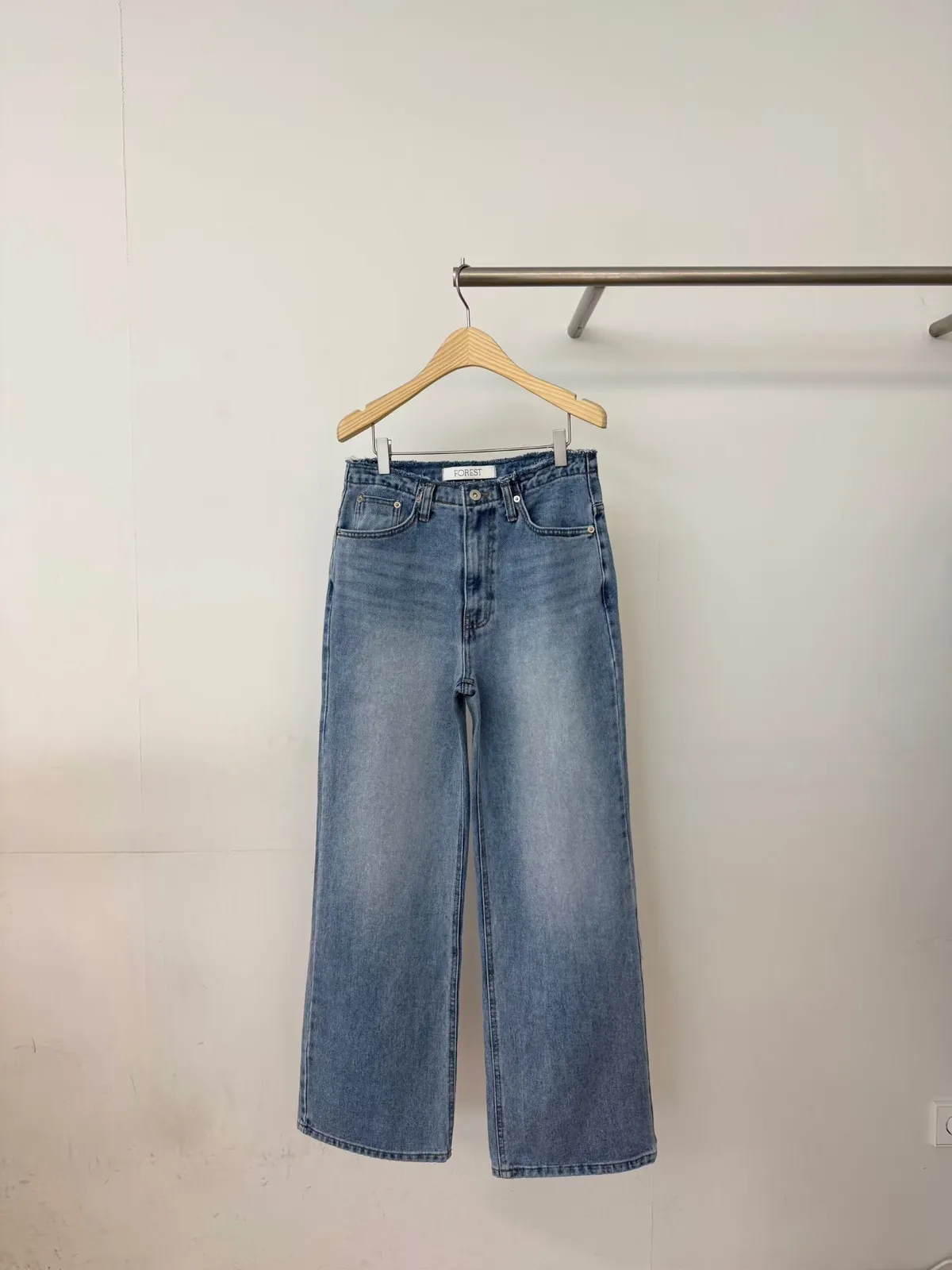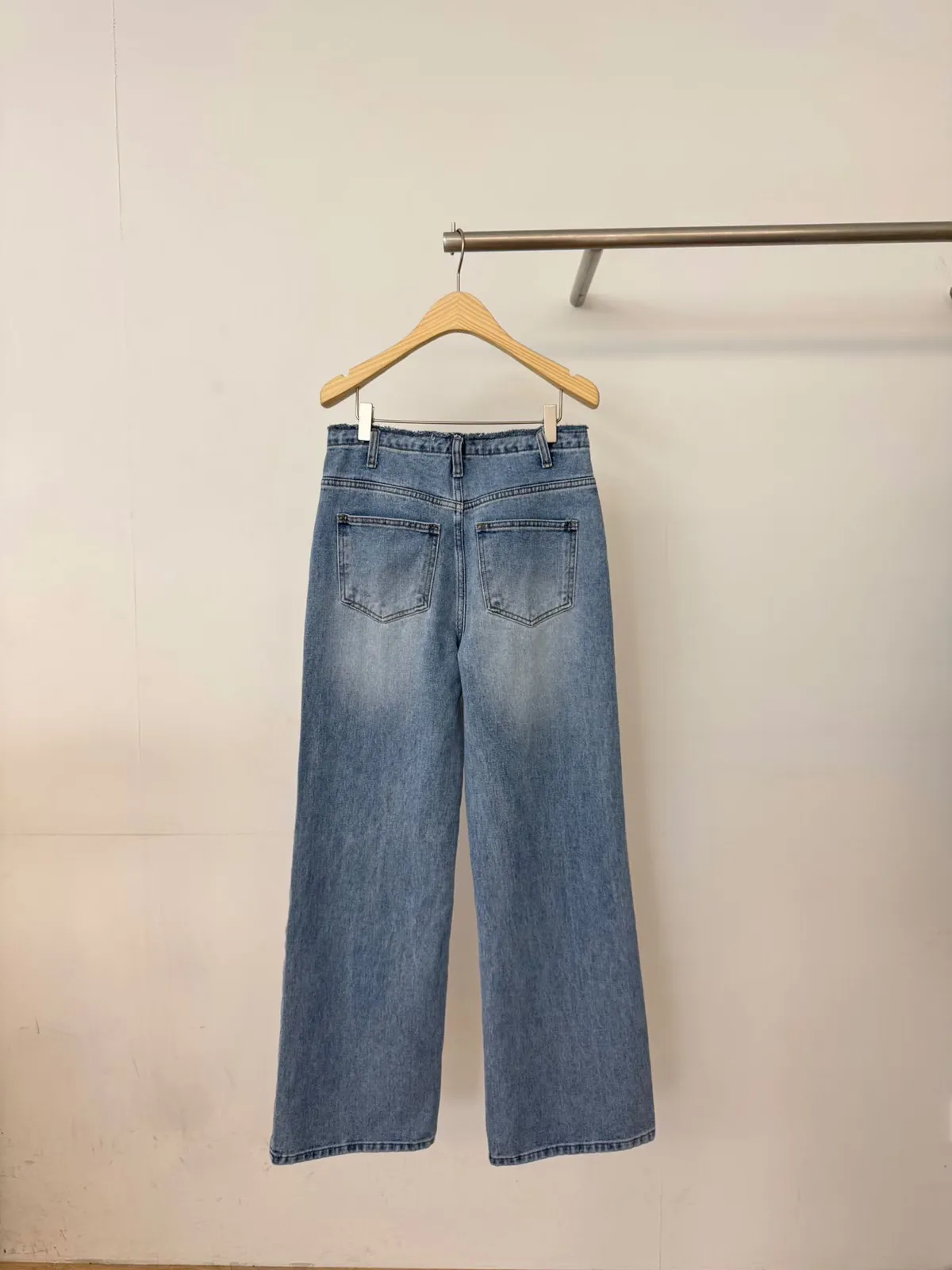 D411高檔休閒家設計感刷色直筒牛仔褲(S/M)