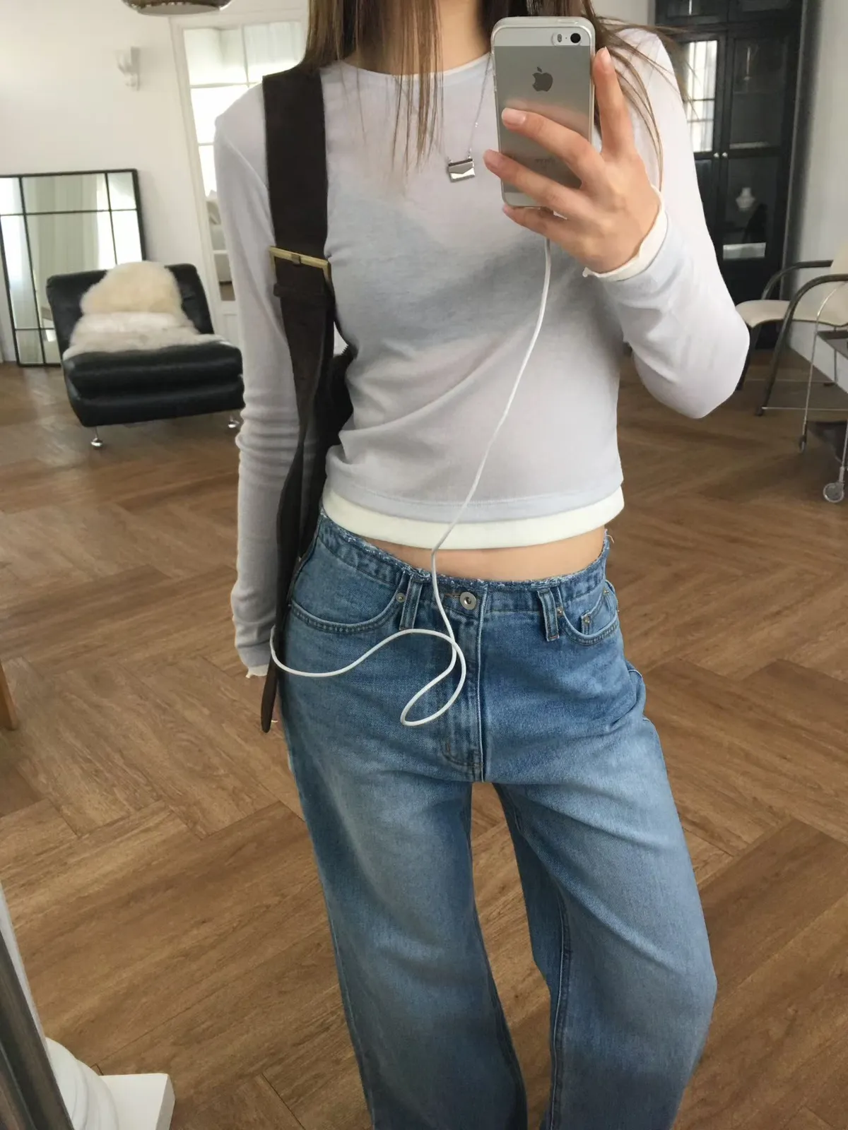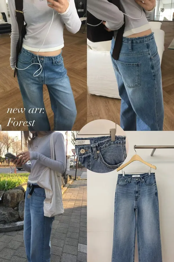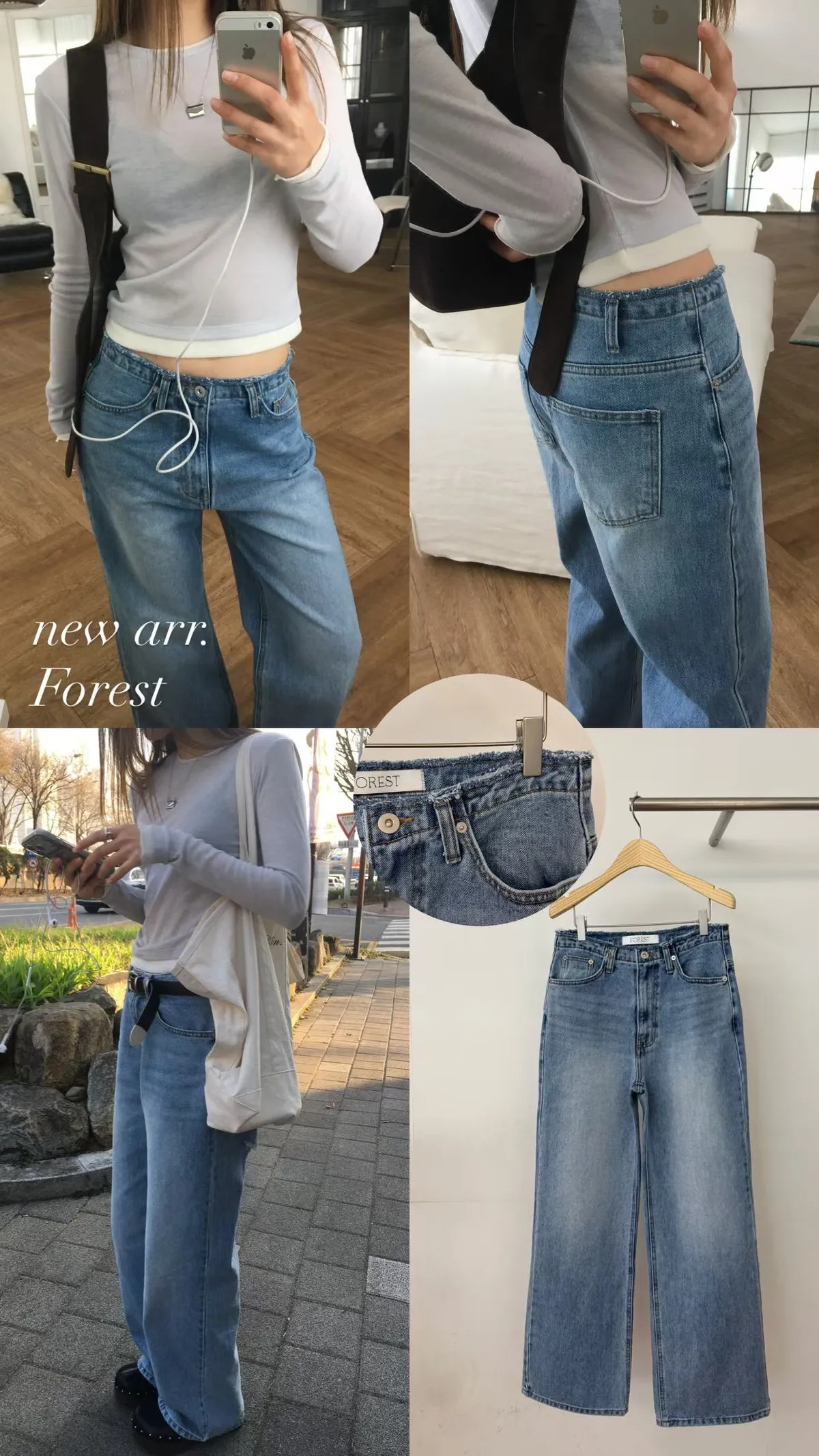 D411高檔休閒家設計感刷色直筒牛仔褲(S/M)