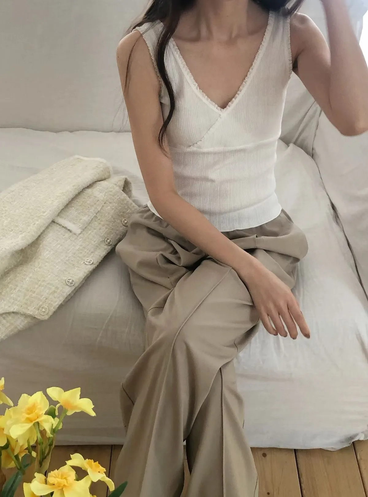 D406高檔休閒家V領滾邊背心2色