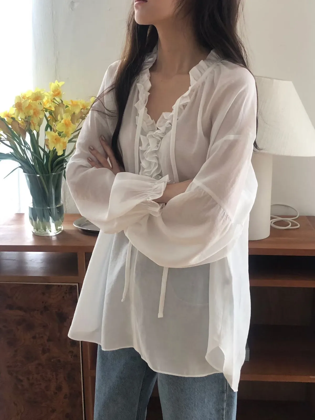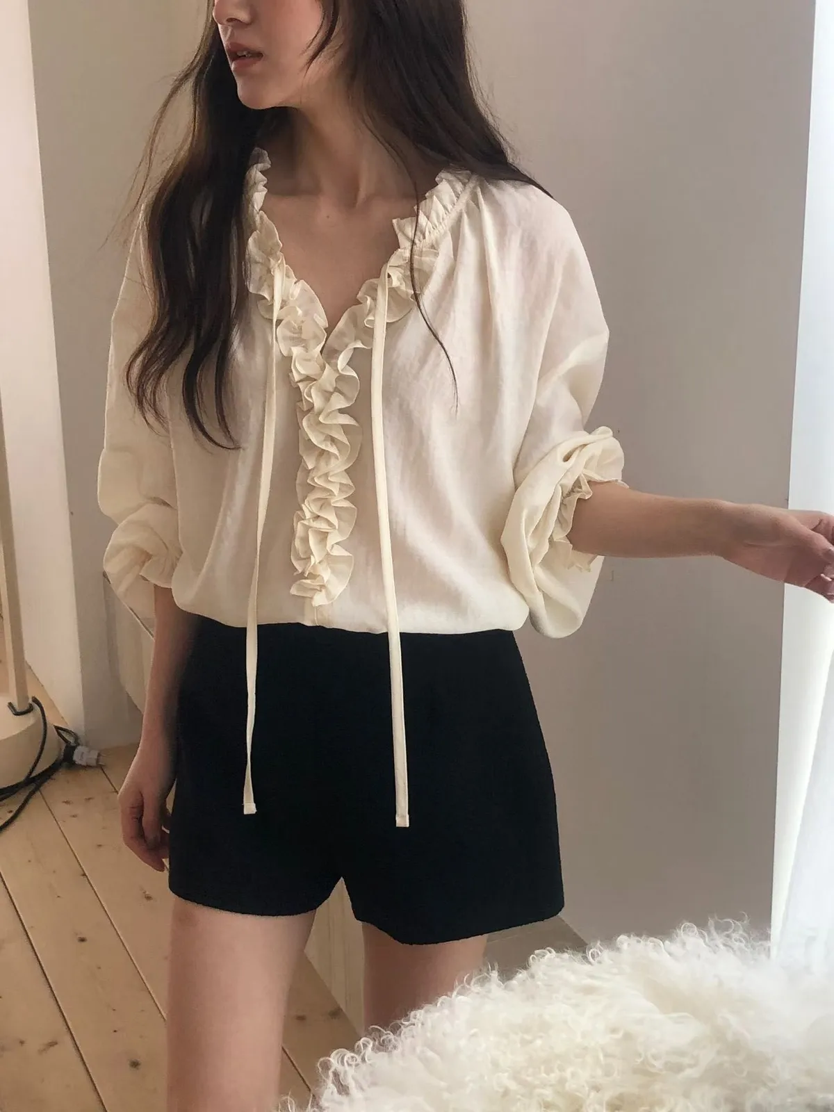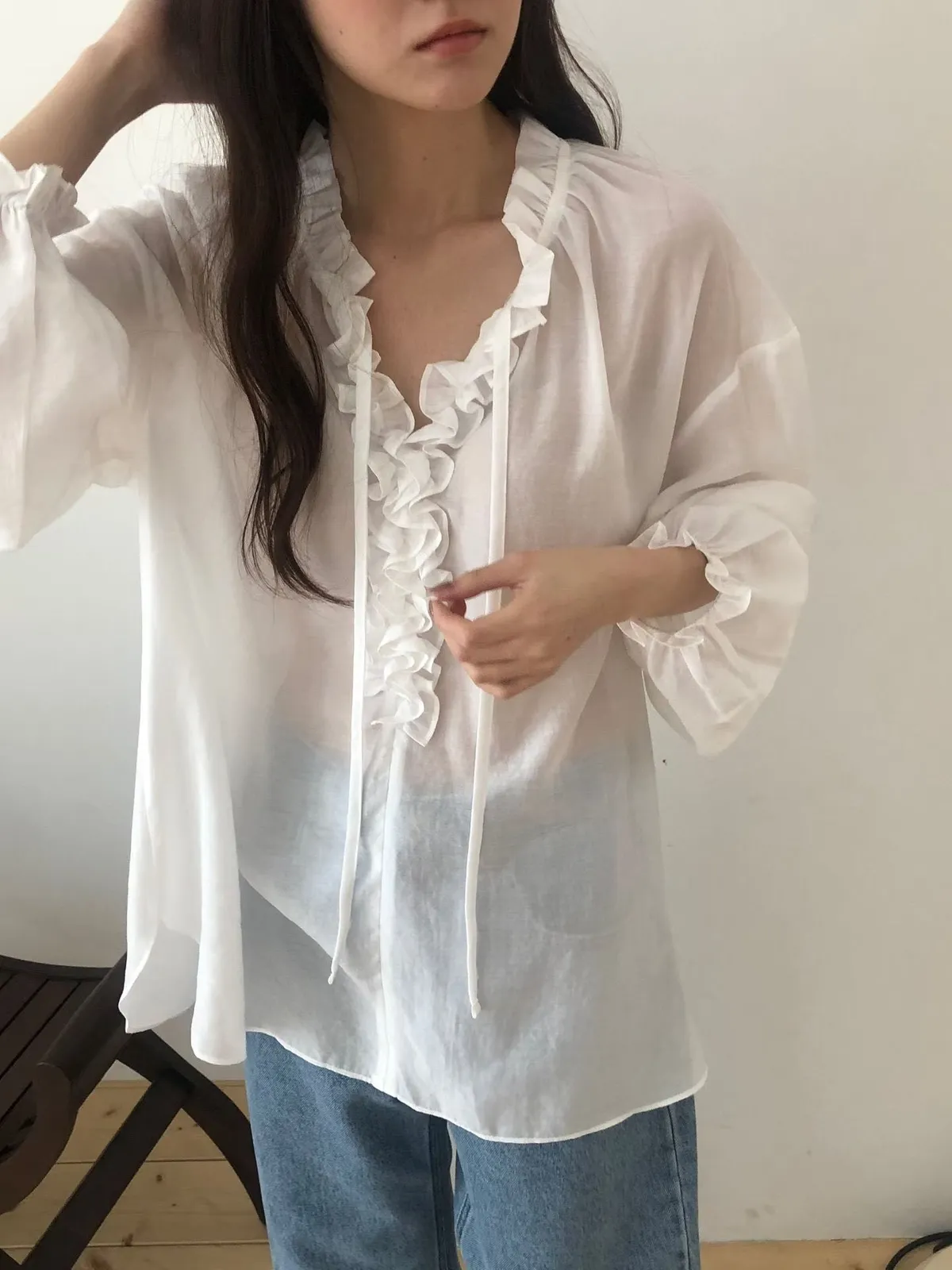 D409高檔休閒家滾邊V領BL上衣2色