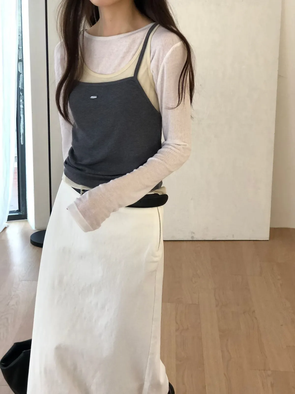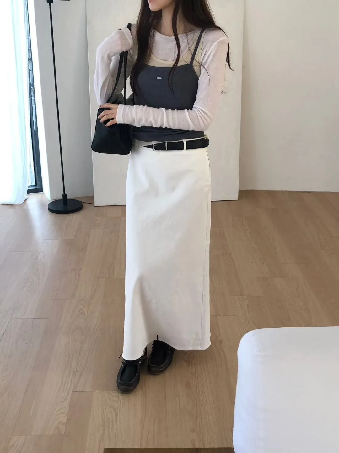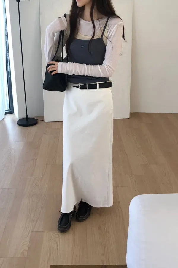 D412高檔休閒家挺版側拉鍊H長裙2色(S/M)