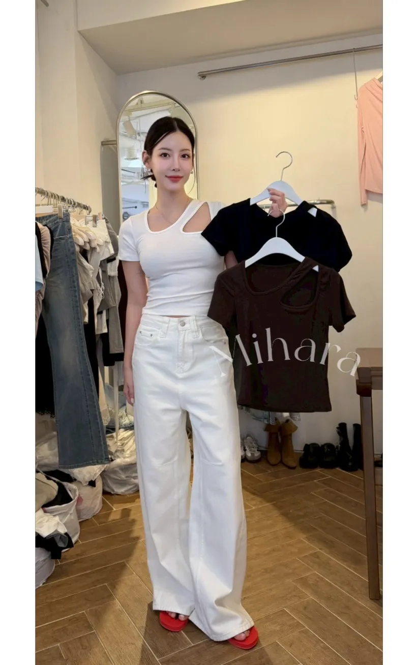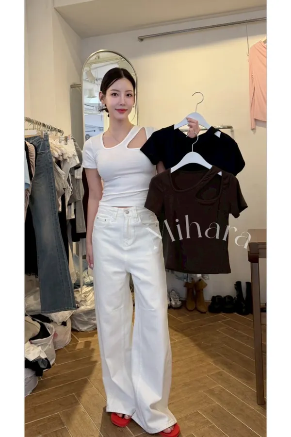 A4 0405舒淇歐膩家挖洞不規則領純棉上衣3色