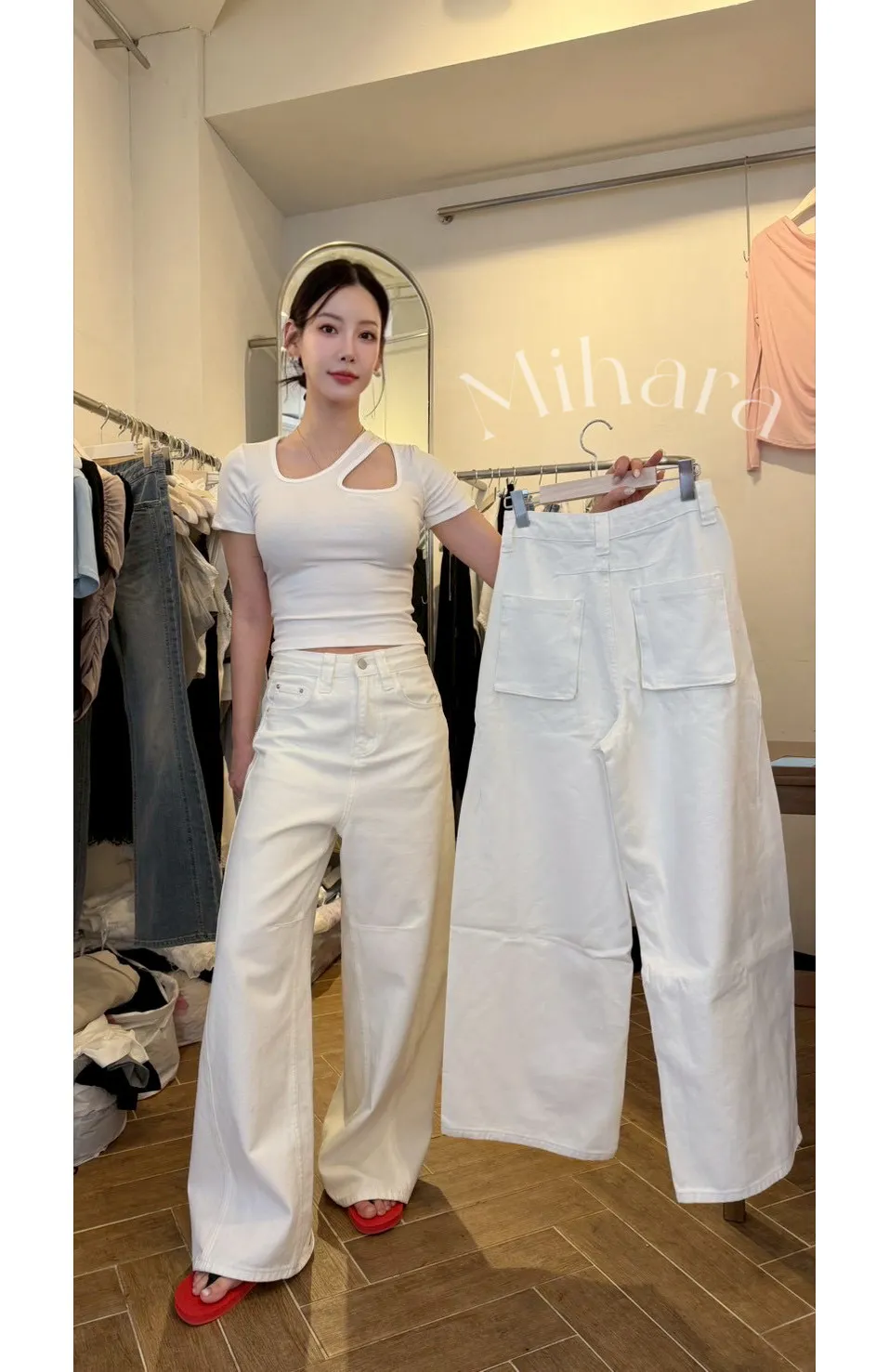 A5 0405舒淇歐膩家後立體口袋大寬褲(S/M/L)