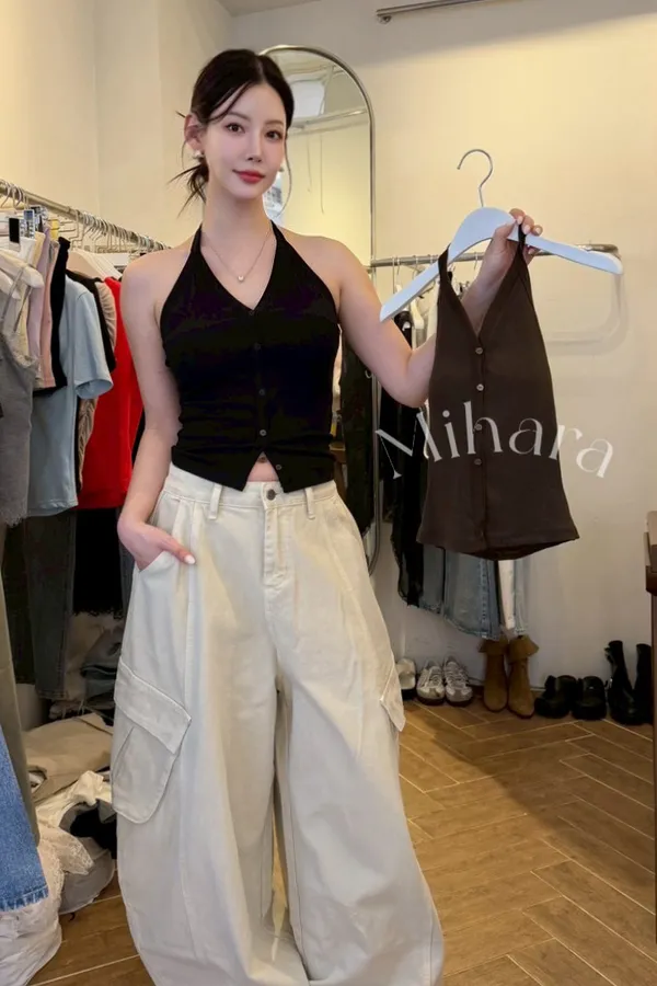 A8 0405舒淇歐膩家挖背繞脖V領小可愛3色