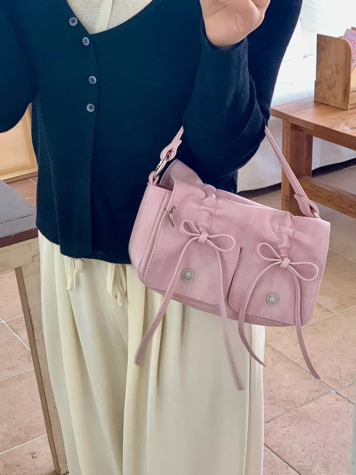 A20 0405雙蝴蝶結牛皮100%(小)方包4色