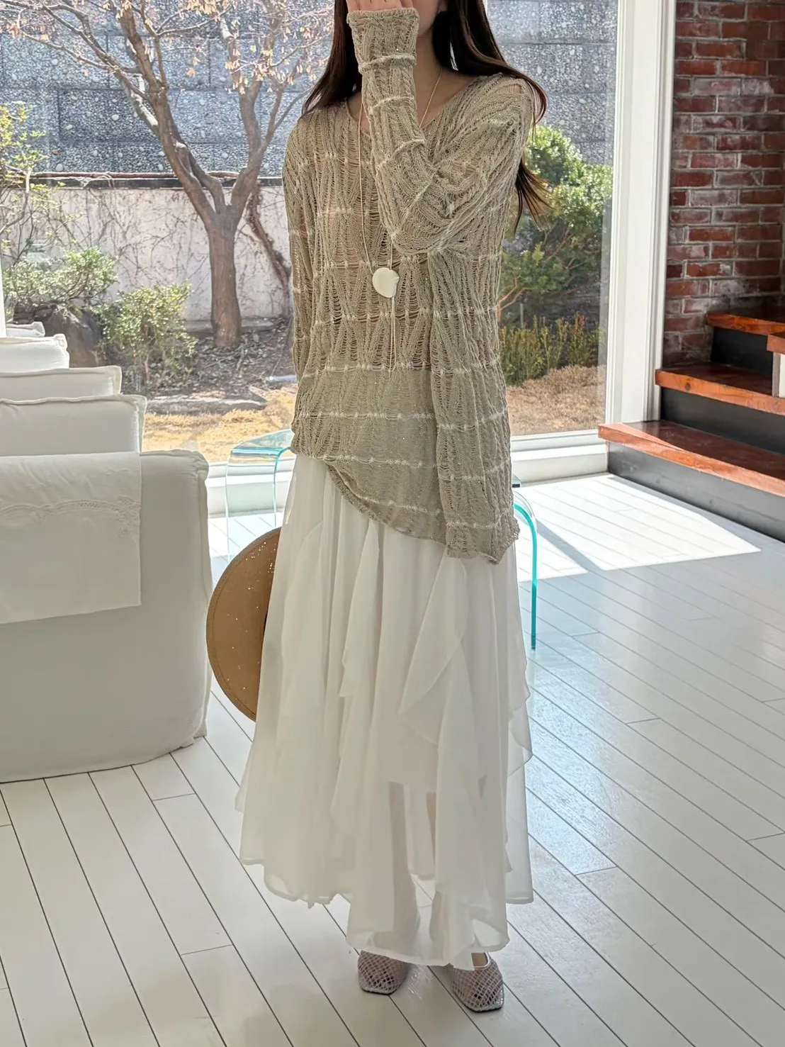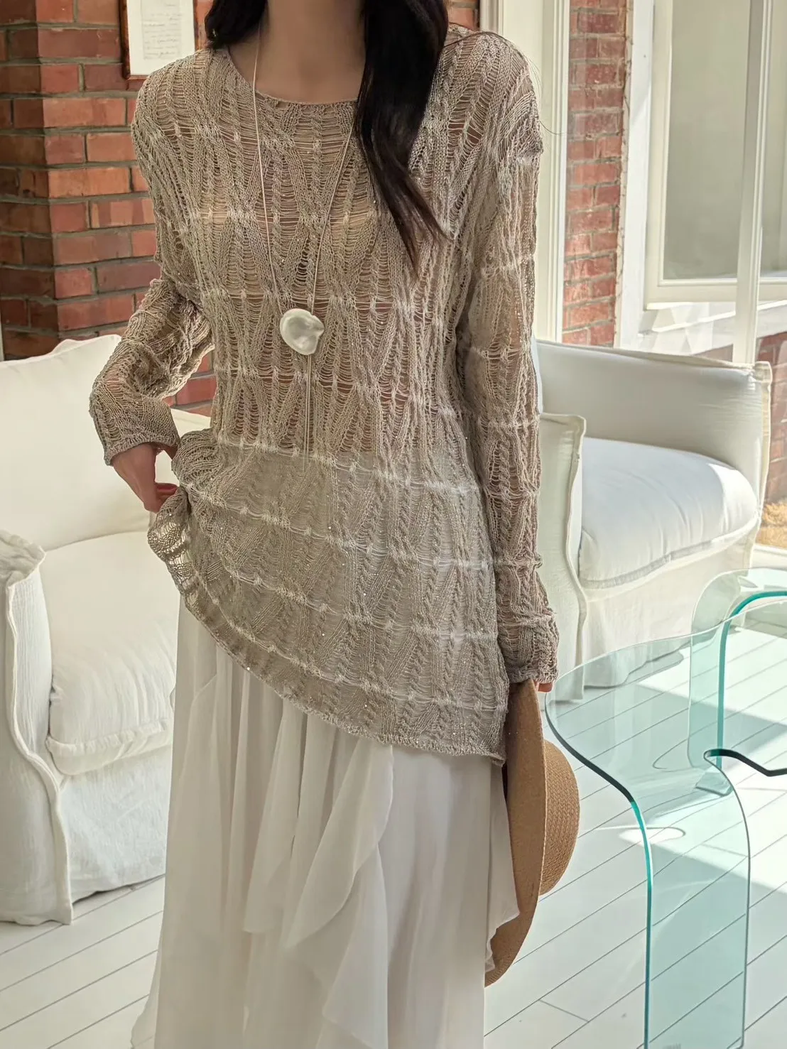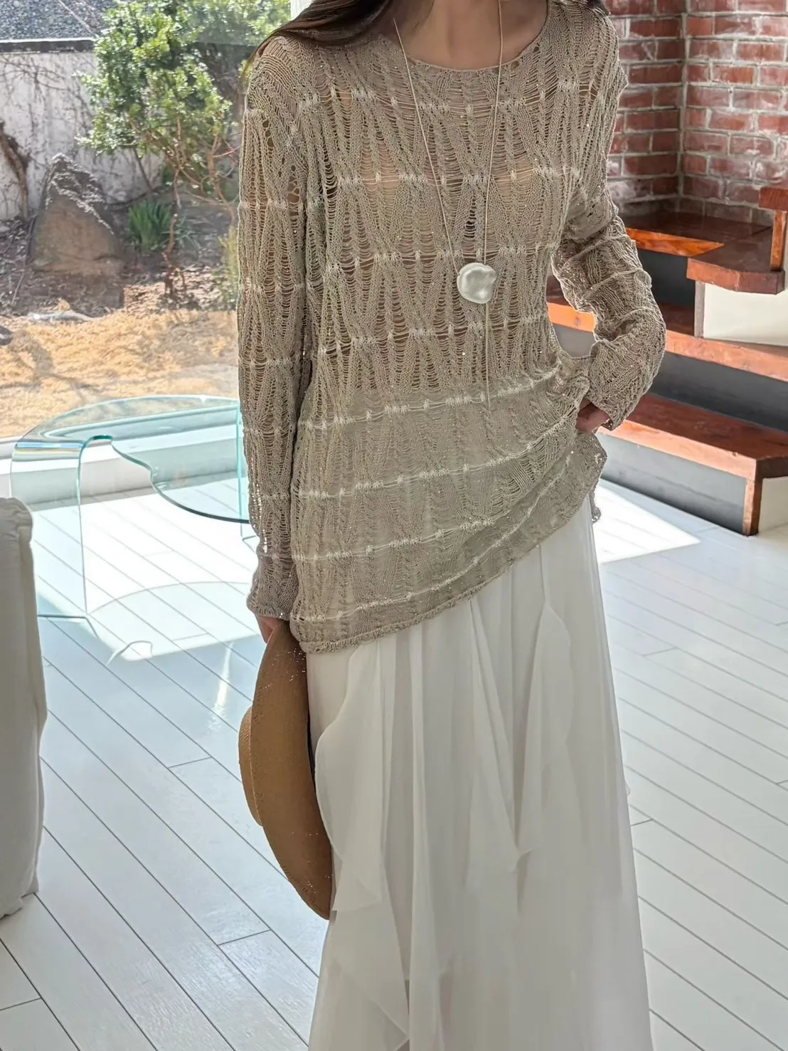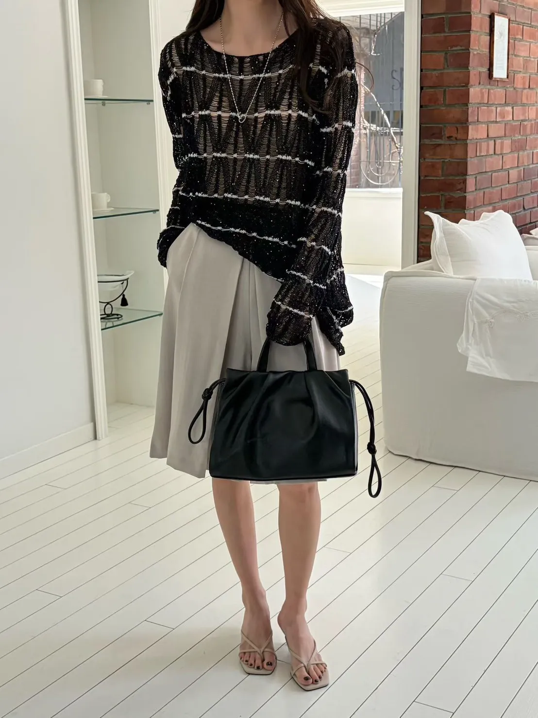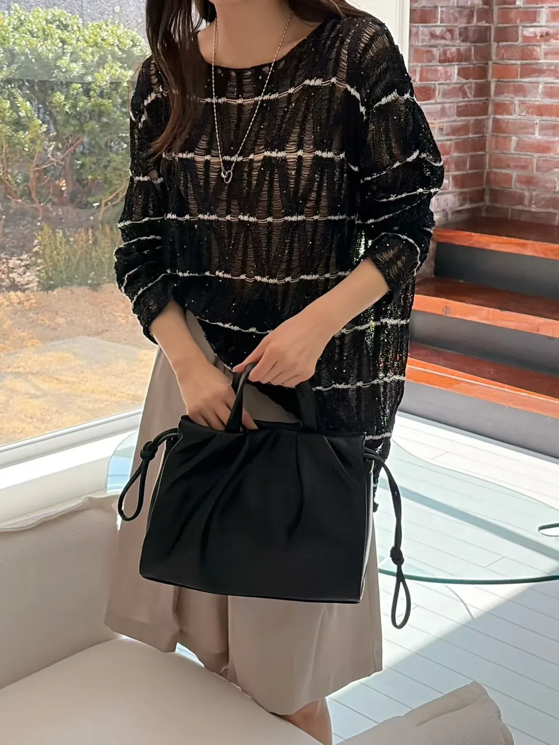 A41 0407名媛歐膩家橫條圓領洞洞上衣3色