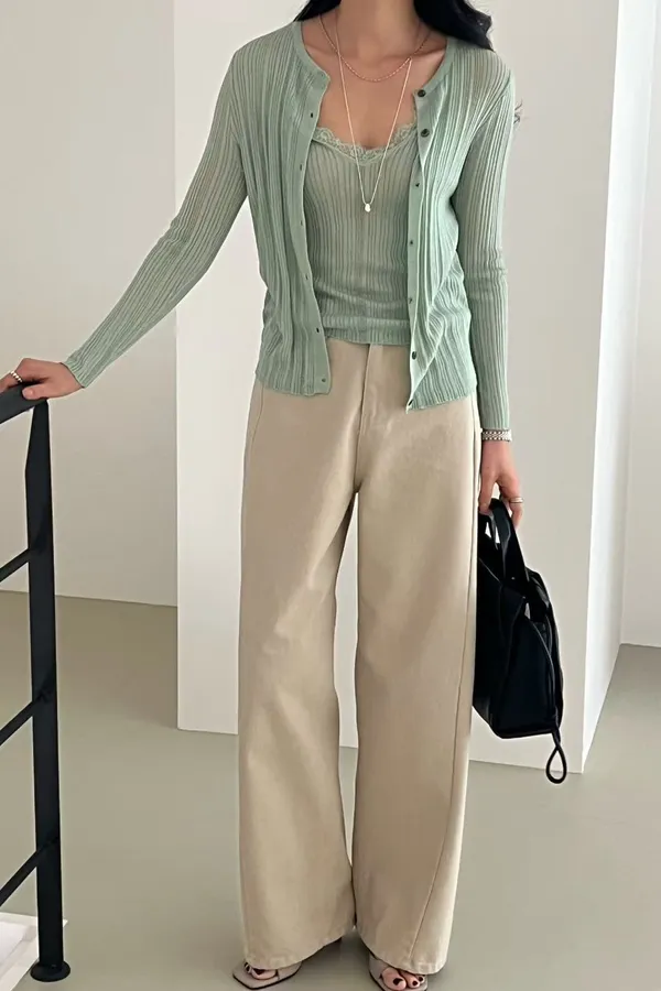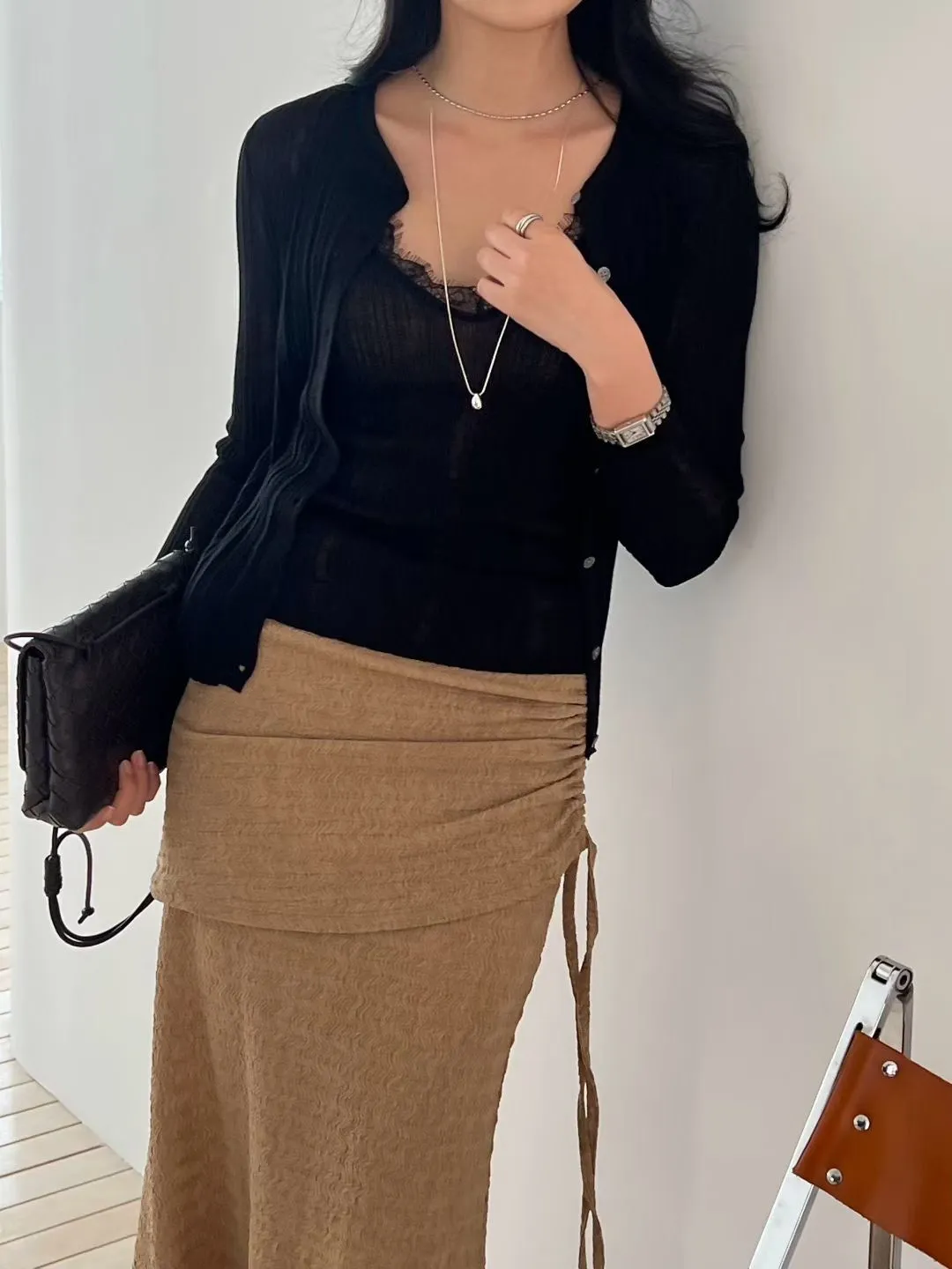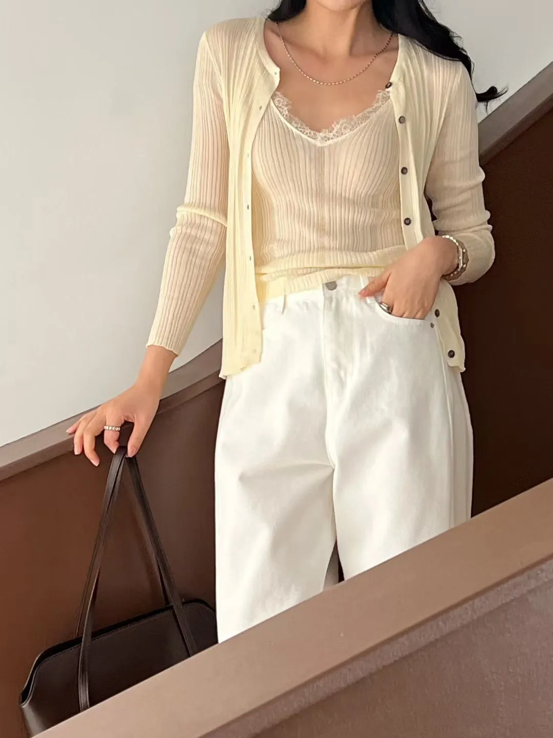 A46 0407名媛歐膩家V領罩衫+拼接睫毛蕾絲細肩帶背心(SET)4色