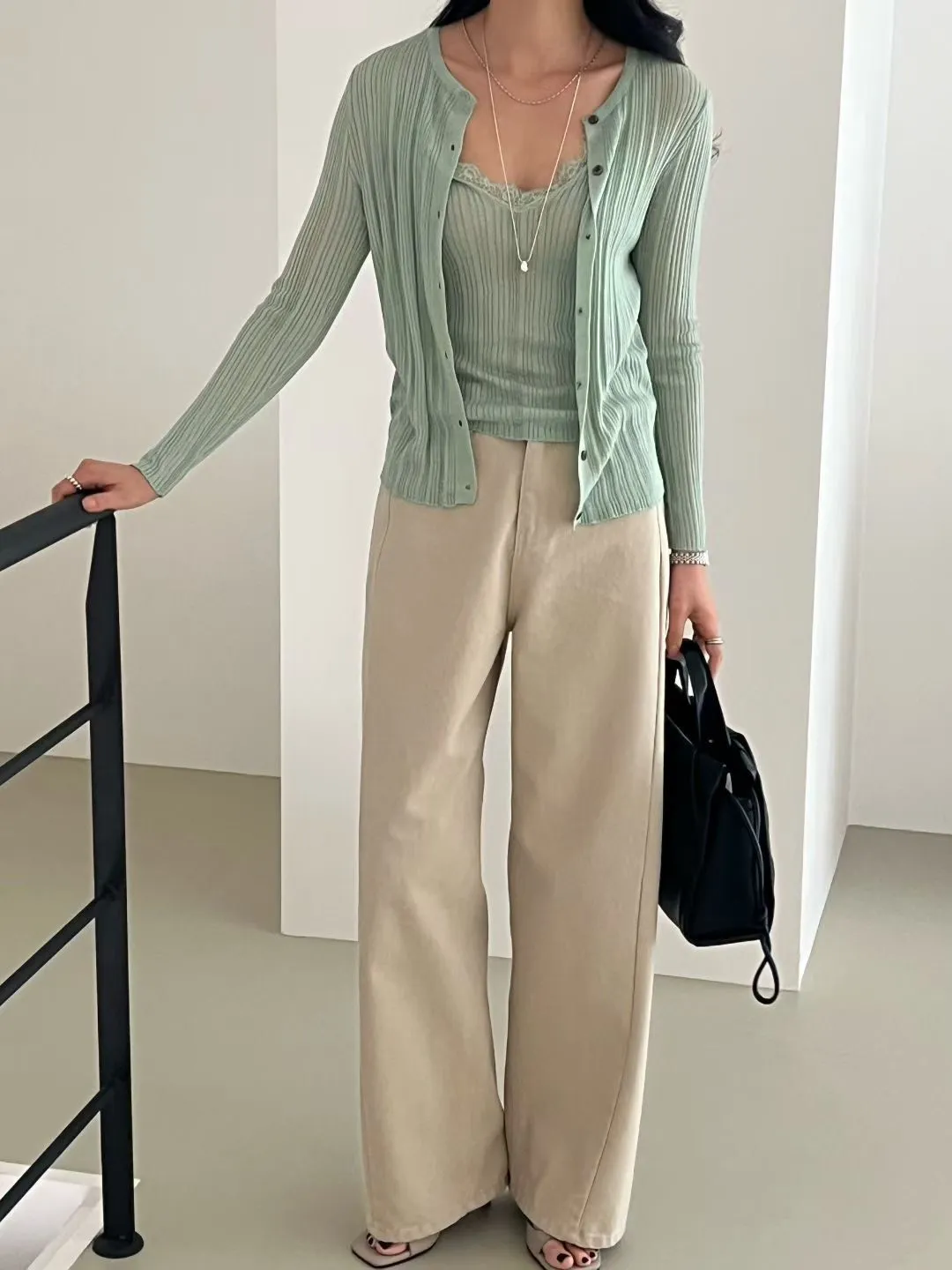 A47 0407名媛歐膩家斜紋棉直筒褲2色(S/M/L)