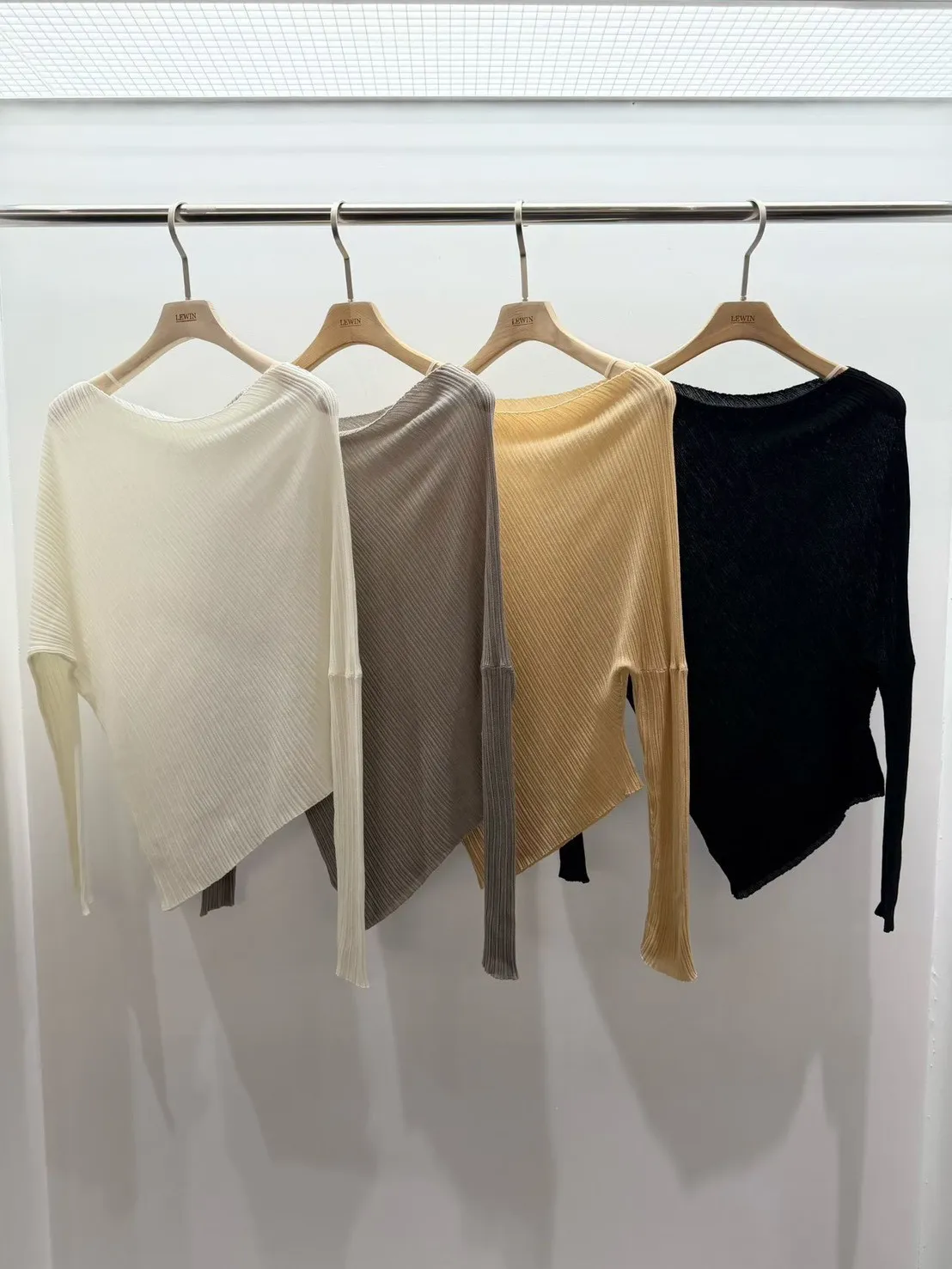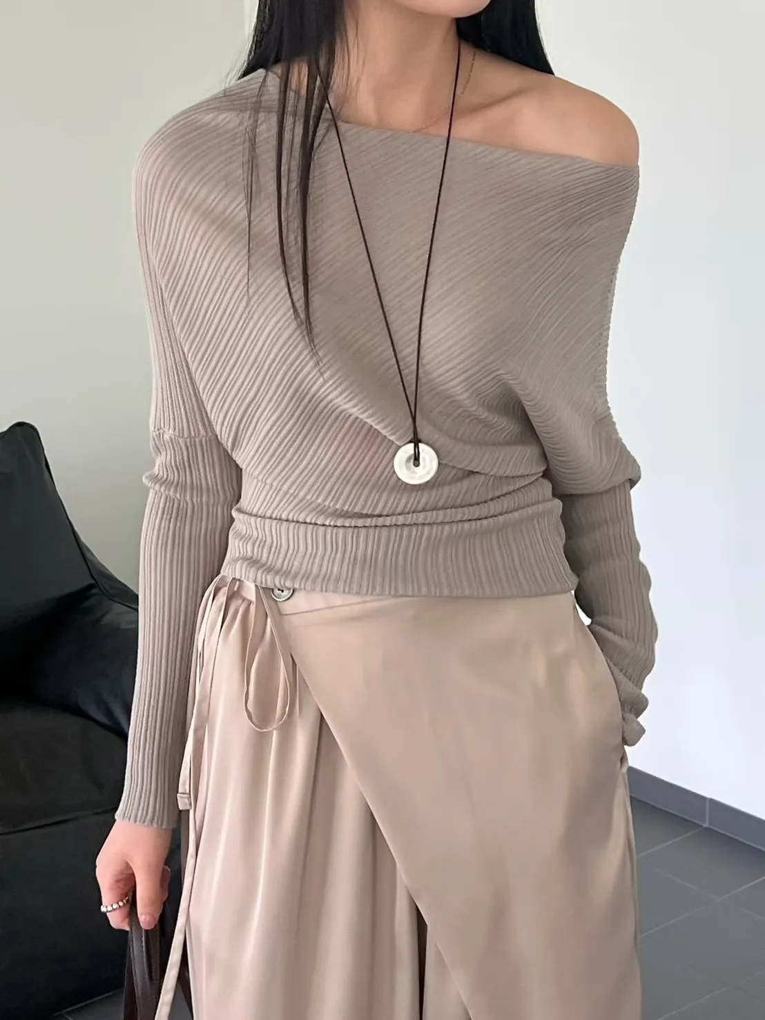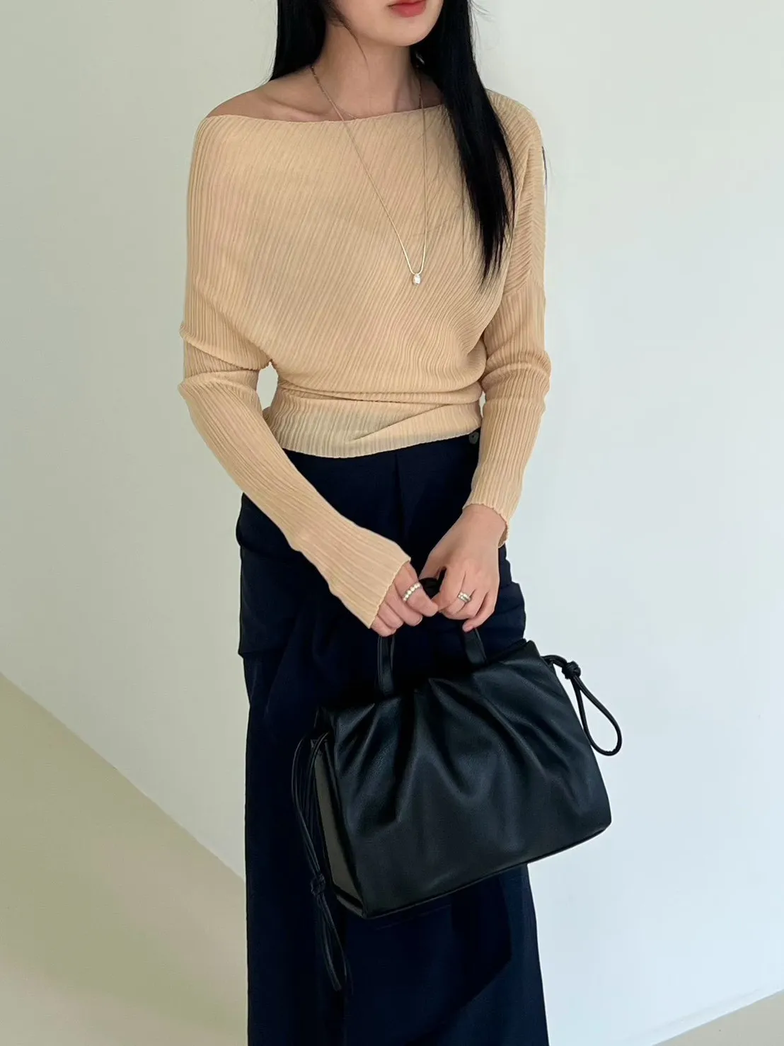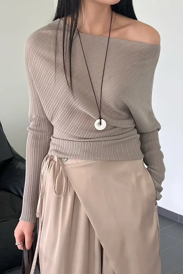 A48 0407名媛歐膩家帆船領可拉一字不規則上衣4色