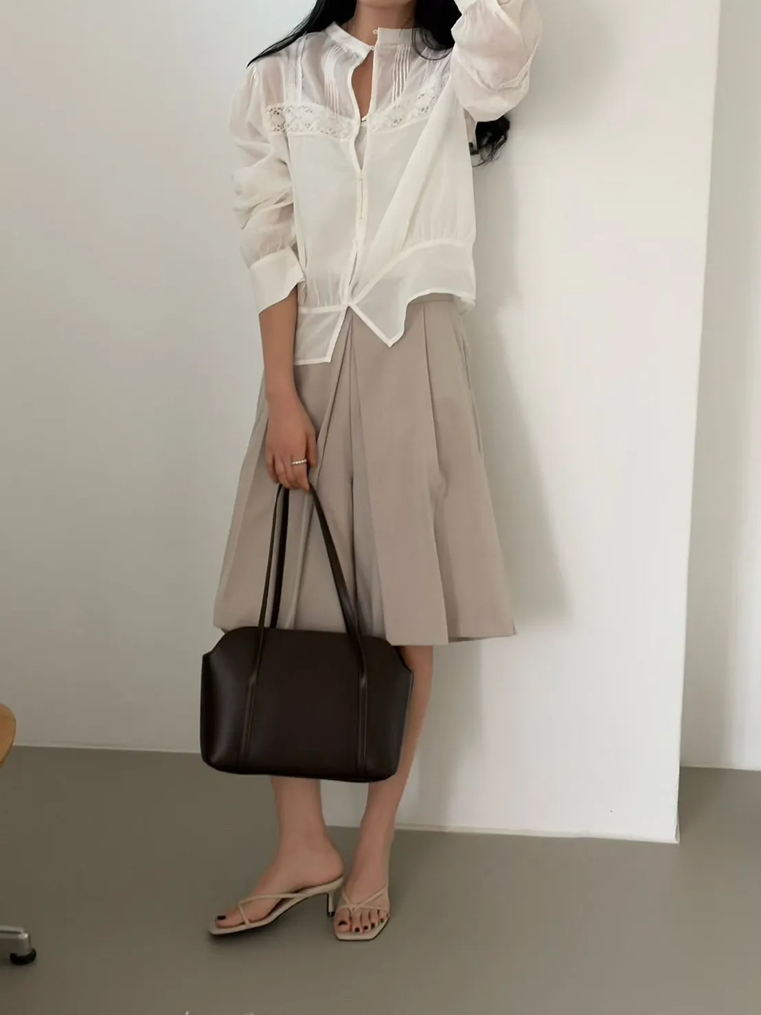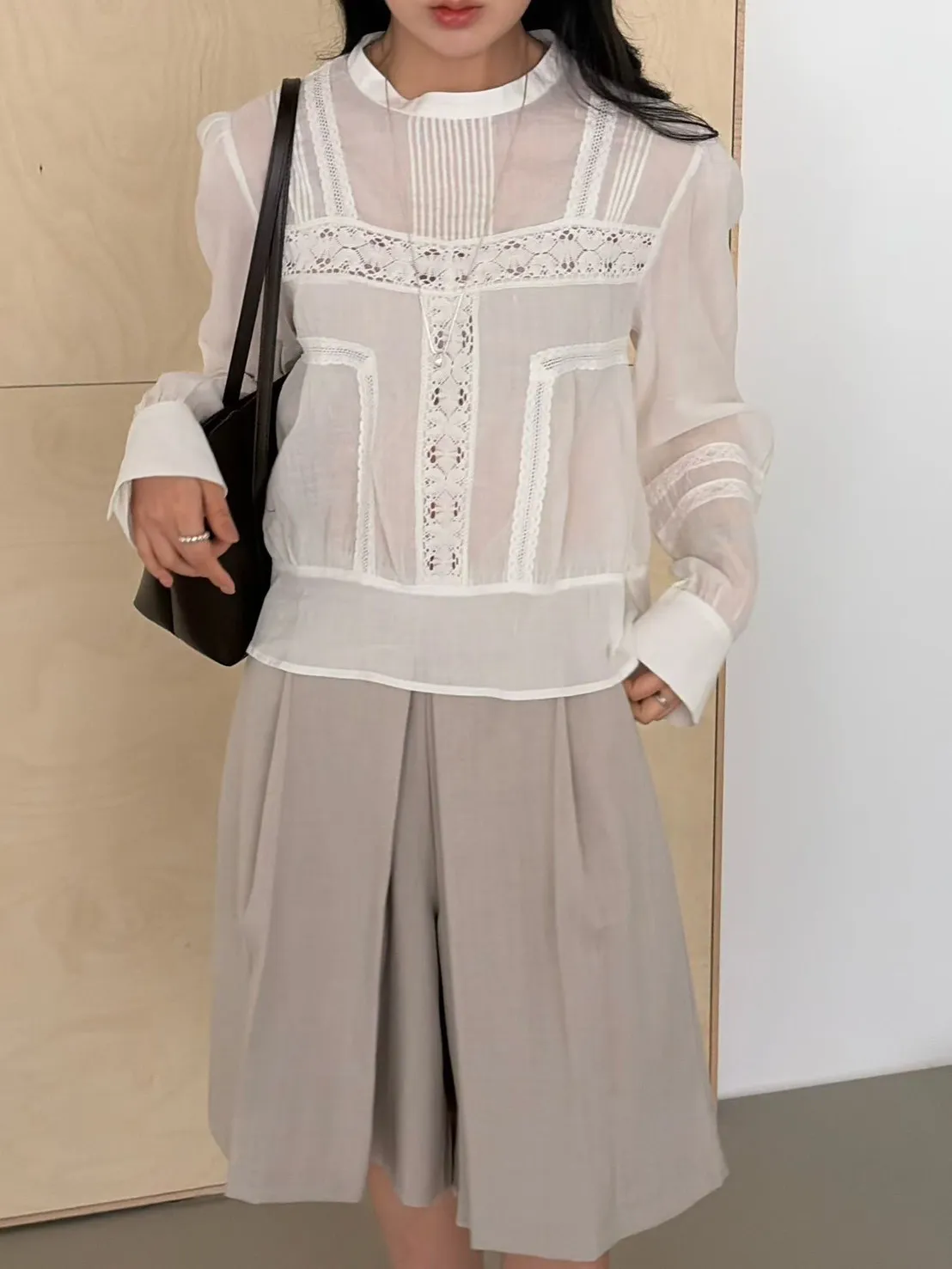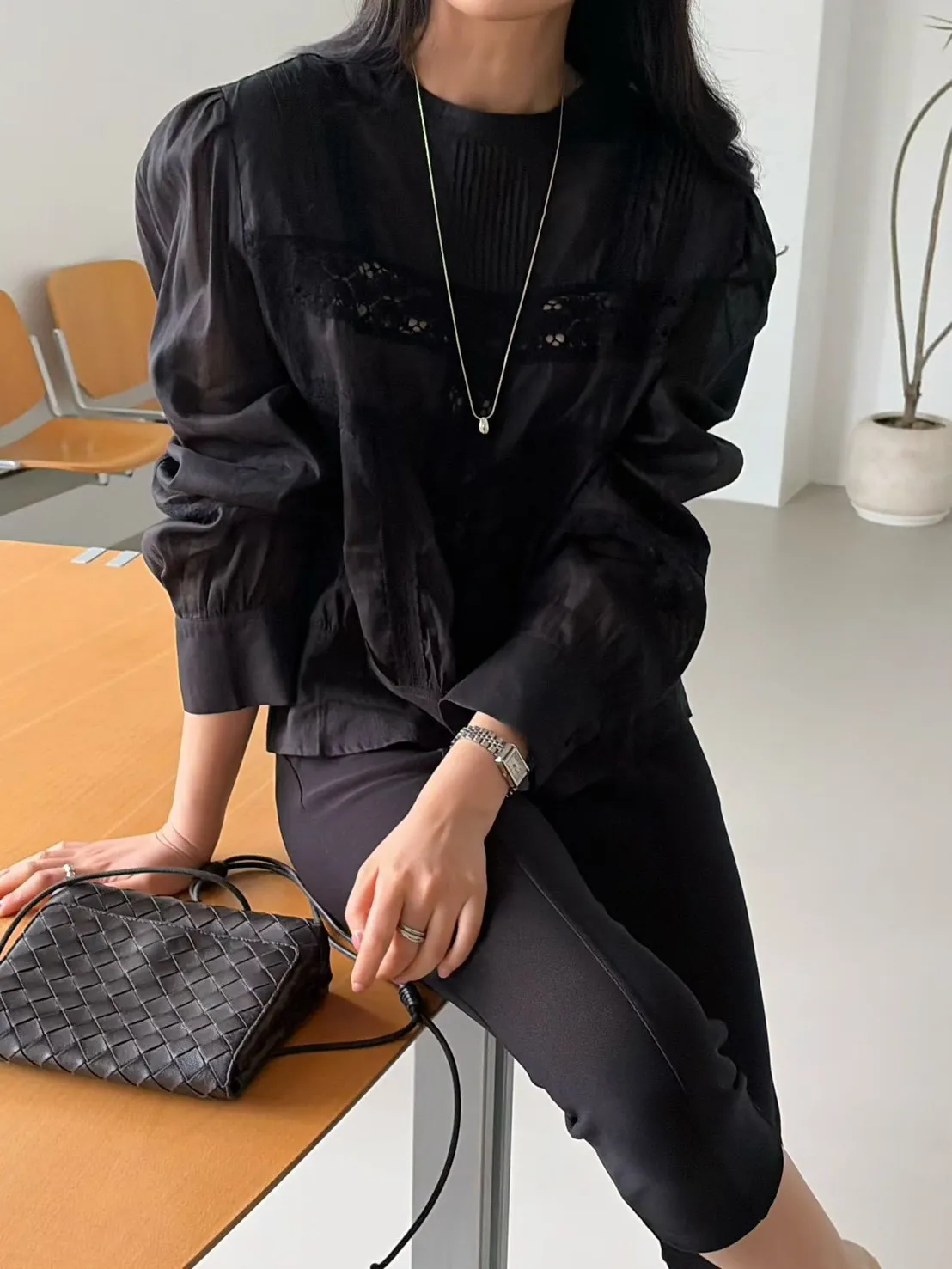 A52 0407名媛歐膩家拼接燒花蕾絲兩面穿圓領上衣2色