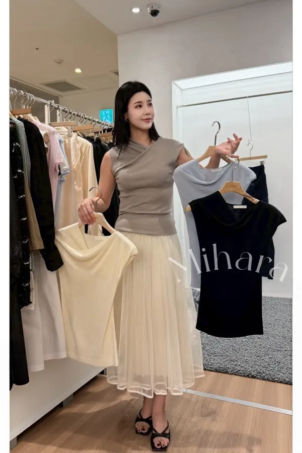 A55 0407名媛歐膩家交叉V領針織背心4色