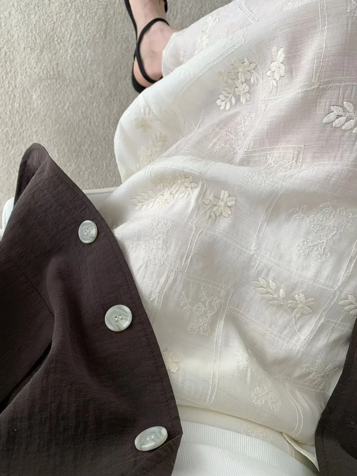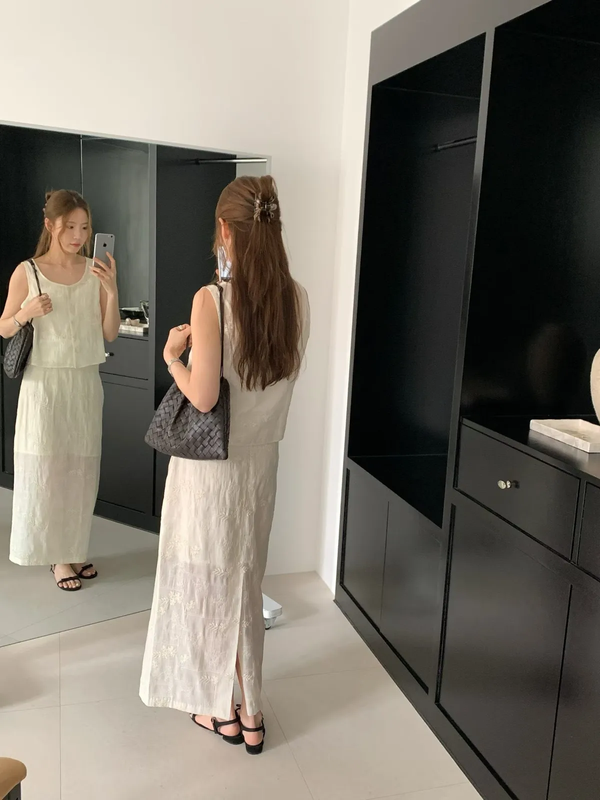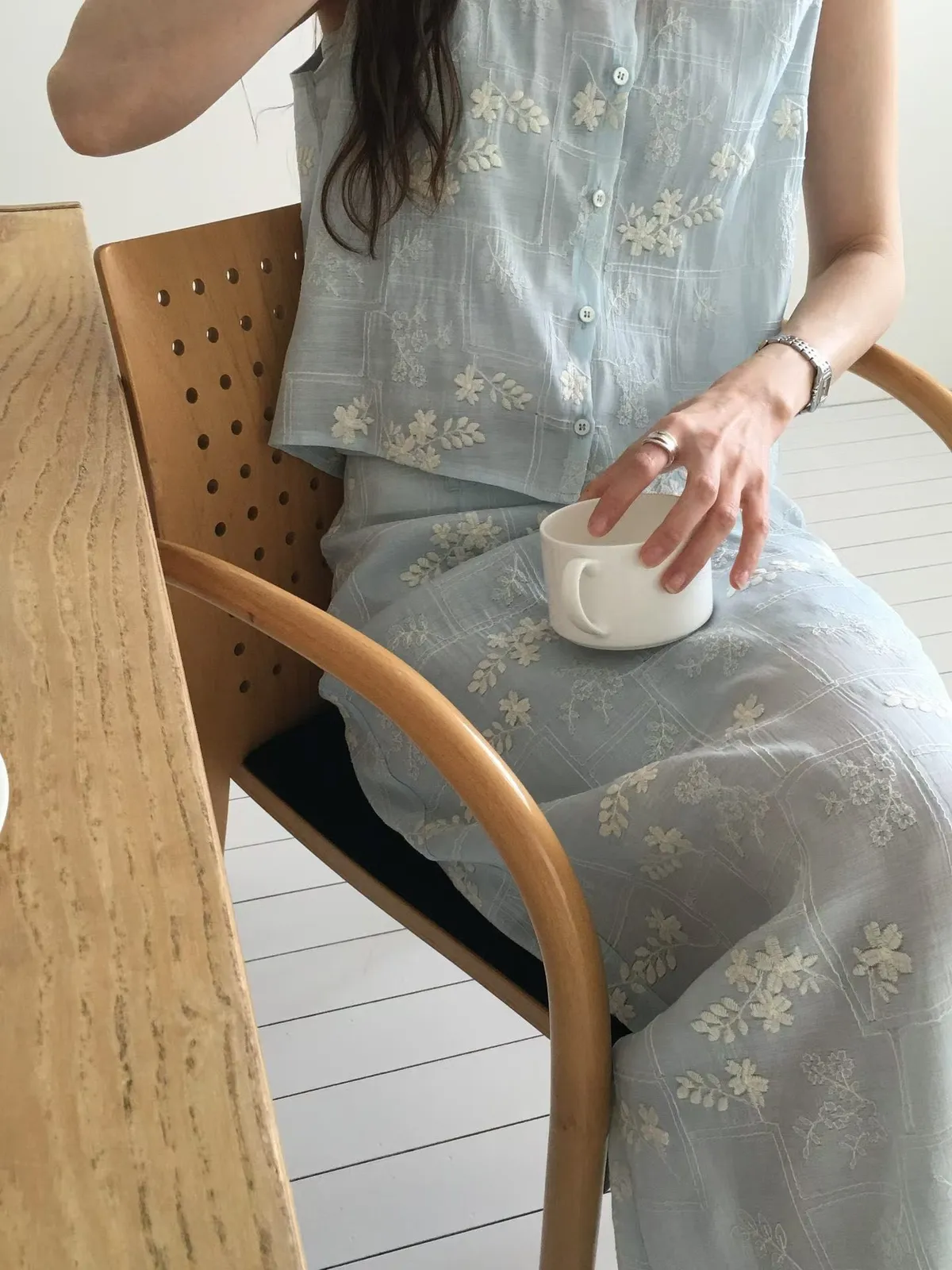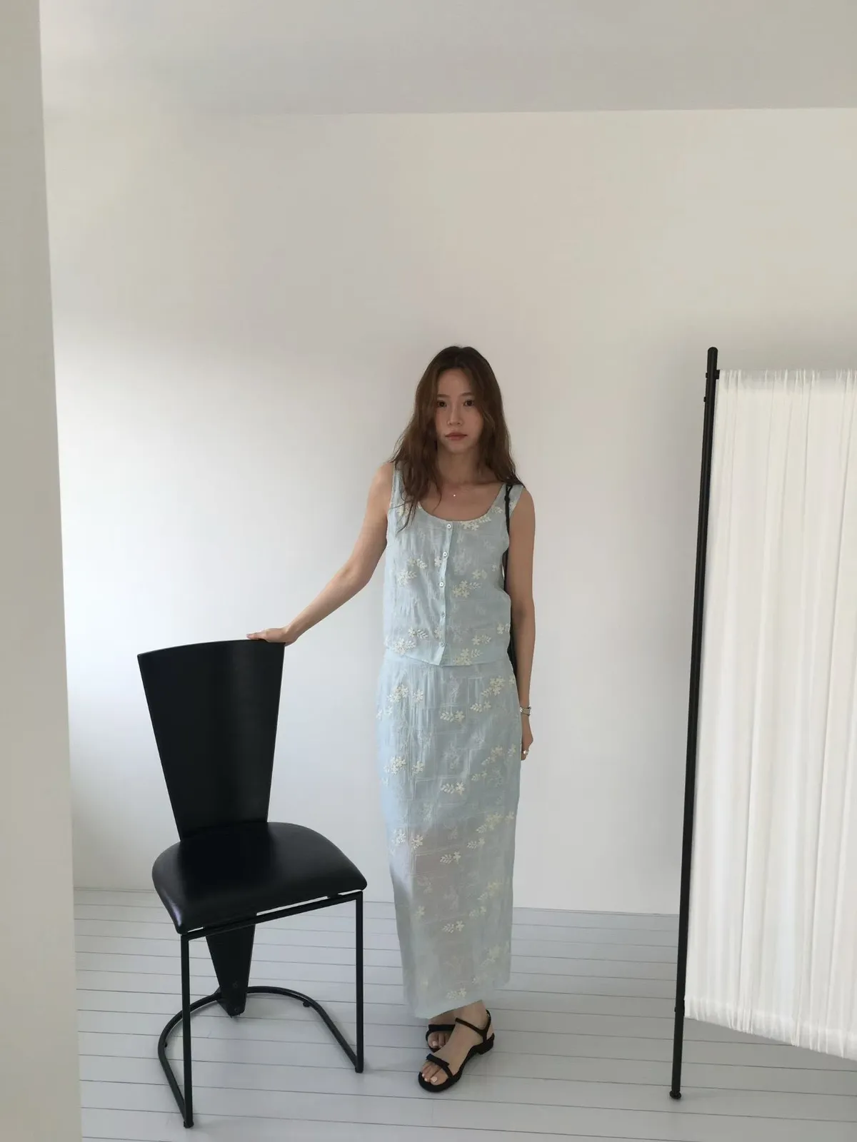B262捲髮歐膩開釦背心+彈性腰後開叉裙子(set)