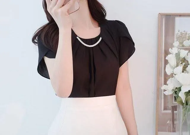 B232優雅美鑽雪紡上衣4色