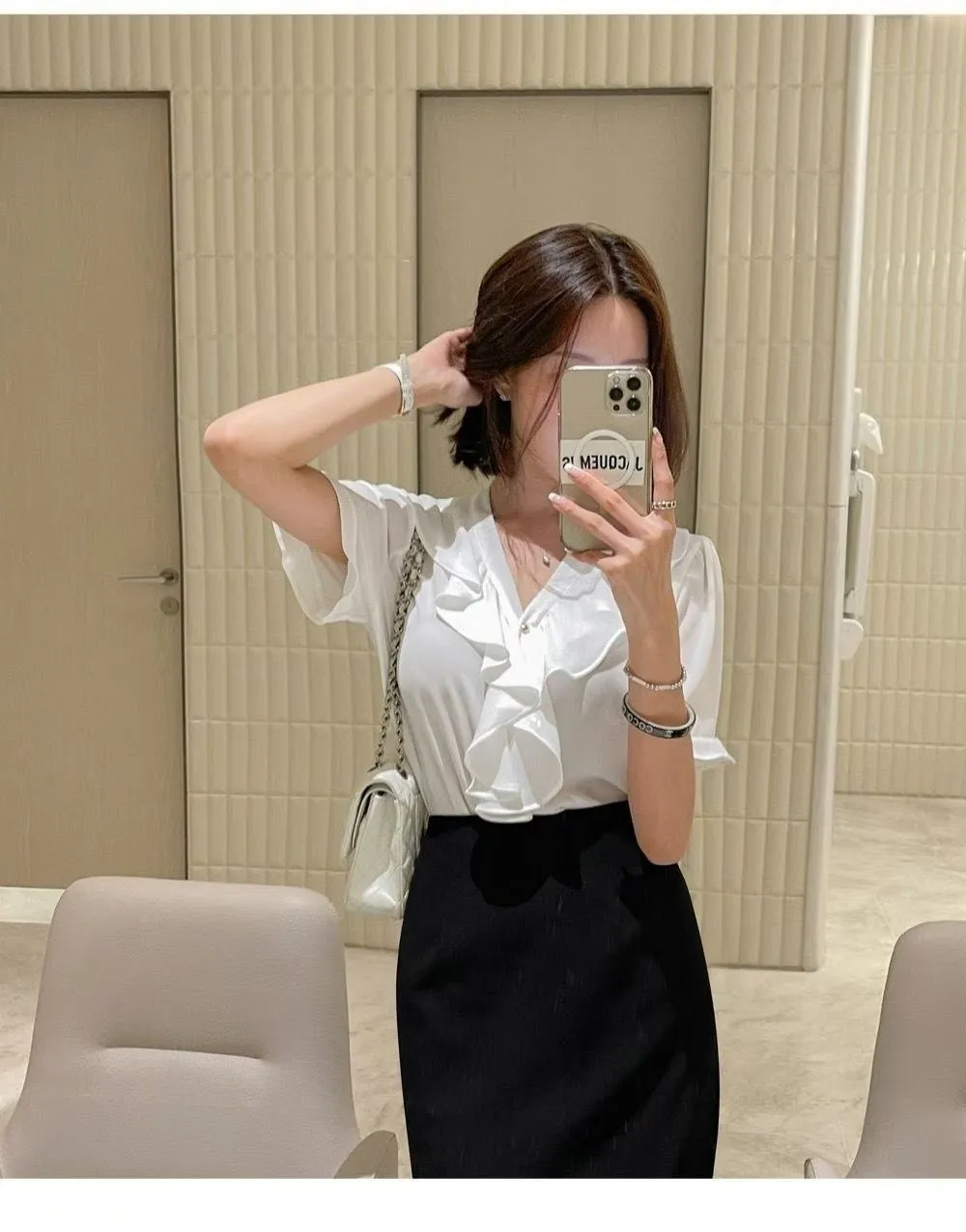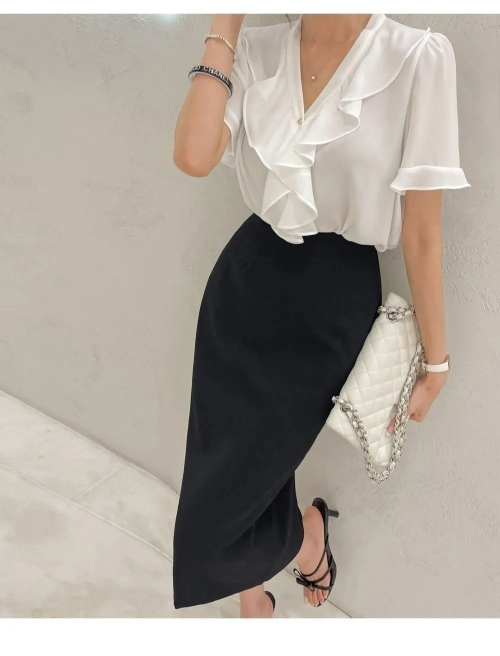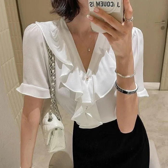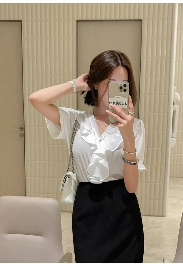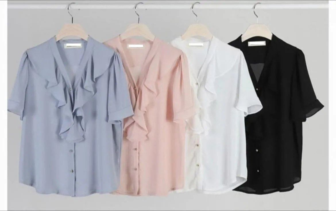 B227V領荷葉雪紡上衣4色