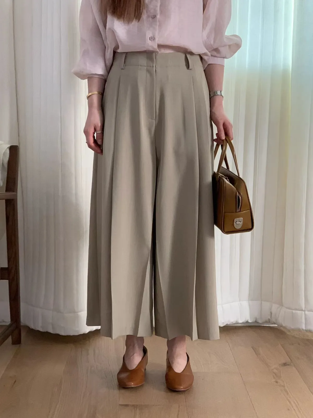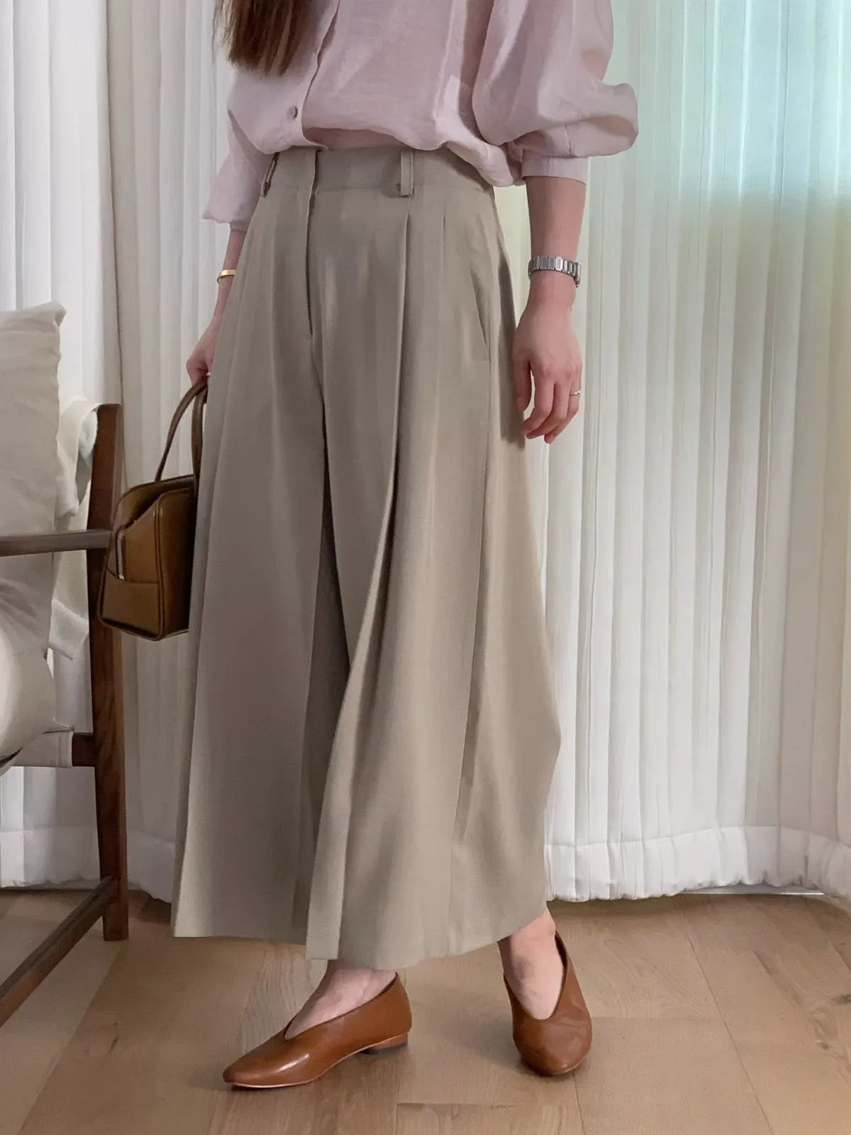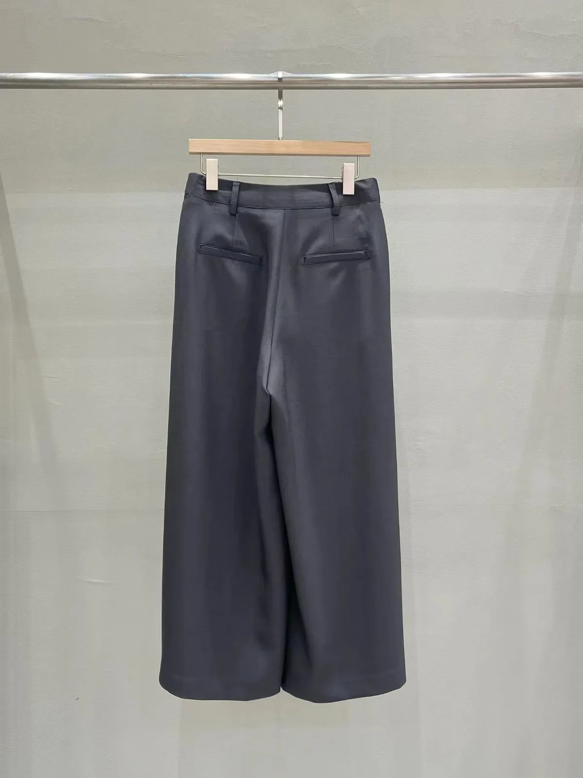 D11氣質歐膩打摺冰絲寬褲(S/M/L)2色