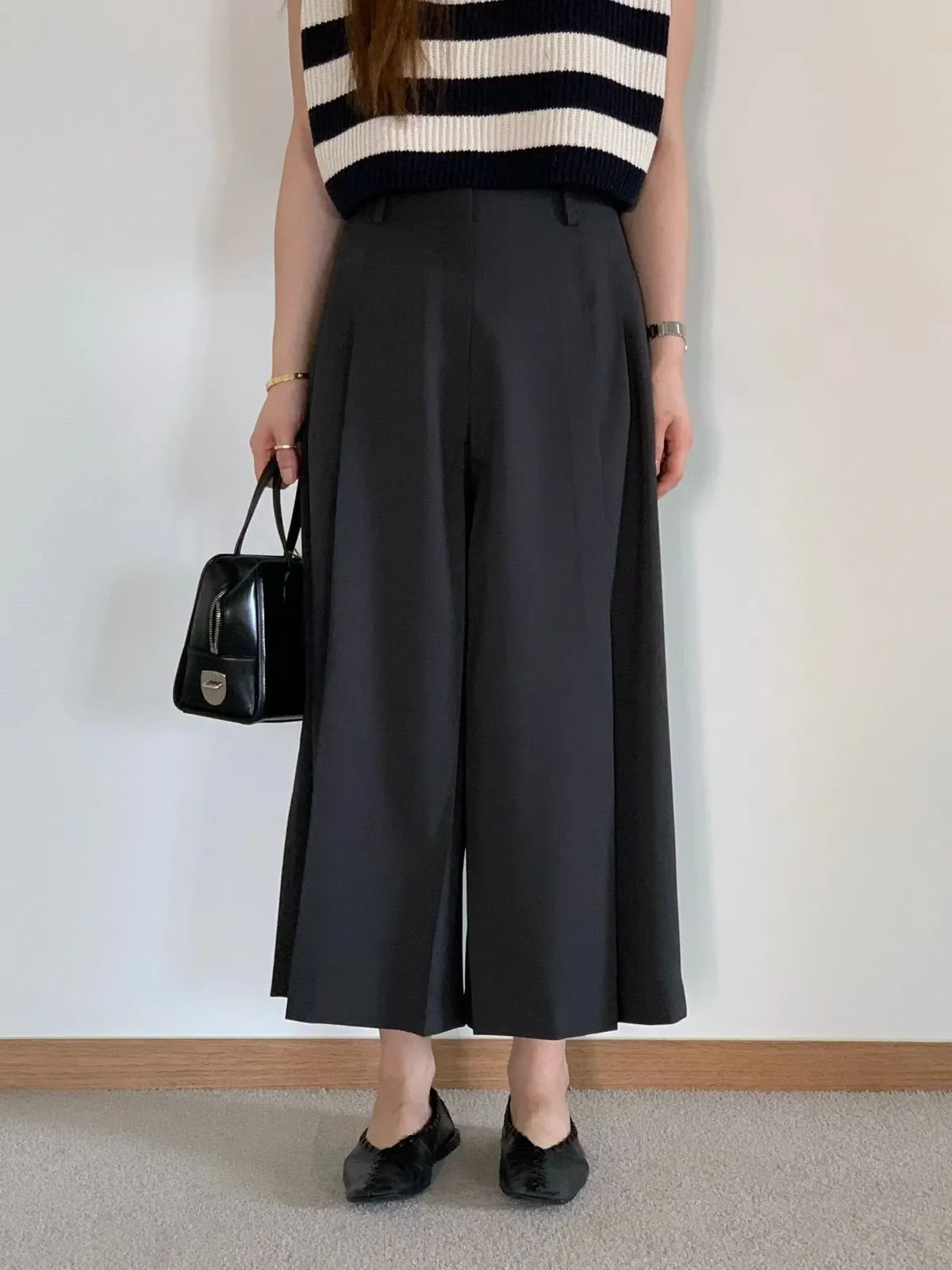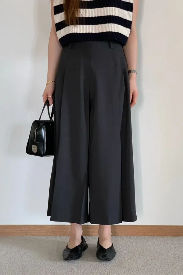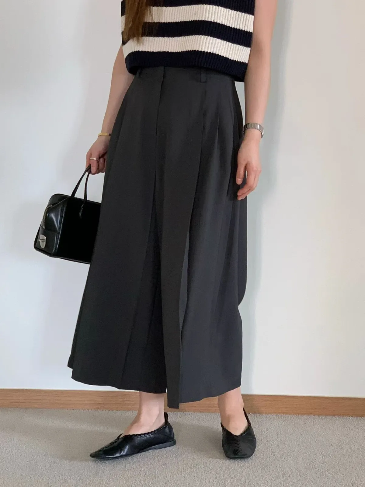 D11氣質歐膩打摺冰絲寬褲(S/M/L)2色