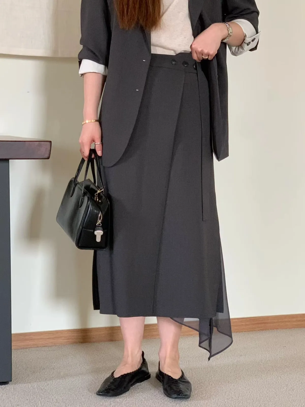 D6氣質歐膩調節側釦雙層裙(S/M/L)