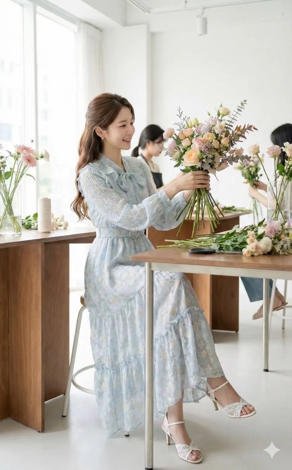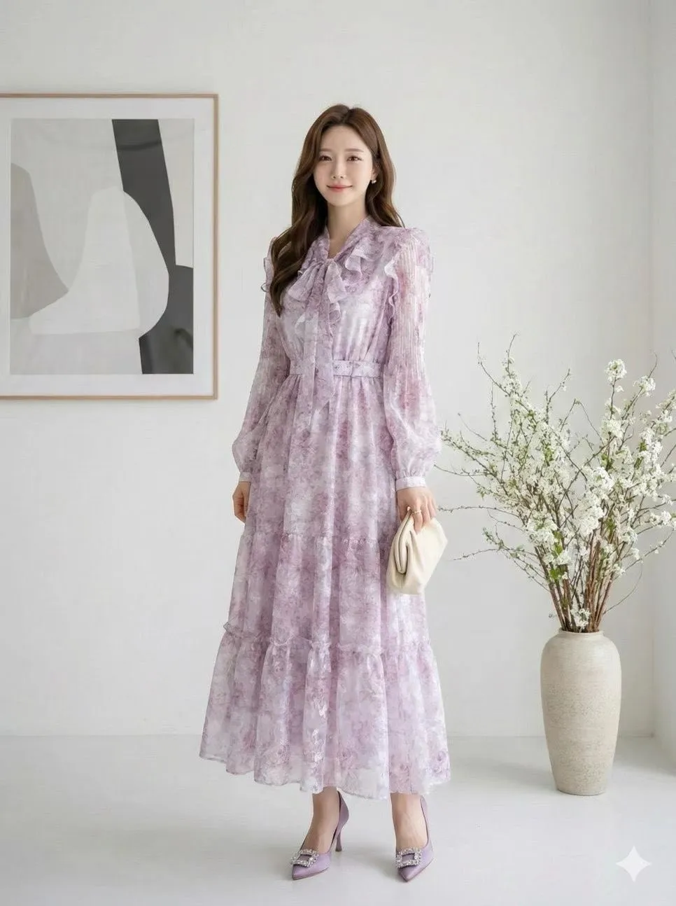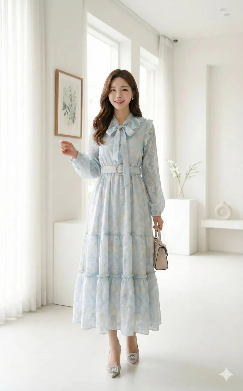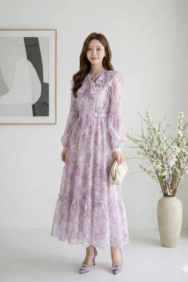 B290華麗家荷葉浪漫立體雪紡花洋裝 3色