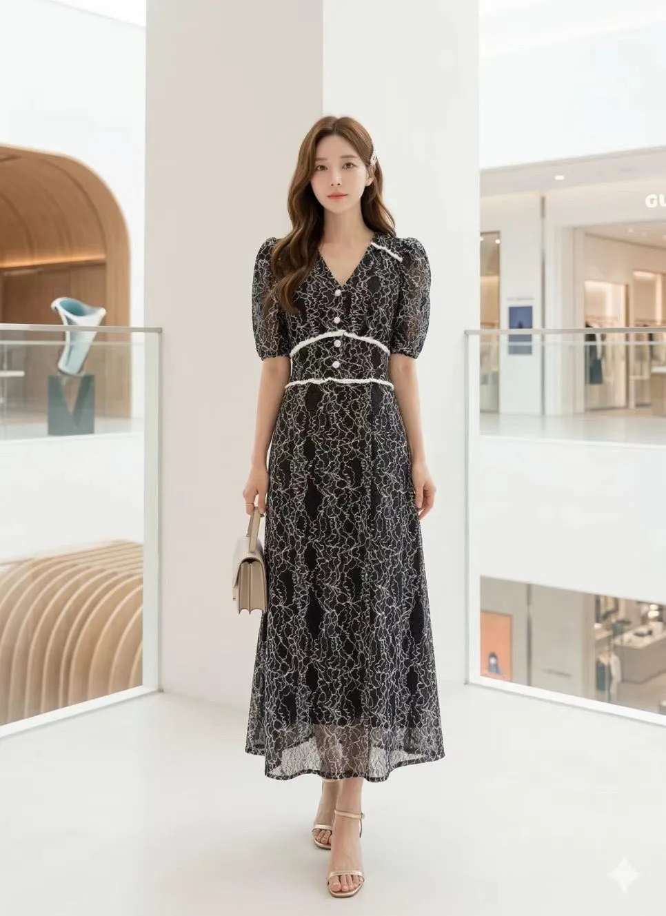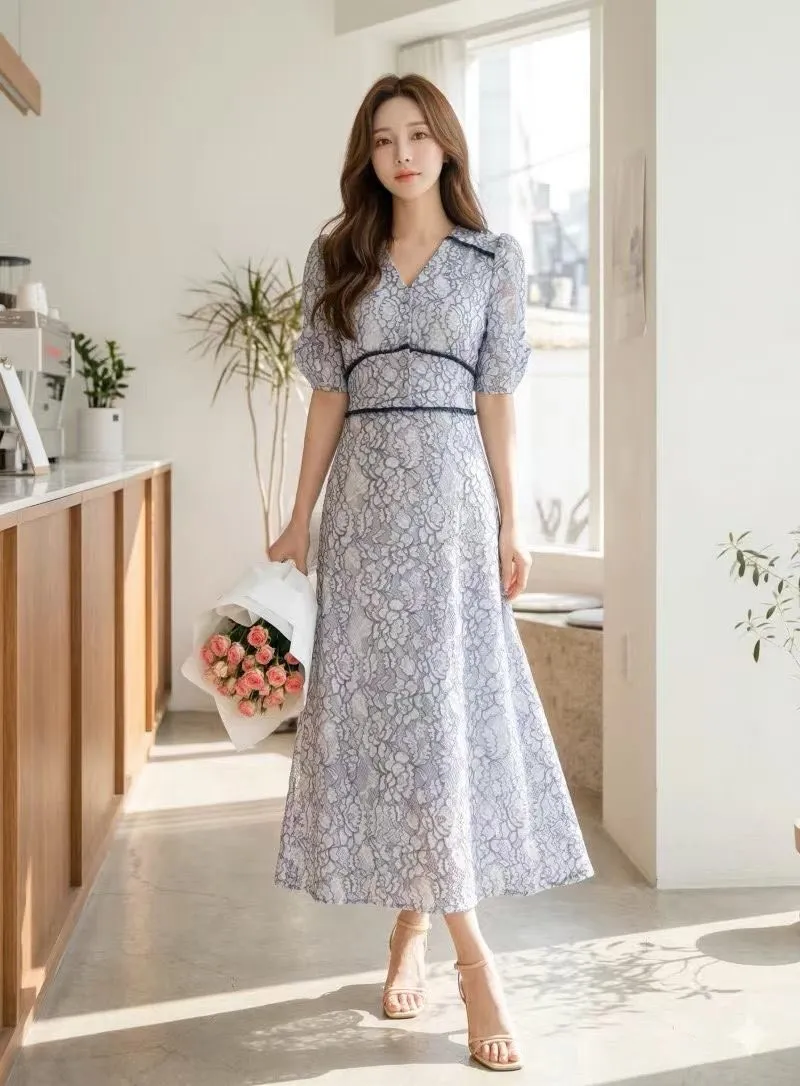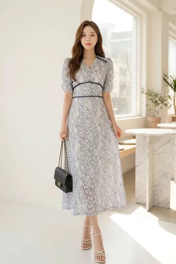 B286華麗家收腰蕾絲洋裝 2色