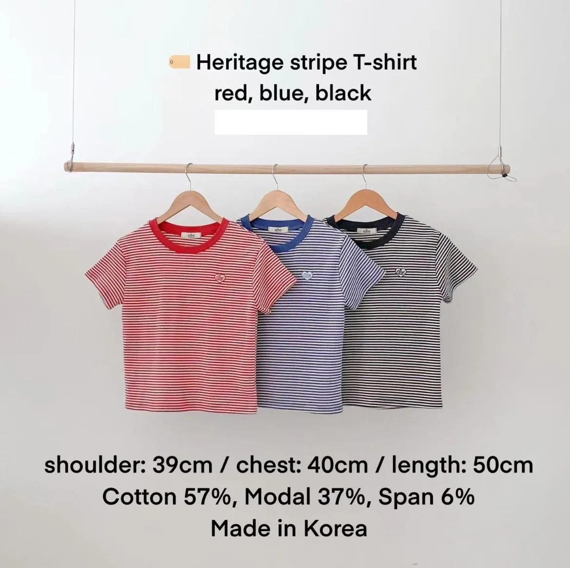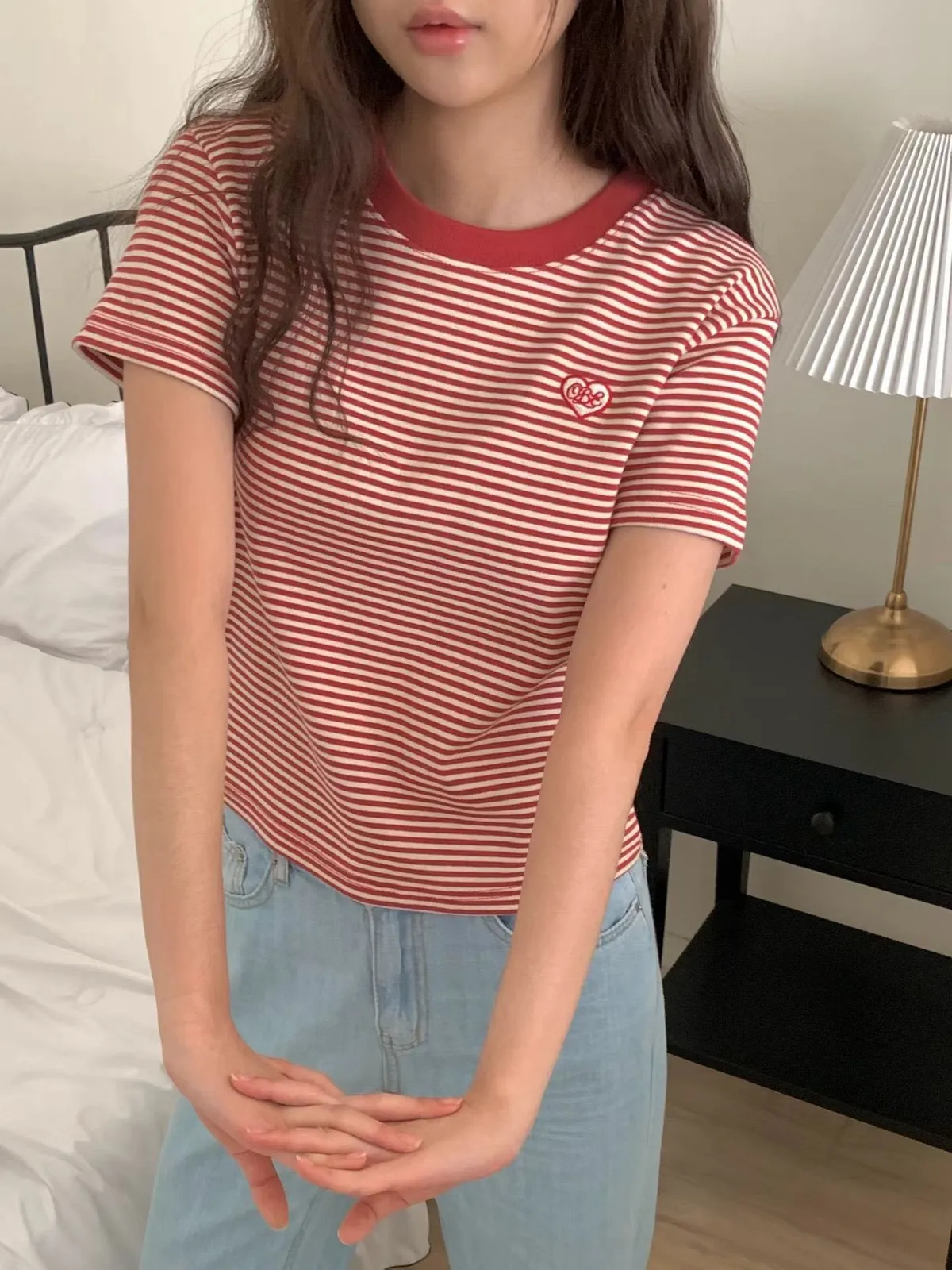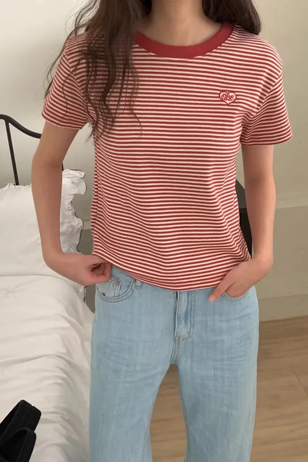 B291圓領愛心條紋T恤上衣3色