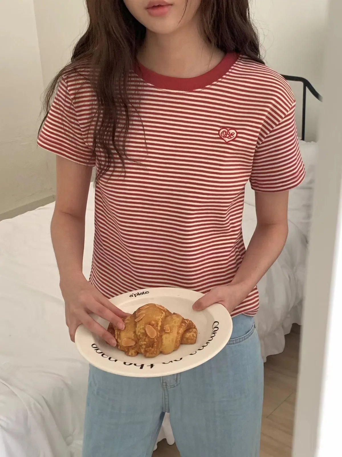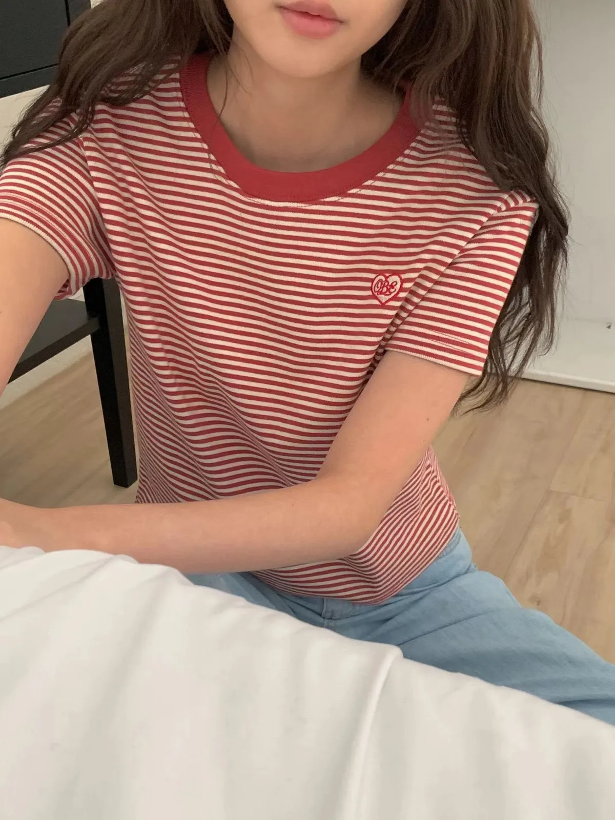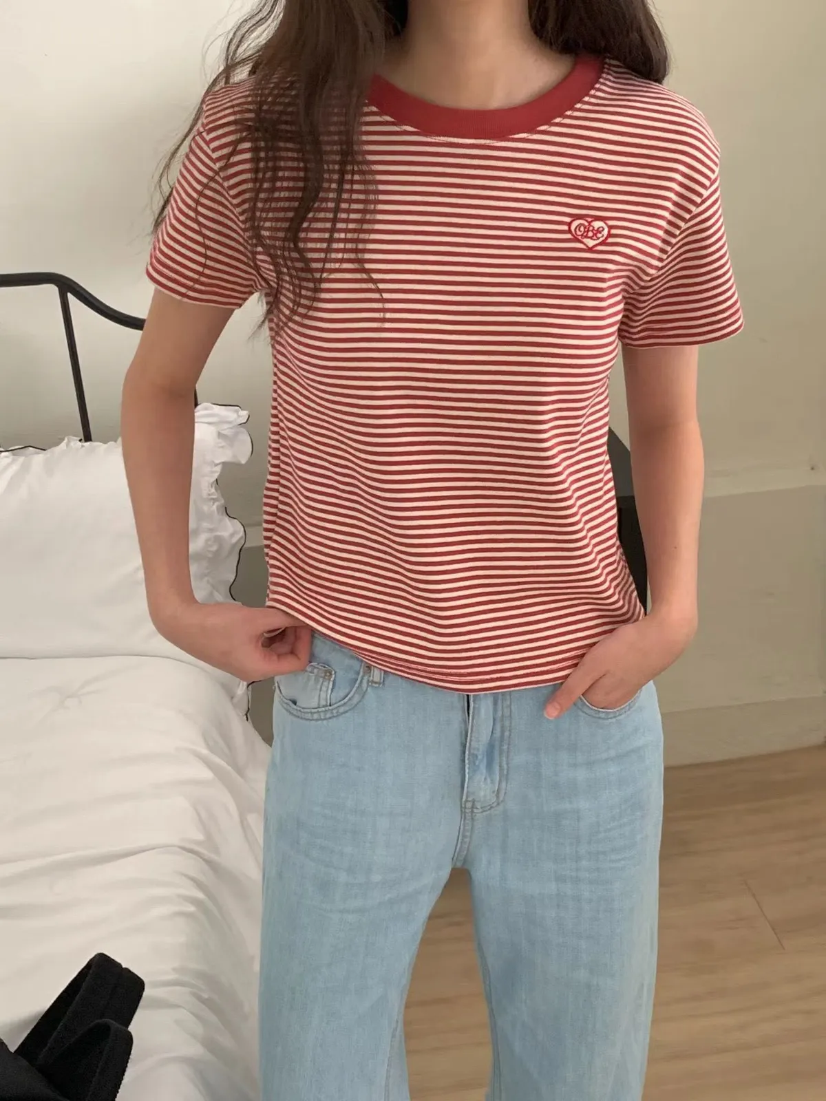 B291圓領愛心條紋T恤上衣3色