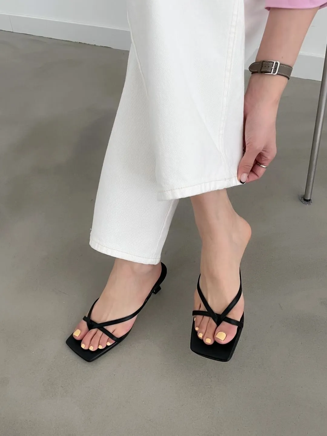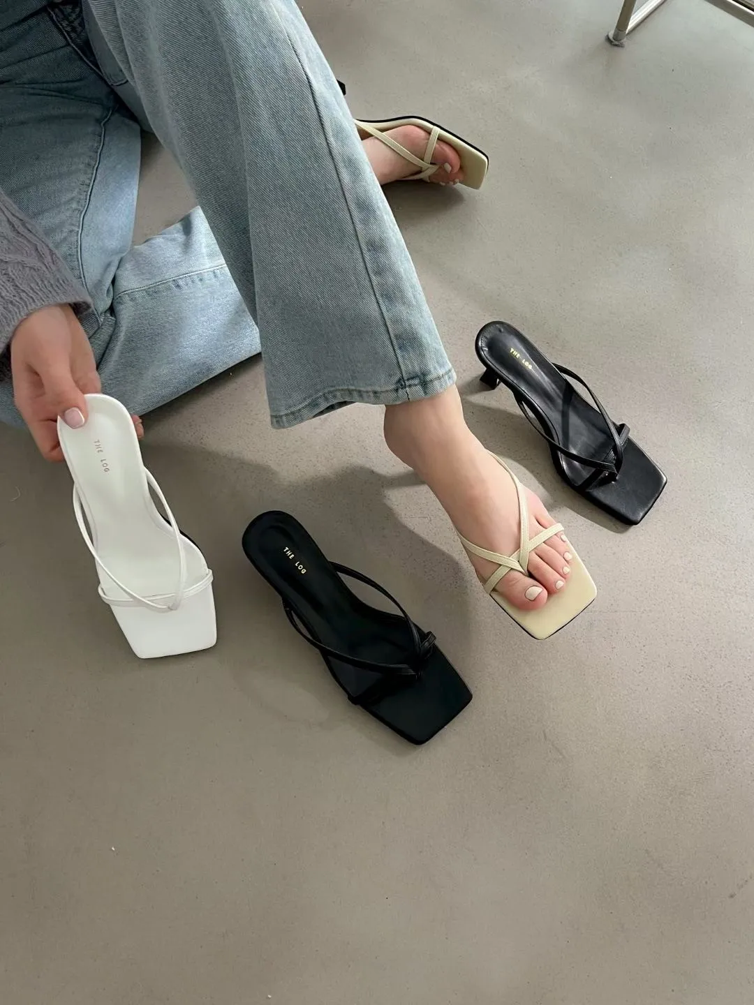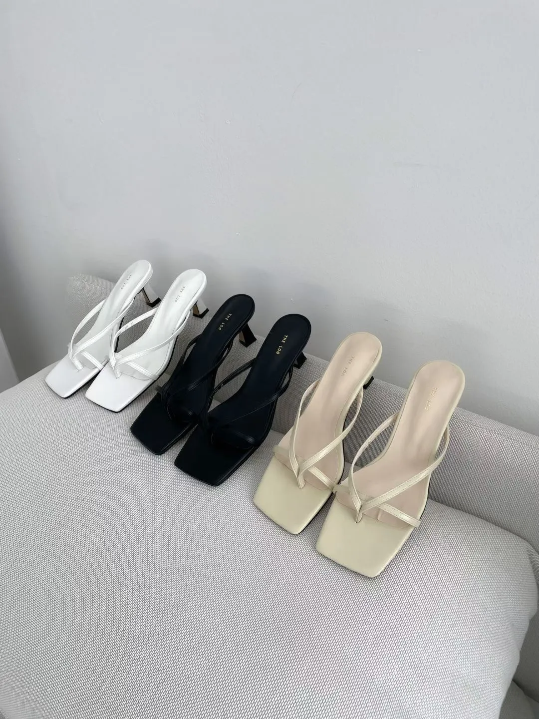 C136韓妞方頭夾腳中跟涼鞋4色(225-250)