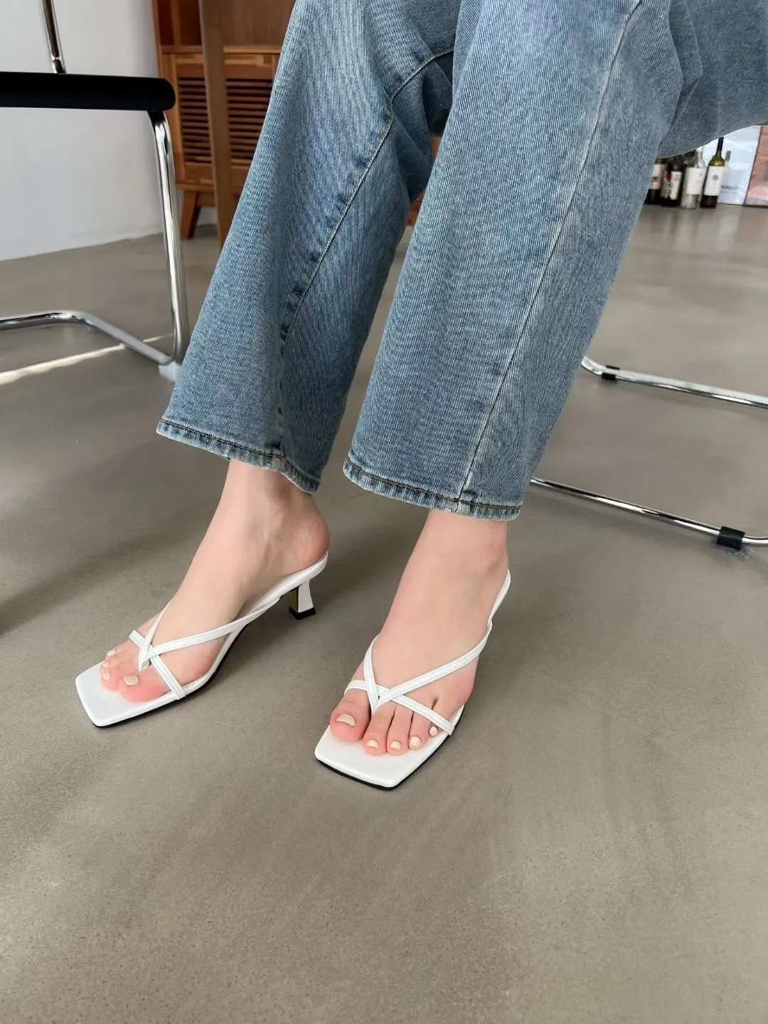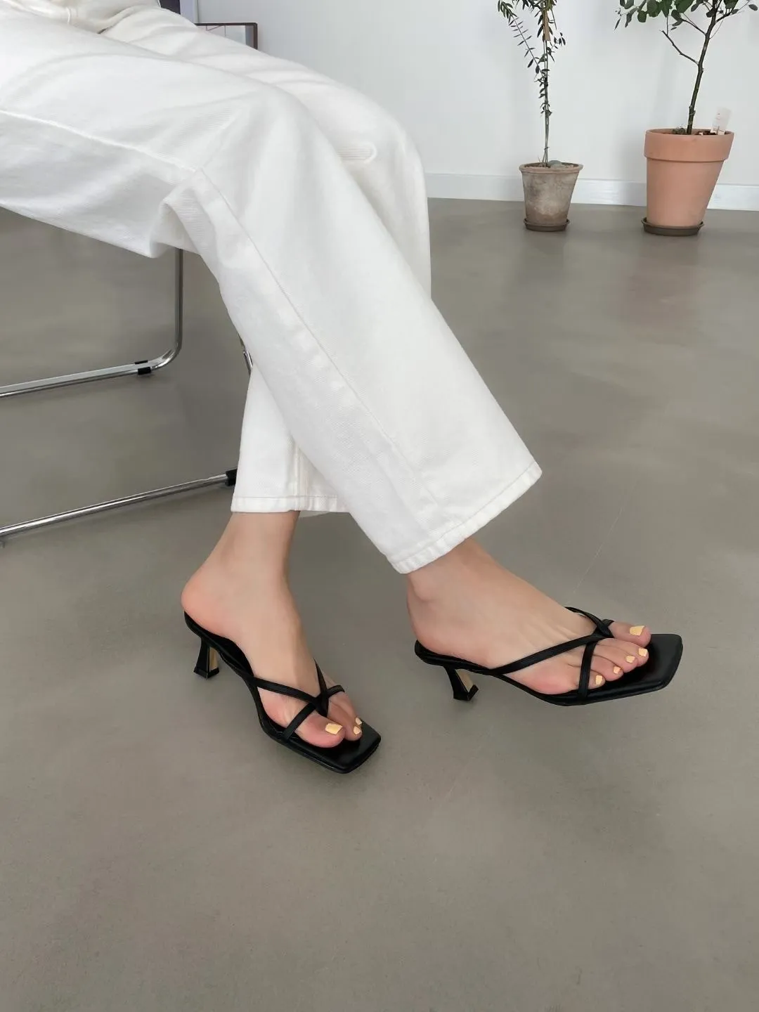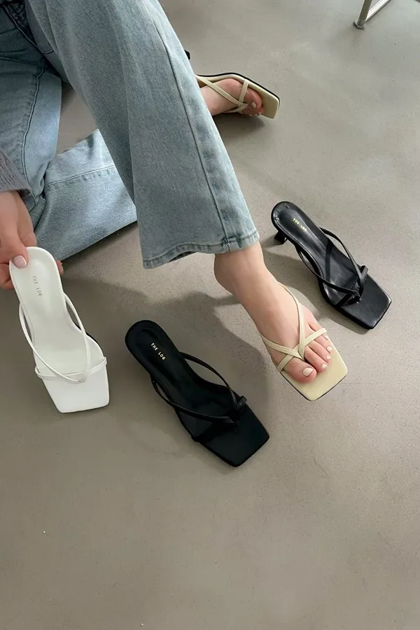 C136韓妞方頭夾腳中跟涼鞋4色(225-250)