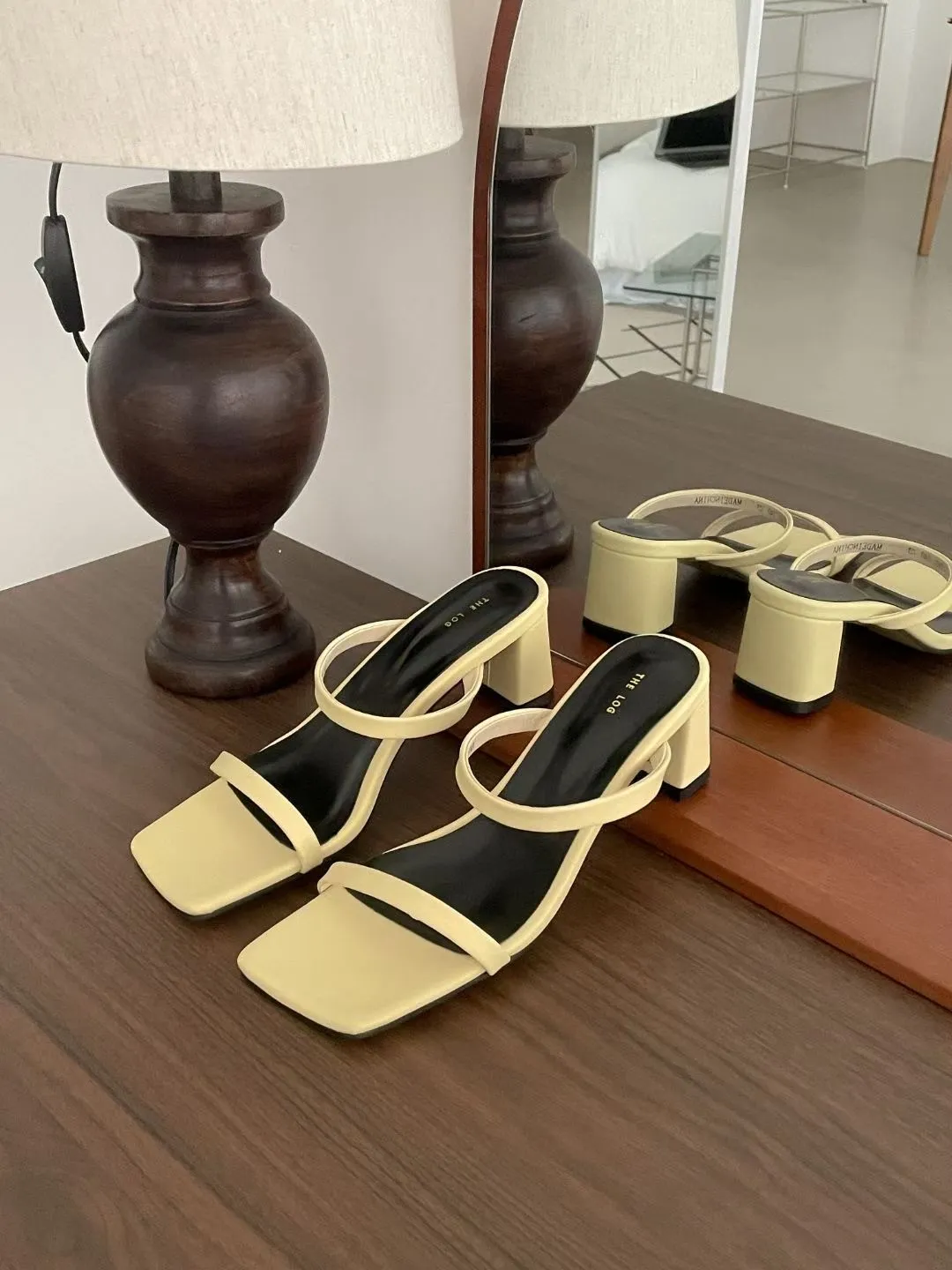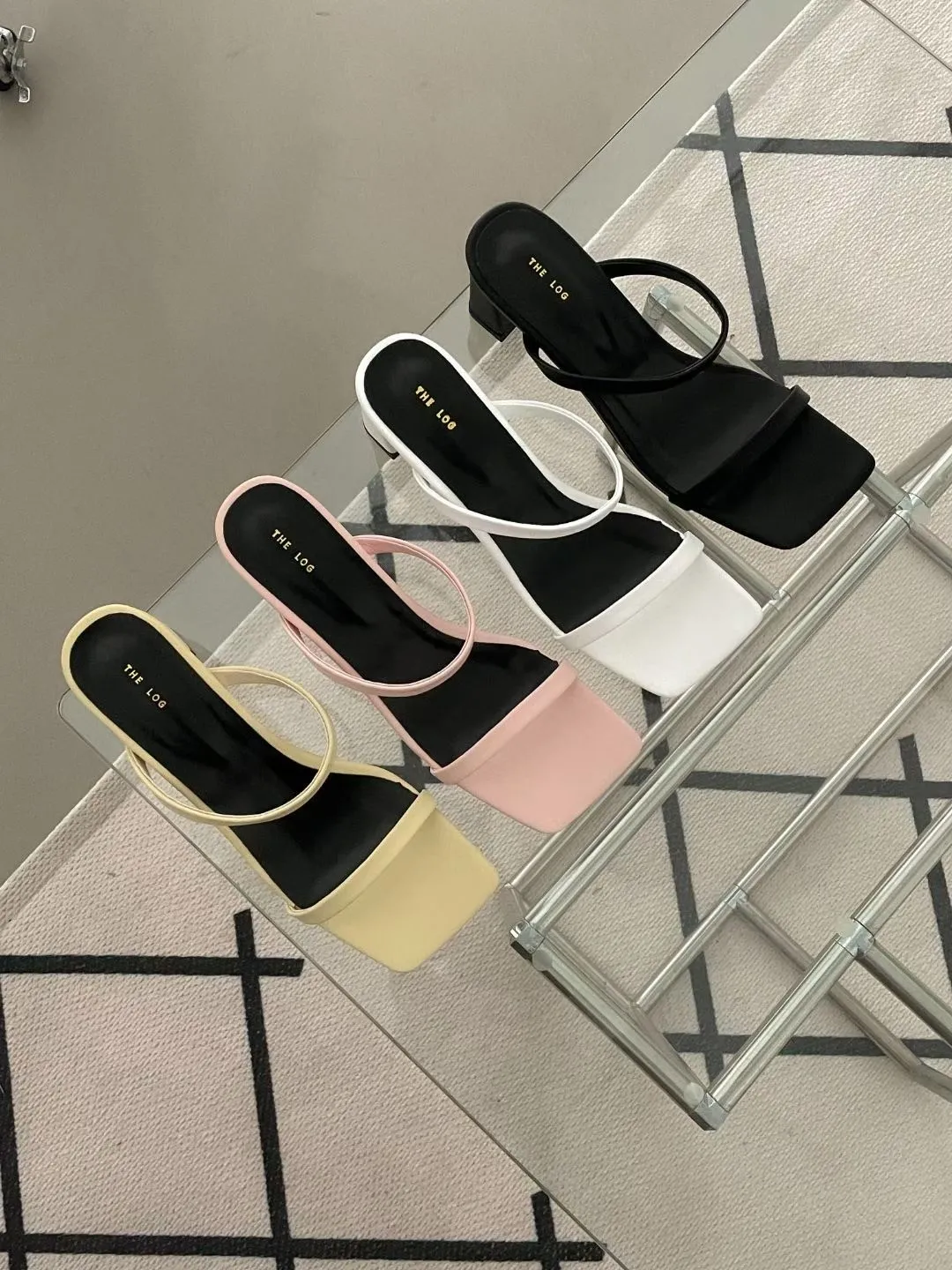 C134韓妞方頭雙帶高跟涼鞋4色(225-250)