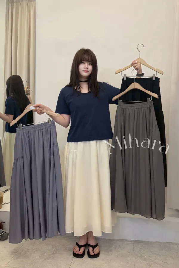 A2 0412好穿家天絲抓褶半裙4色