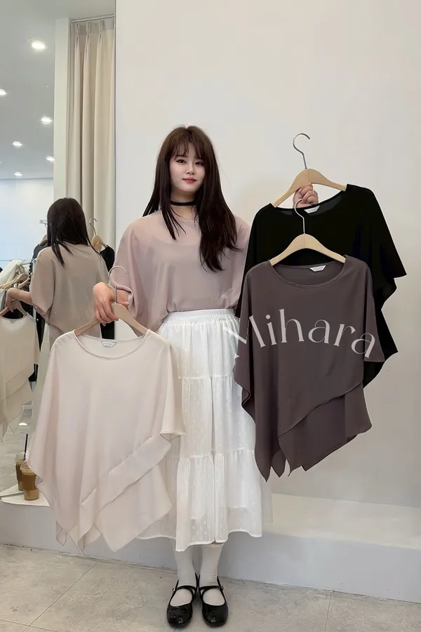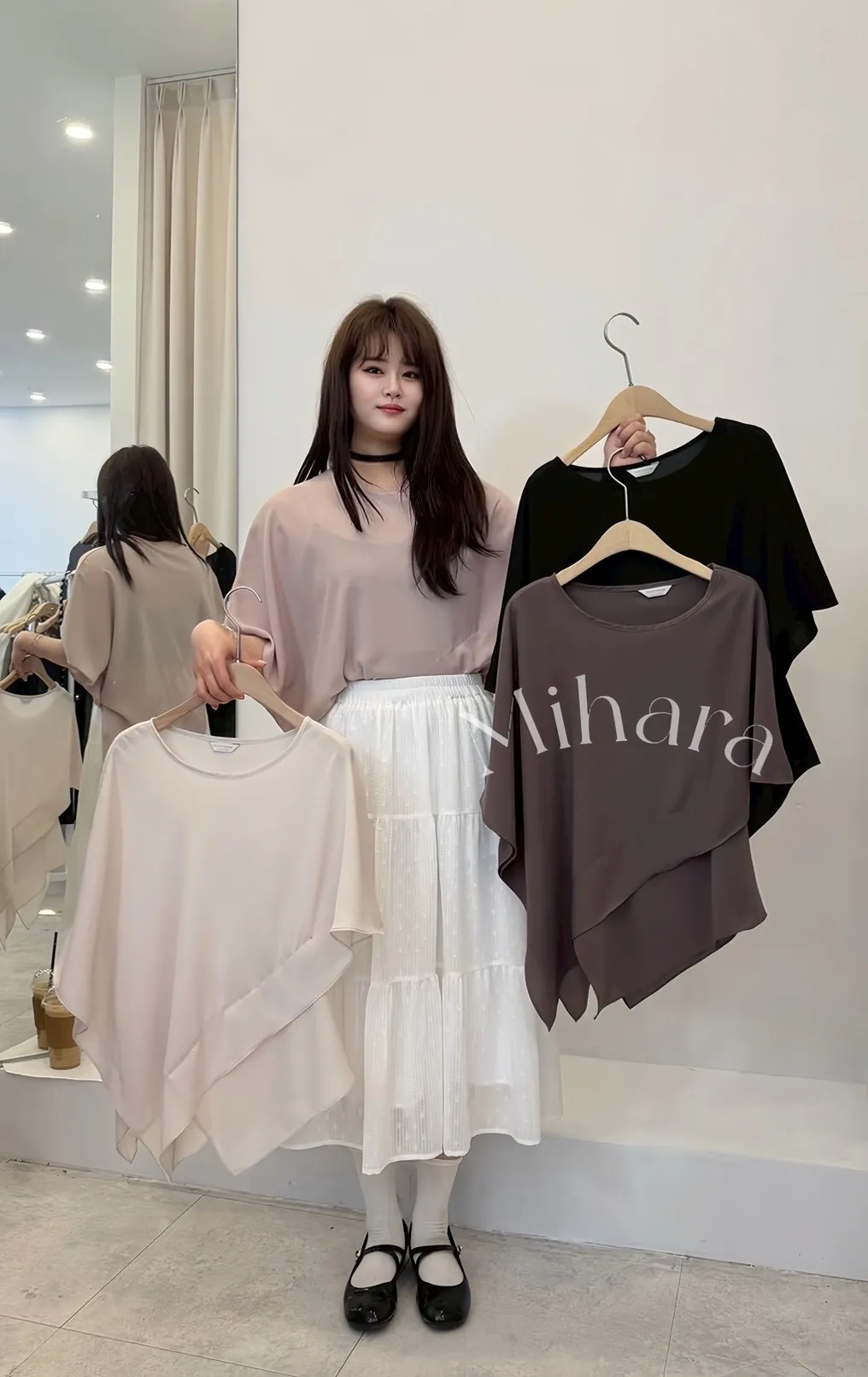 A11 0412好穿家不規則圓領雪紡上衣4色