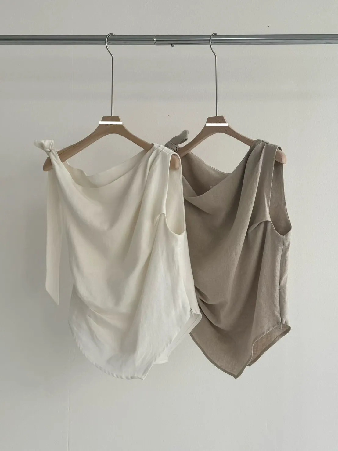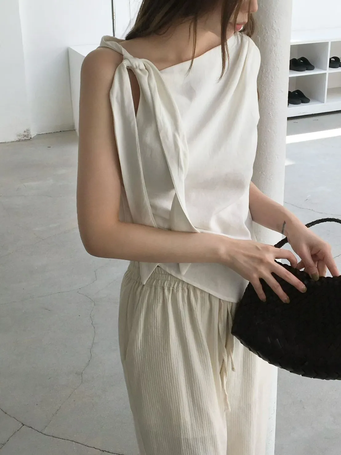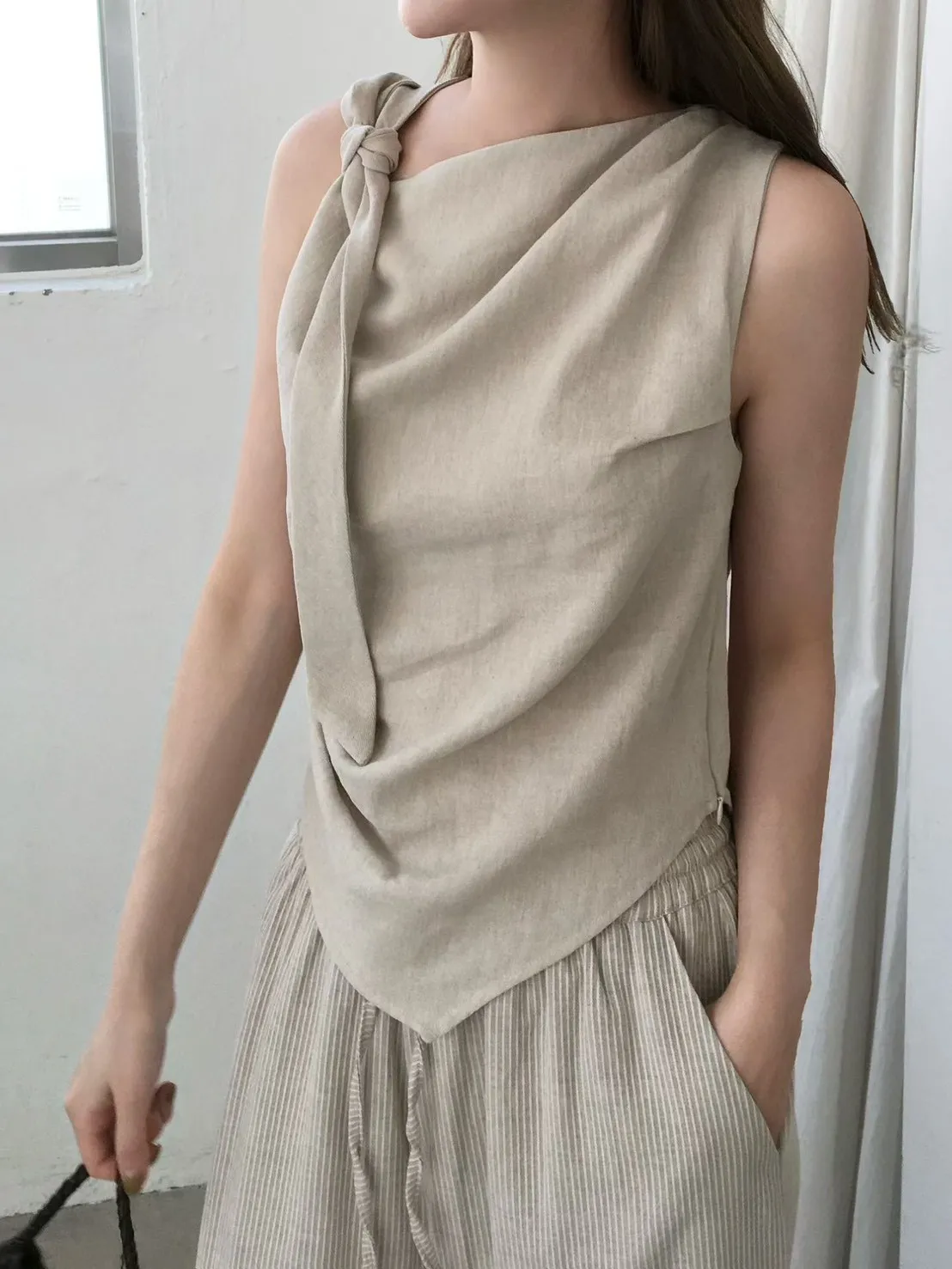 A20 0412美女歐膩家側抓褶綁帶棉麻背心2色