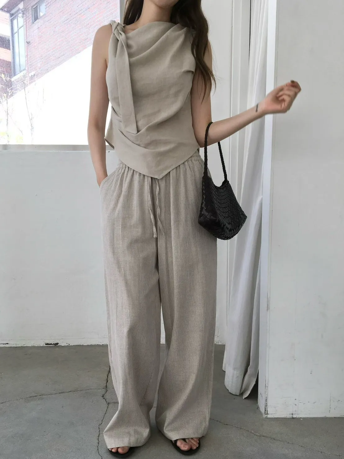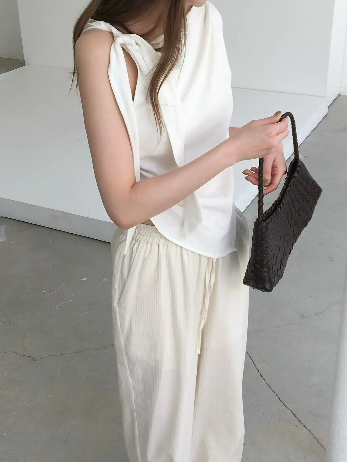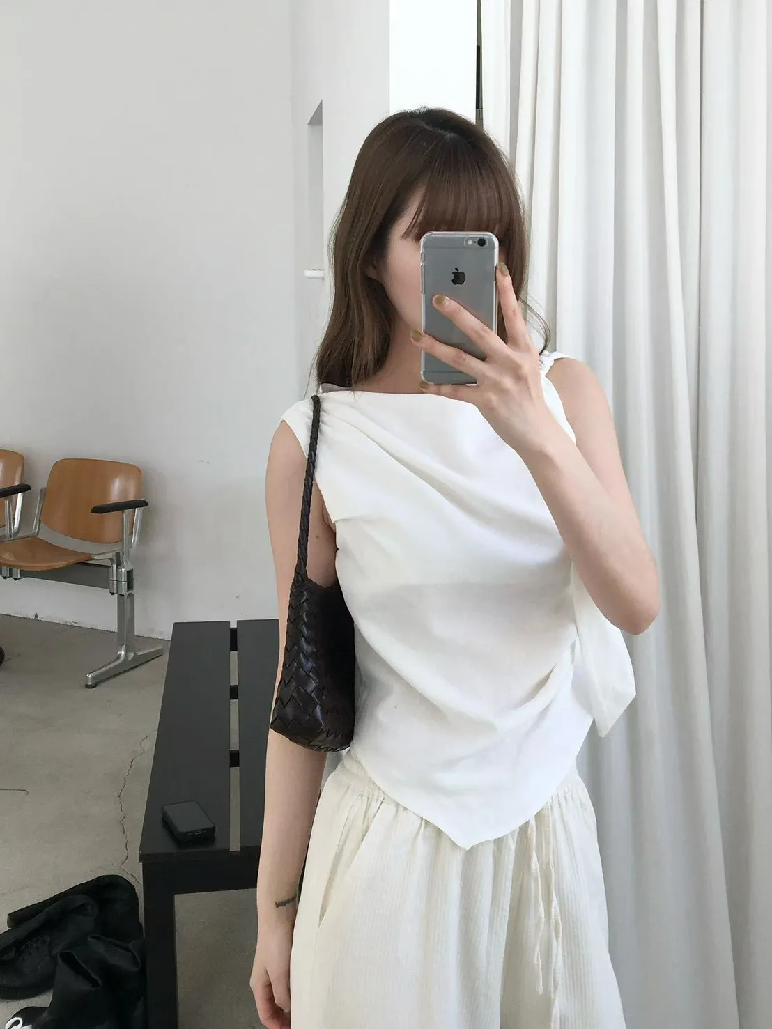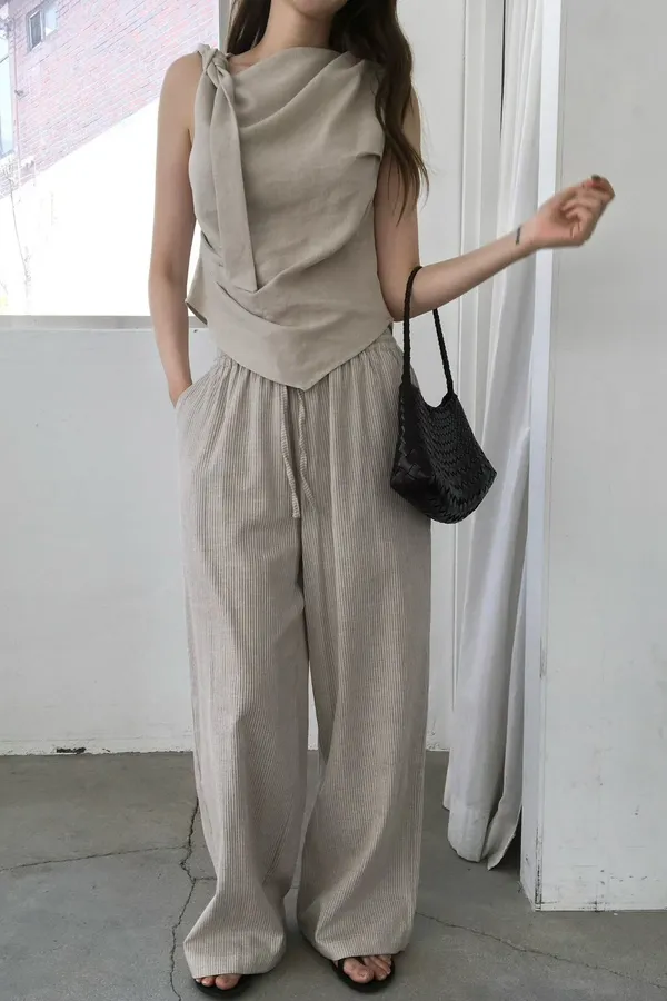 A20 0412美女歐膩家側抓褶綁帶棉麻背心2色