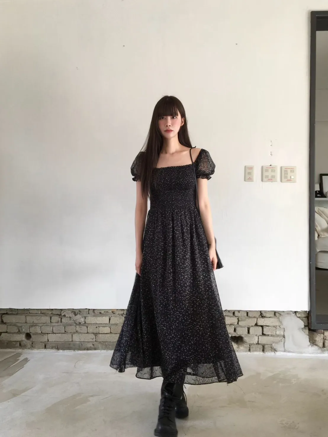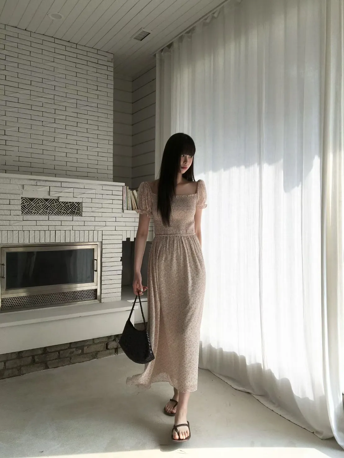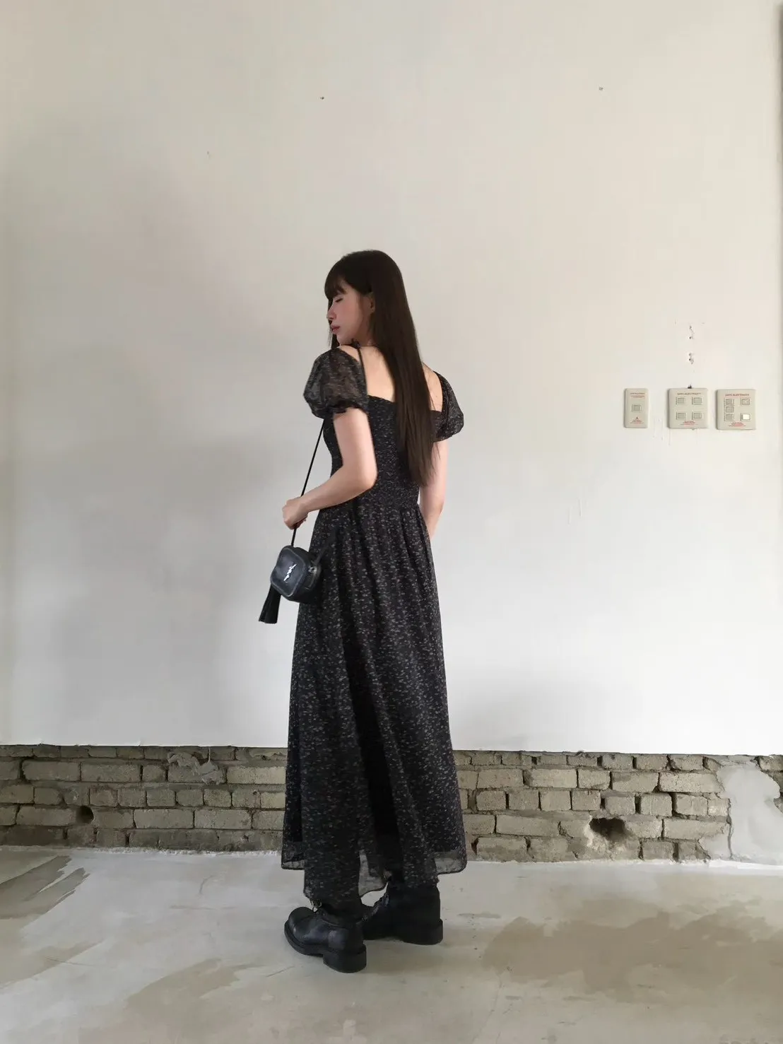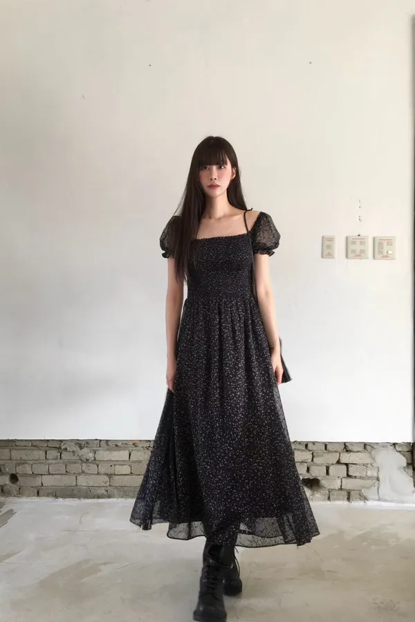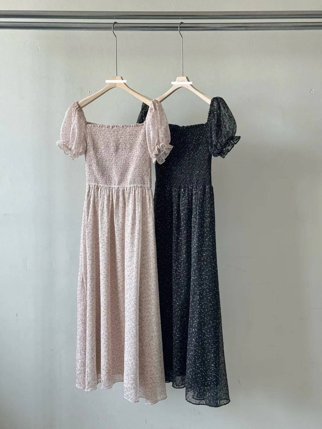 A31 0412美女歐膩家方領碎花雪紡洋裝2色