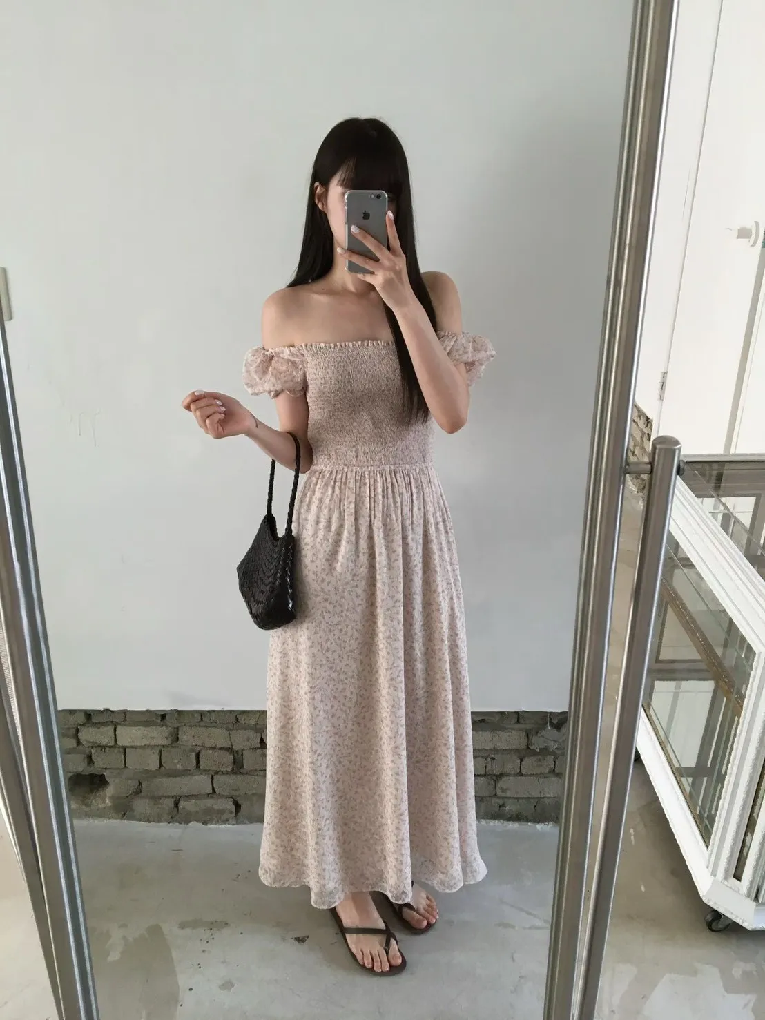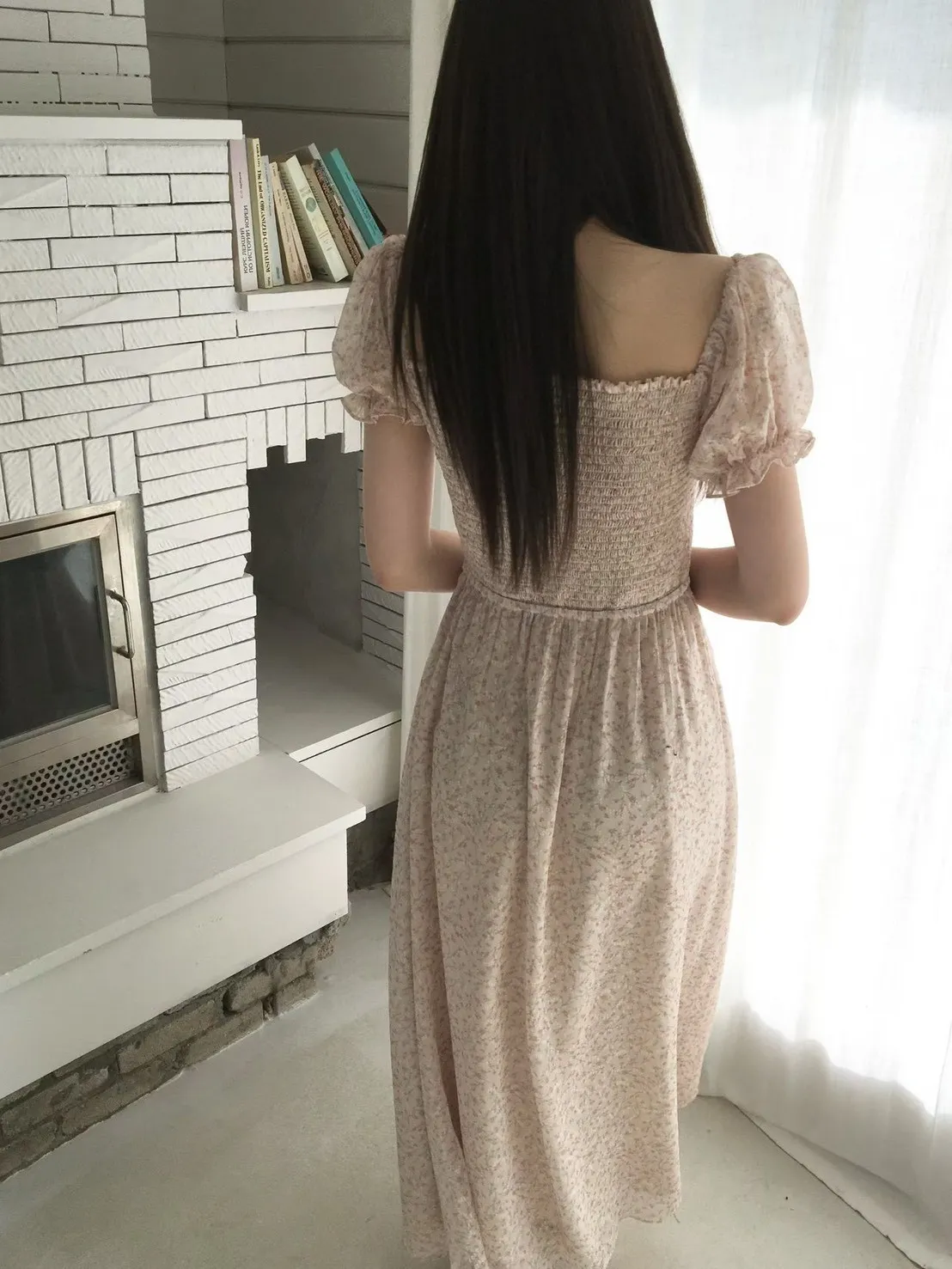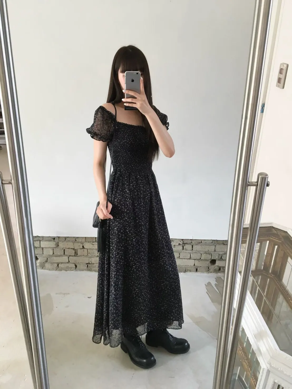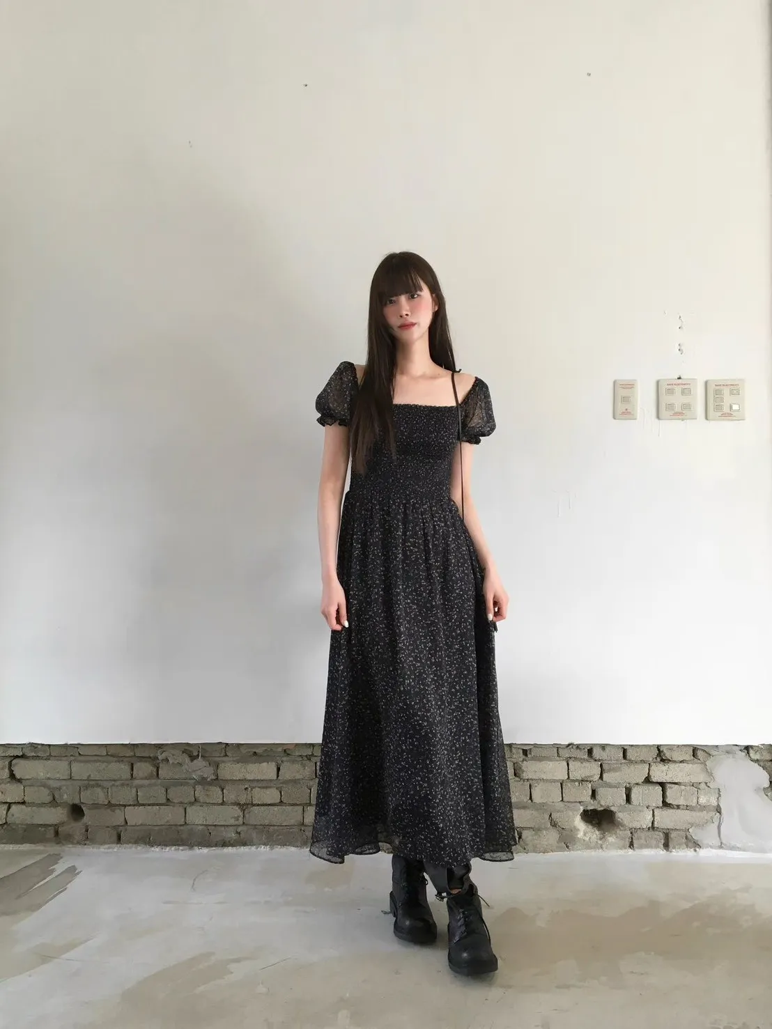 A31 0412美女歐膩家方領碎花雪紡洋裝2色