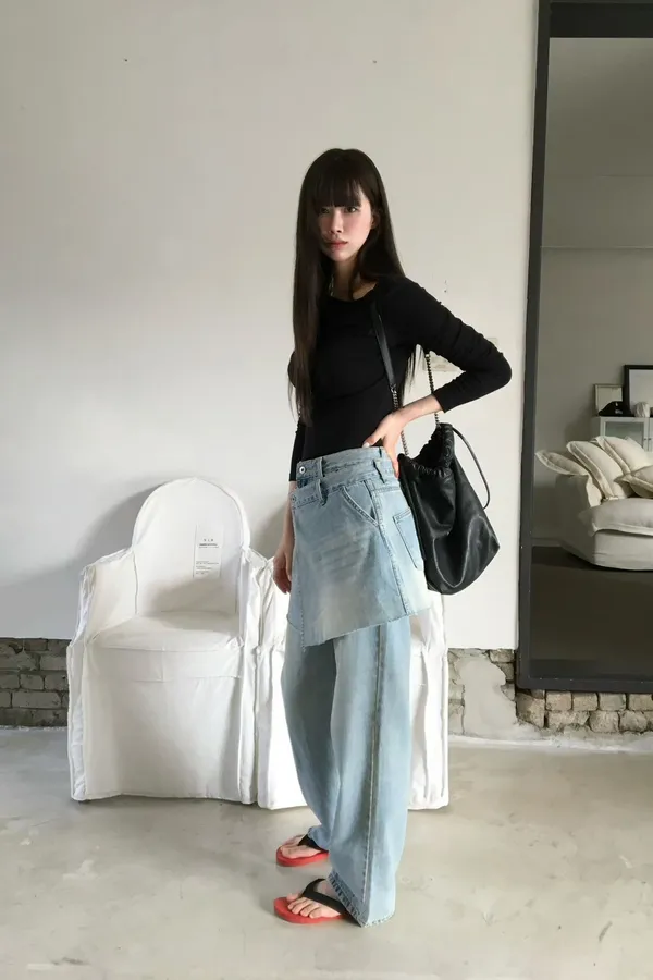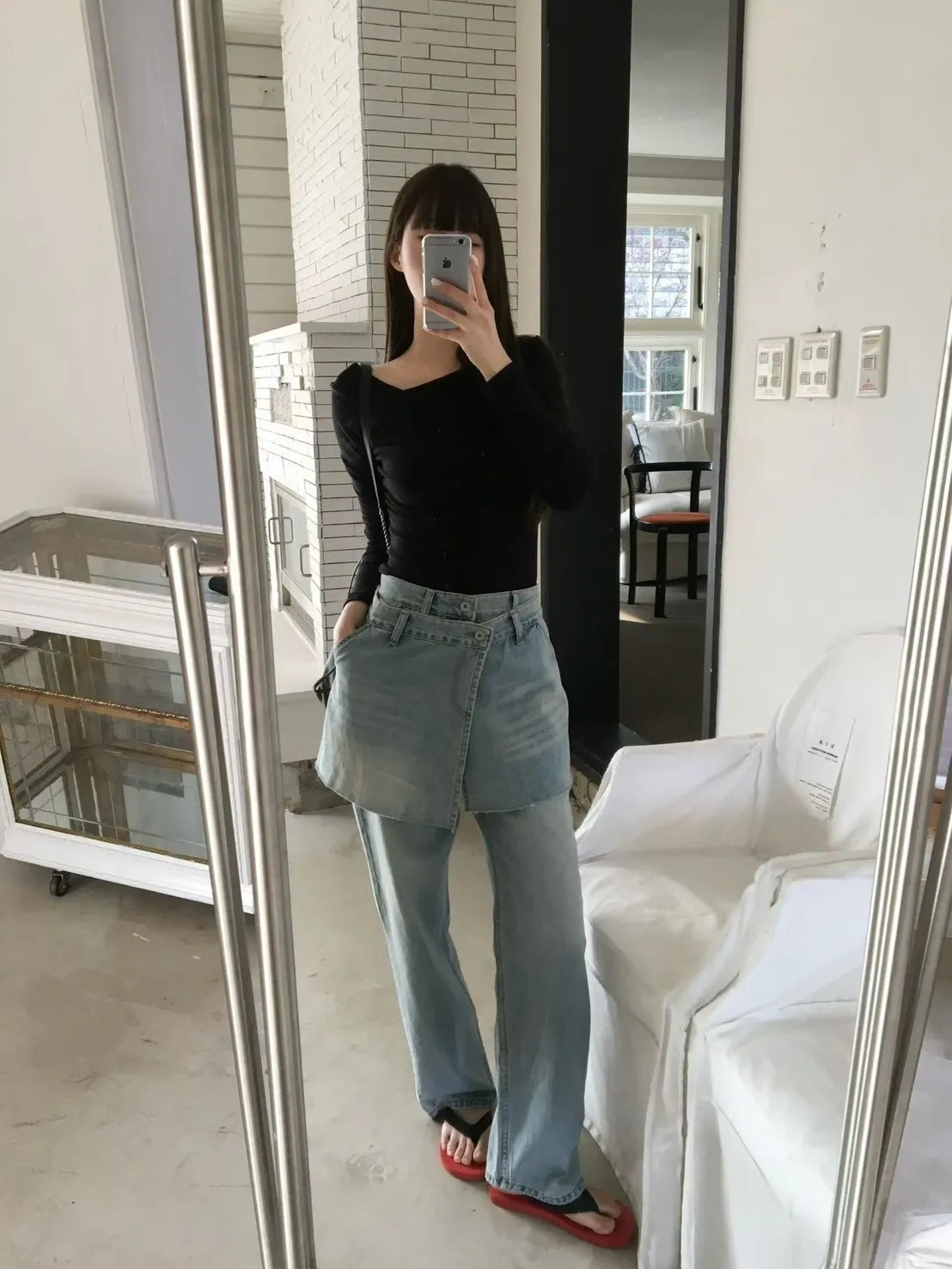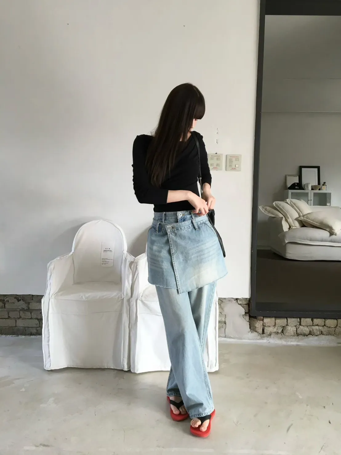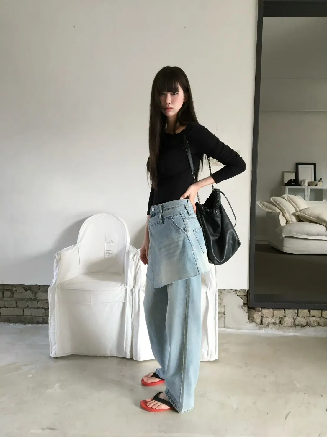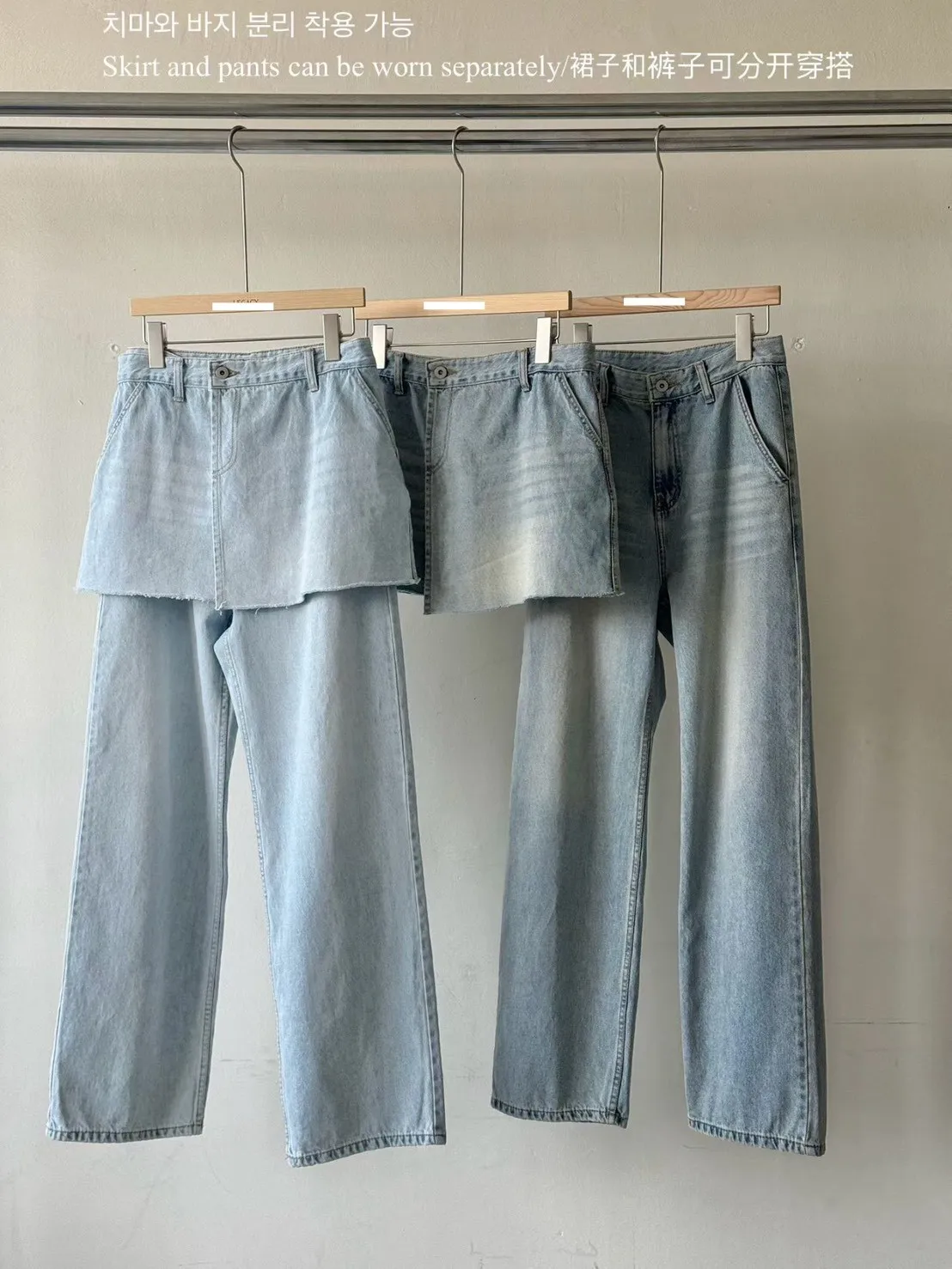 A33 0412美女歐膩家直筒牛仔褲+小短裙2色(S/M)