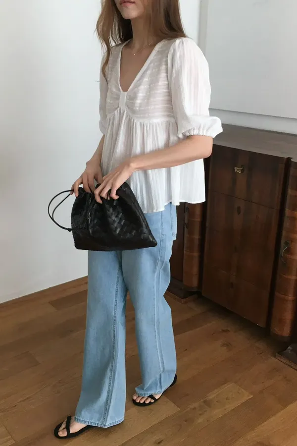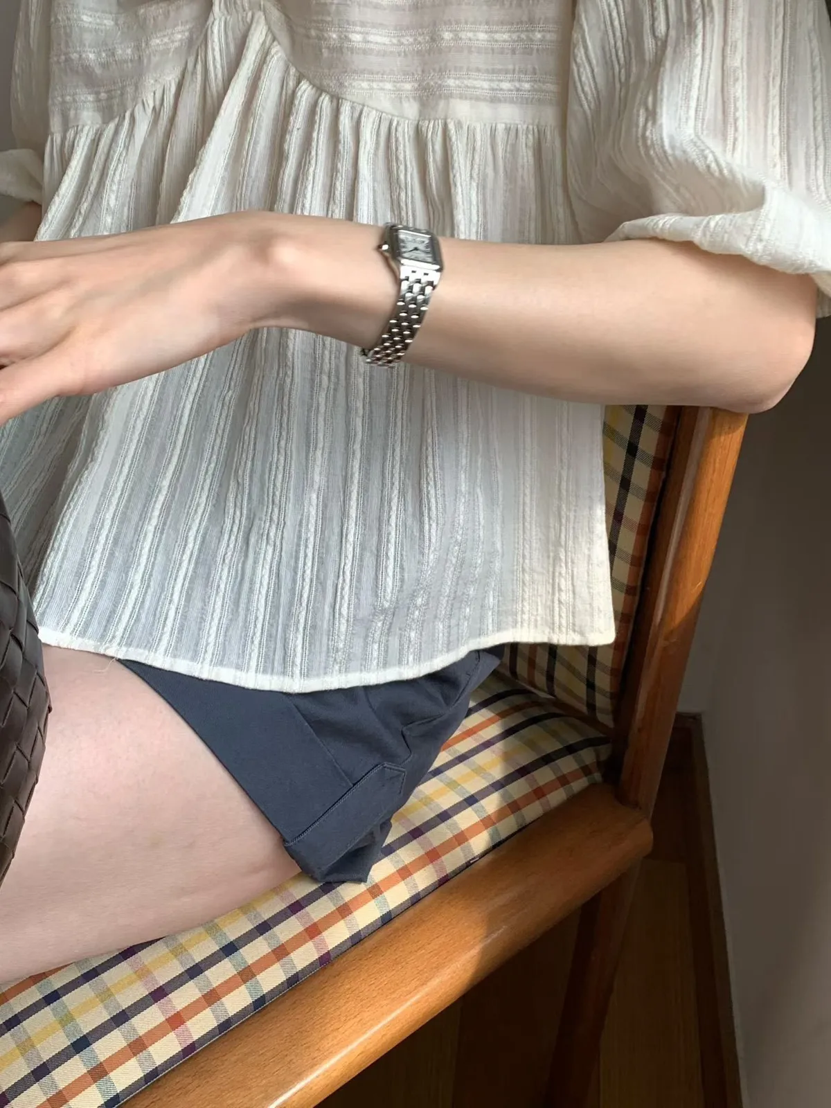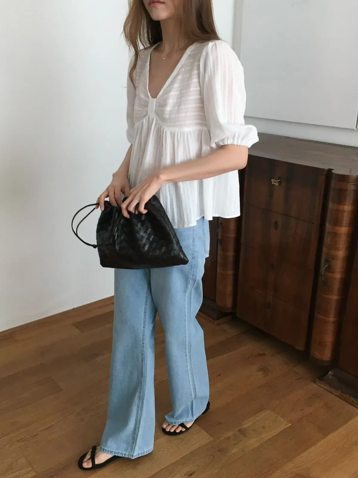 B119捲髮歐膩V領胸抓皺拼接上衣3色
