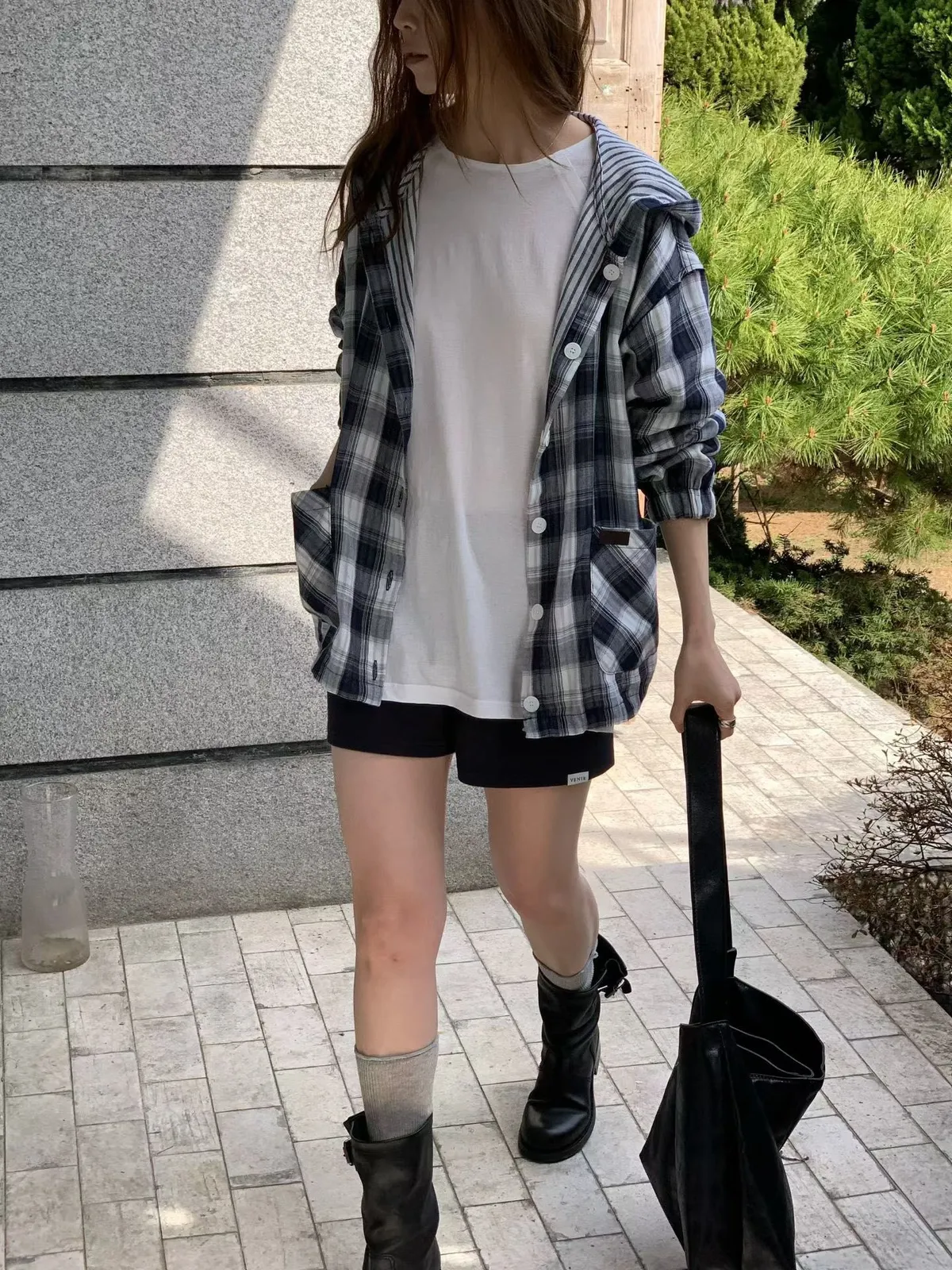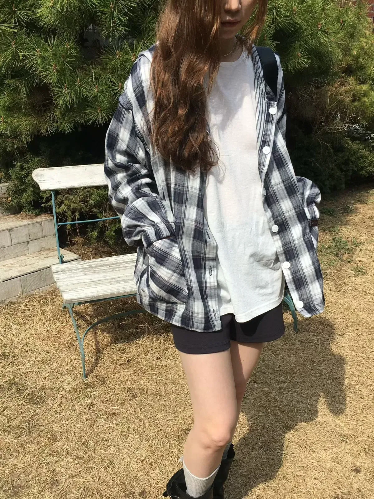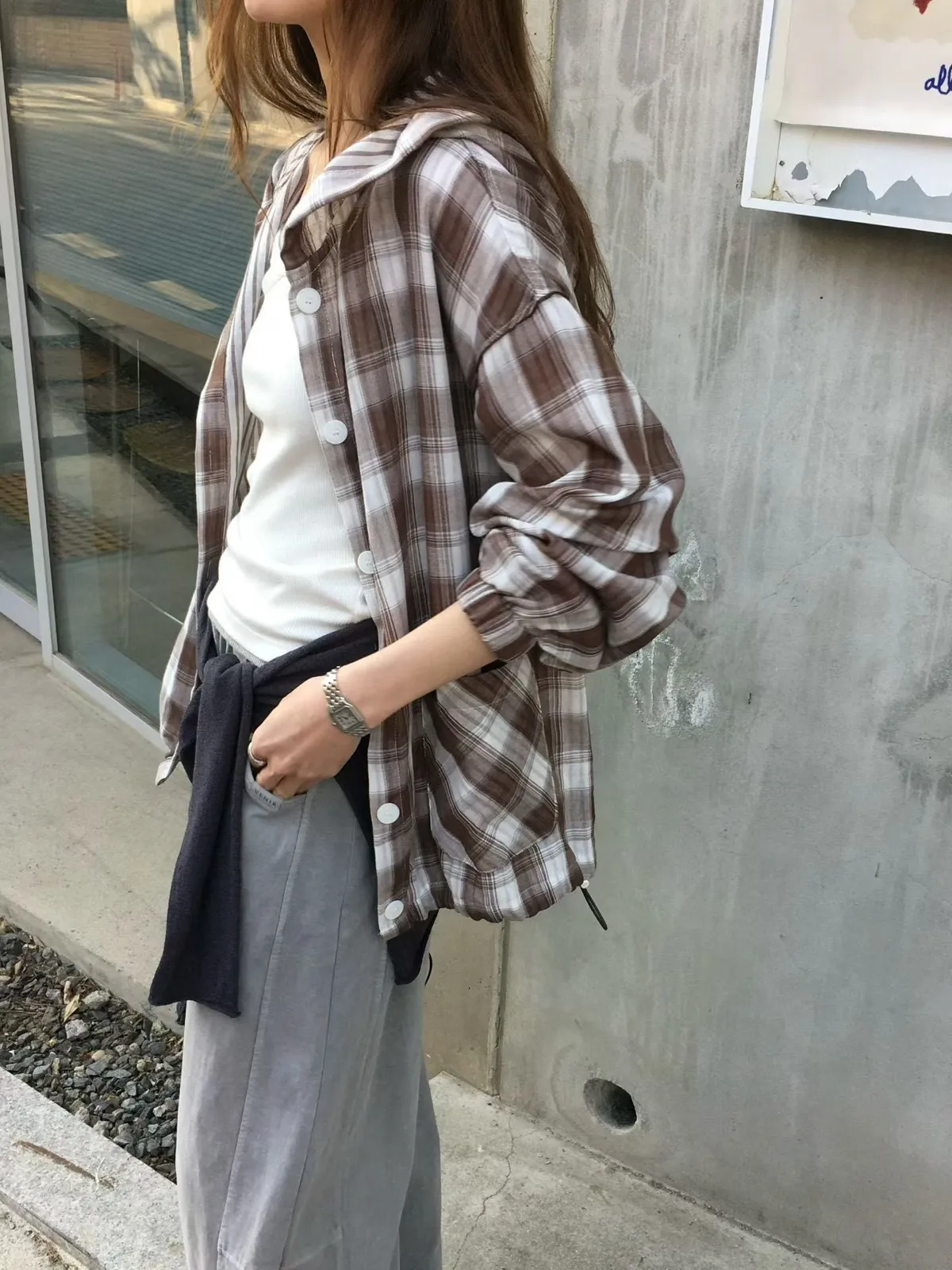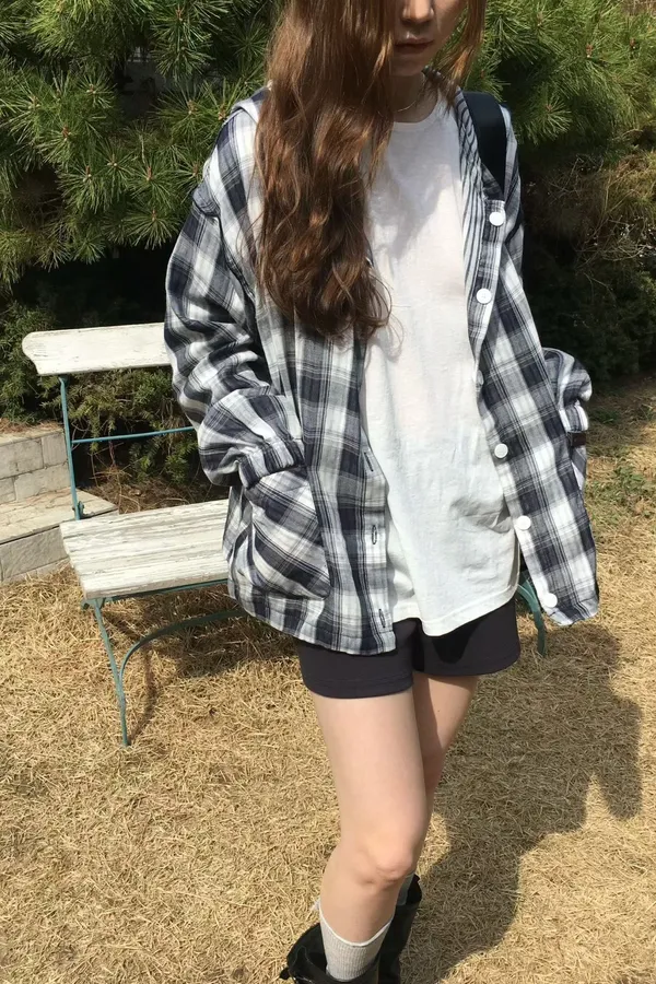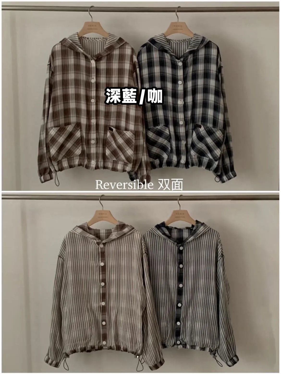 B118捲髮歐膩雙面穿格紋外套2色