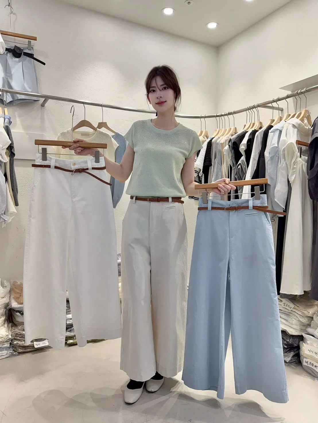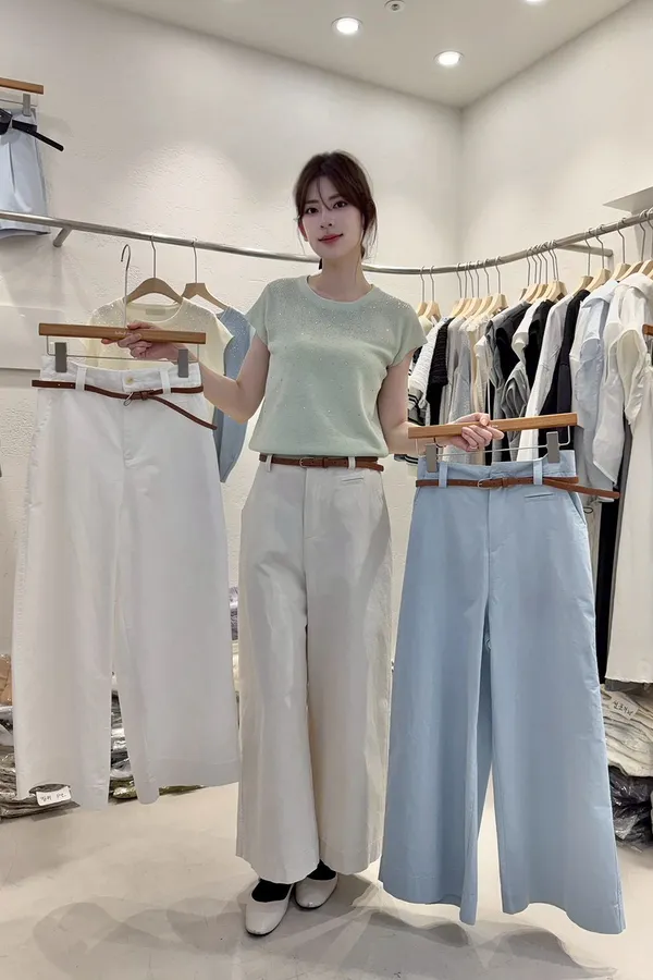 A50 0414甜甜家直筒寬褲附腰帶3色