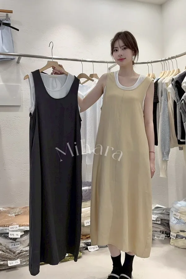 A53 0414甜甜家U領棉麻背心洋裝+U領背心(SET)2色
